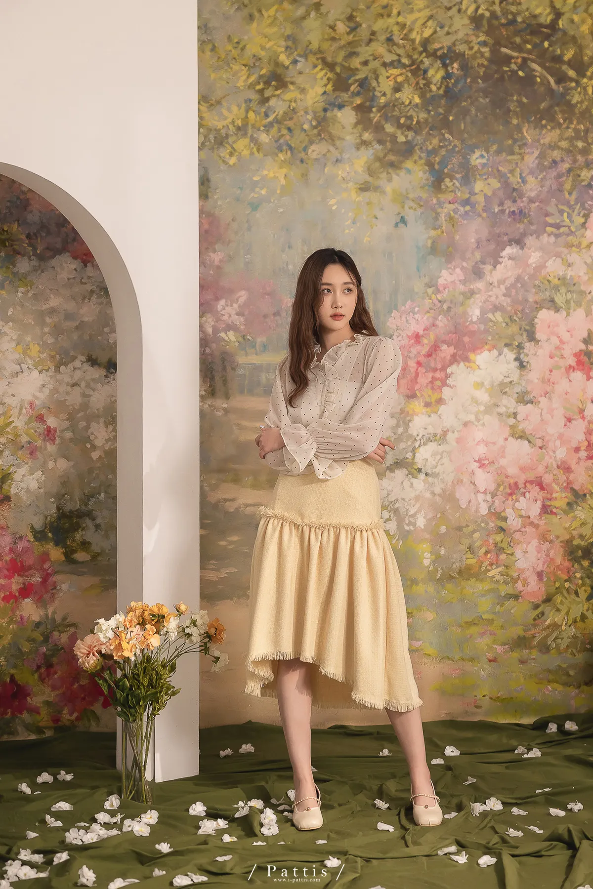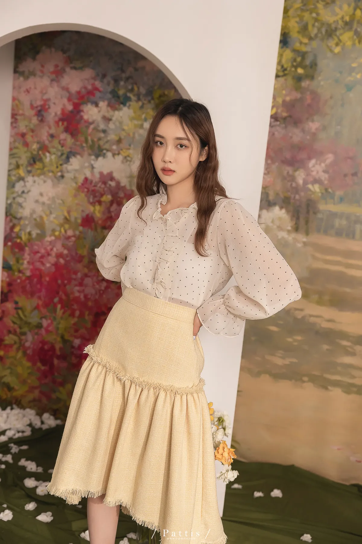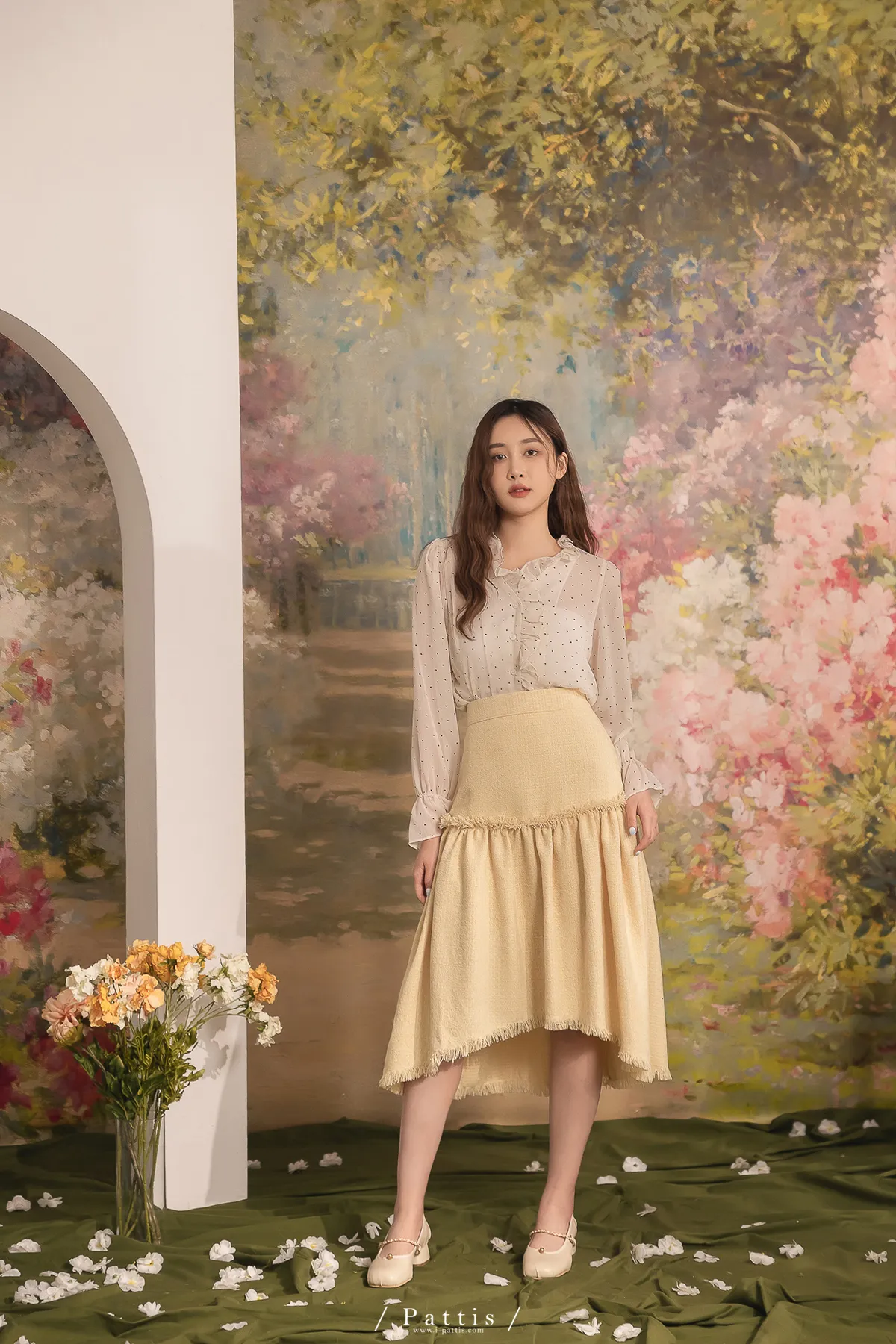 曬曬山楂花 | 流蘇不收邊軟呢前短後長裙(黃)