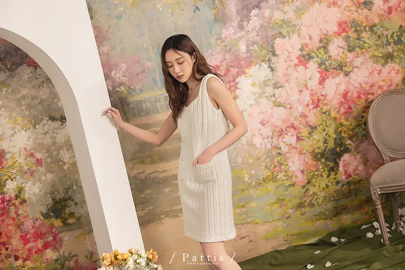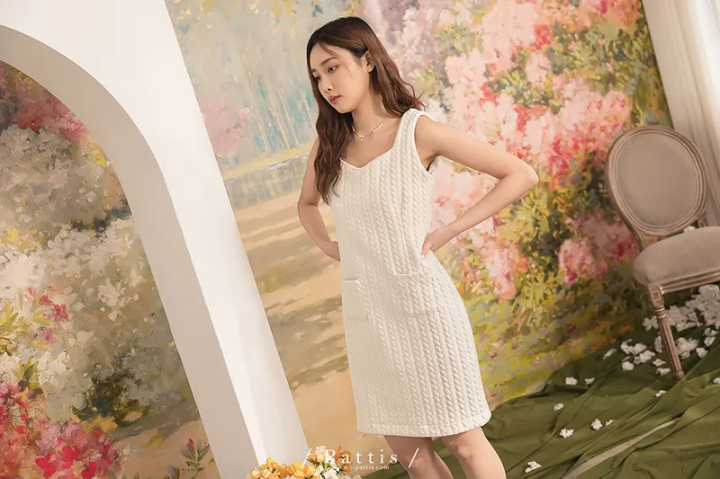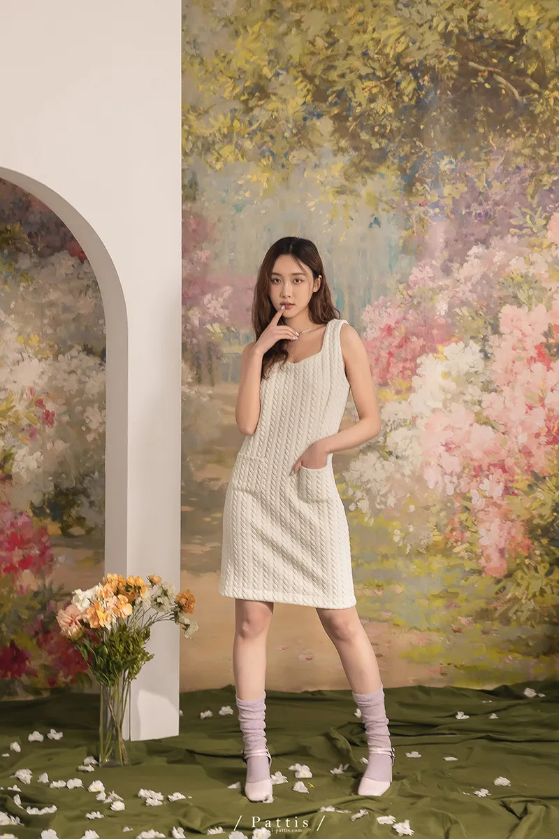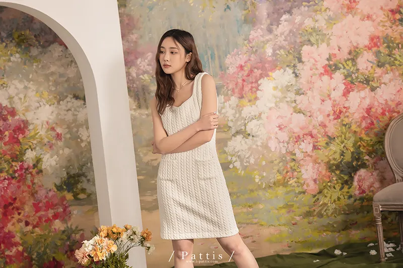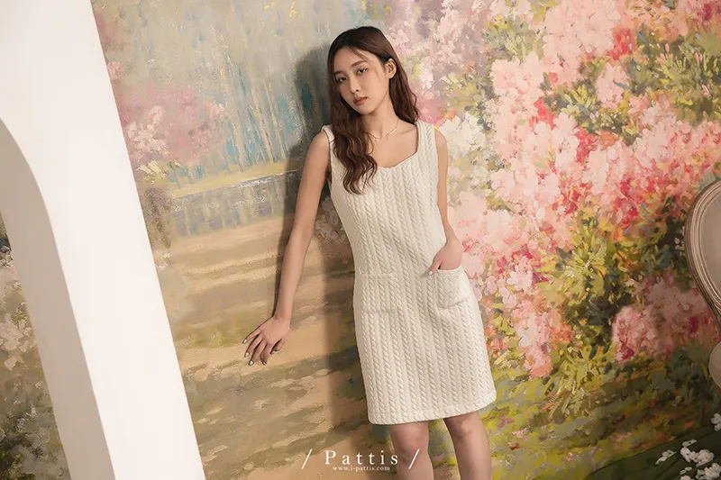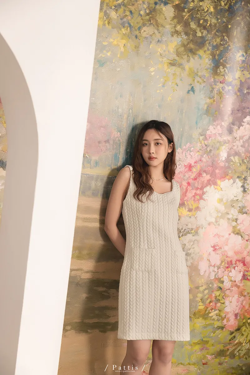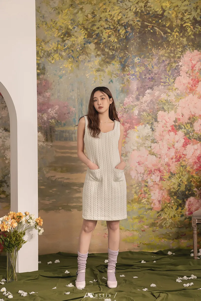 / NG品 原價$1380 / 薔薇蔓生日記 | 粗麻花編織口袋背心洋裝(白)