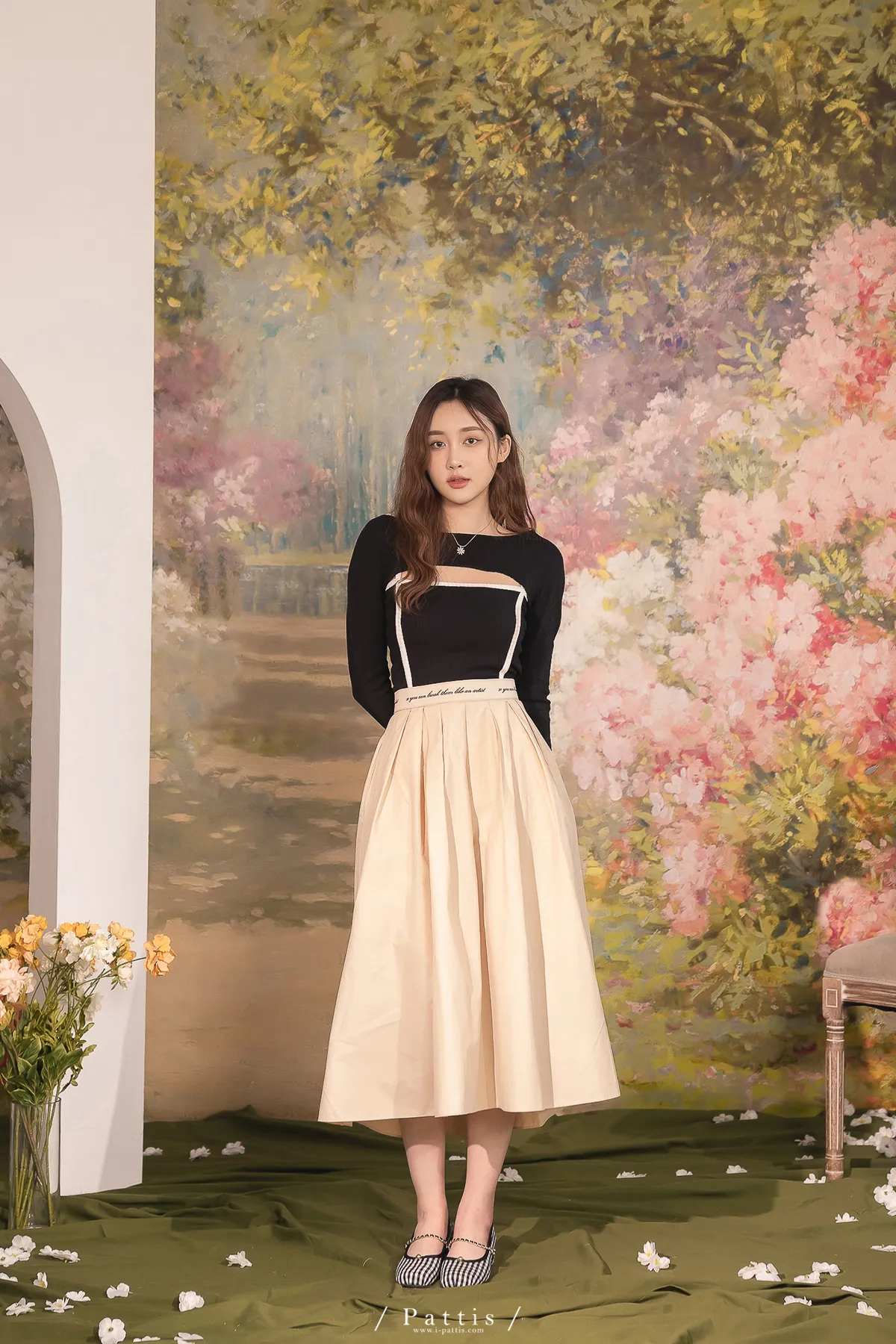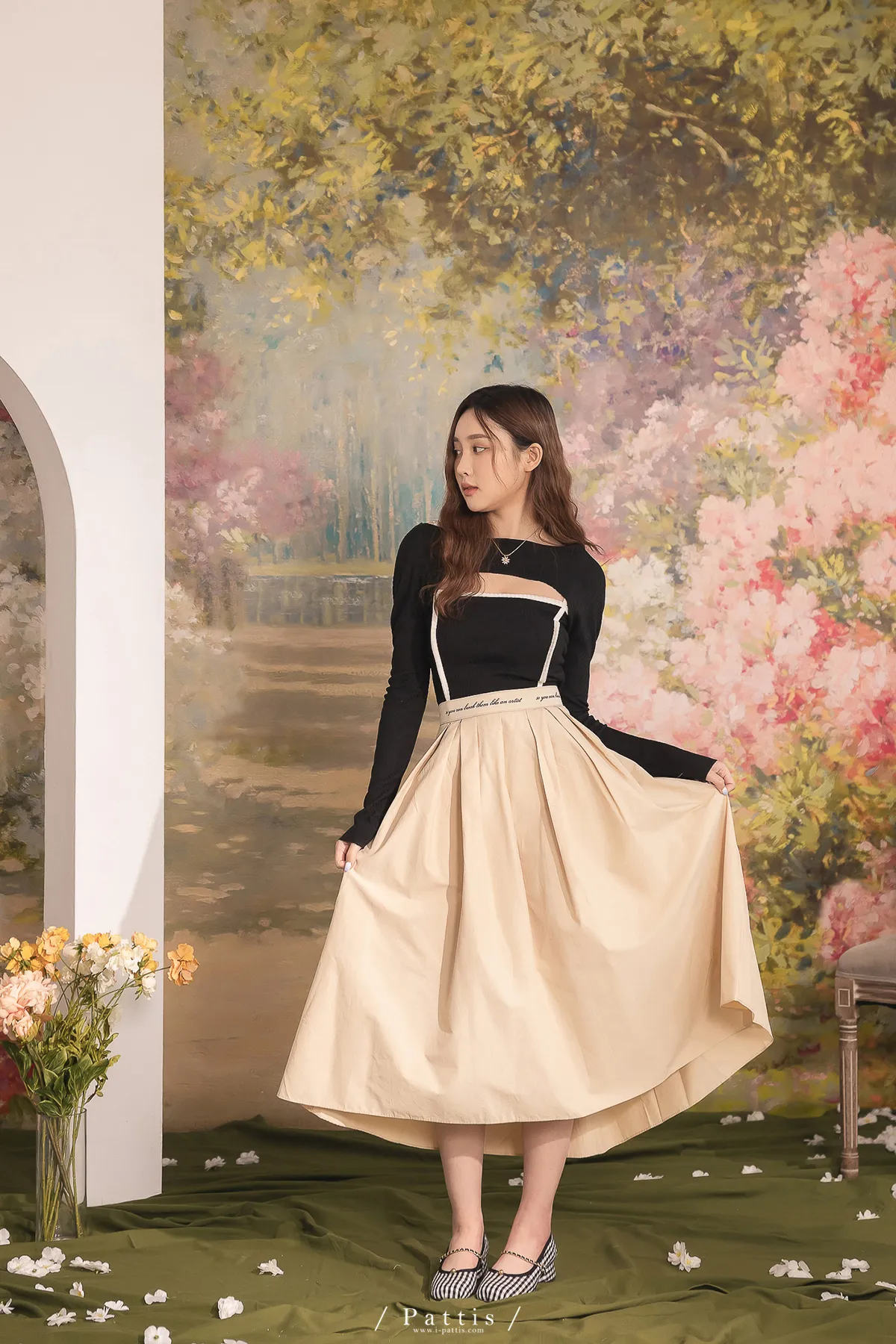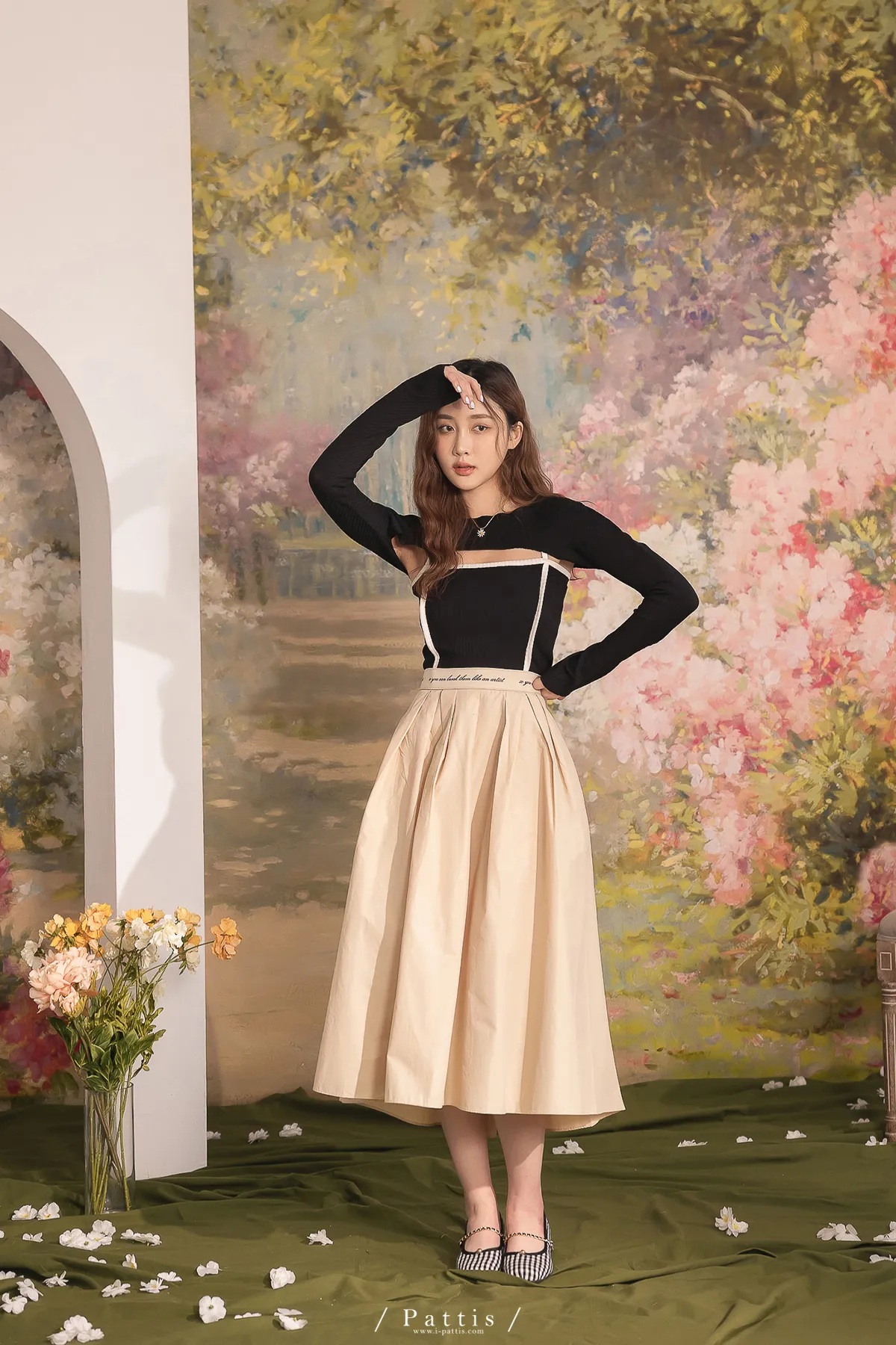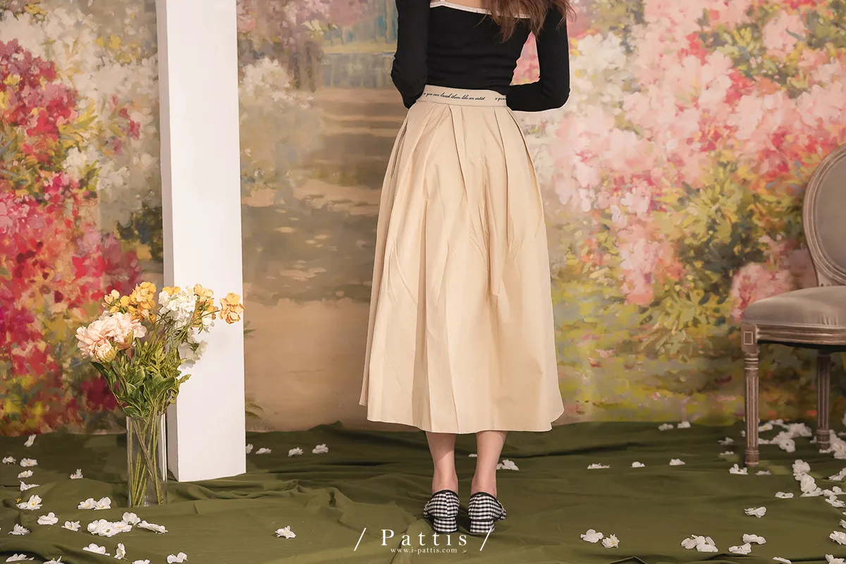 哼唱著小情詩 | 字母裝飾壓摺長裙(米杏)