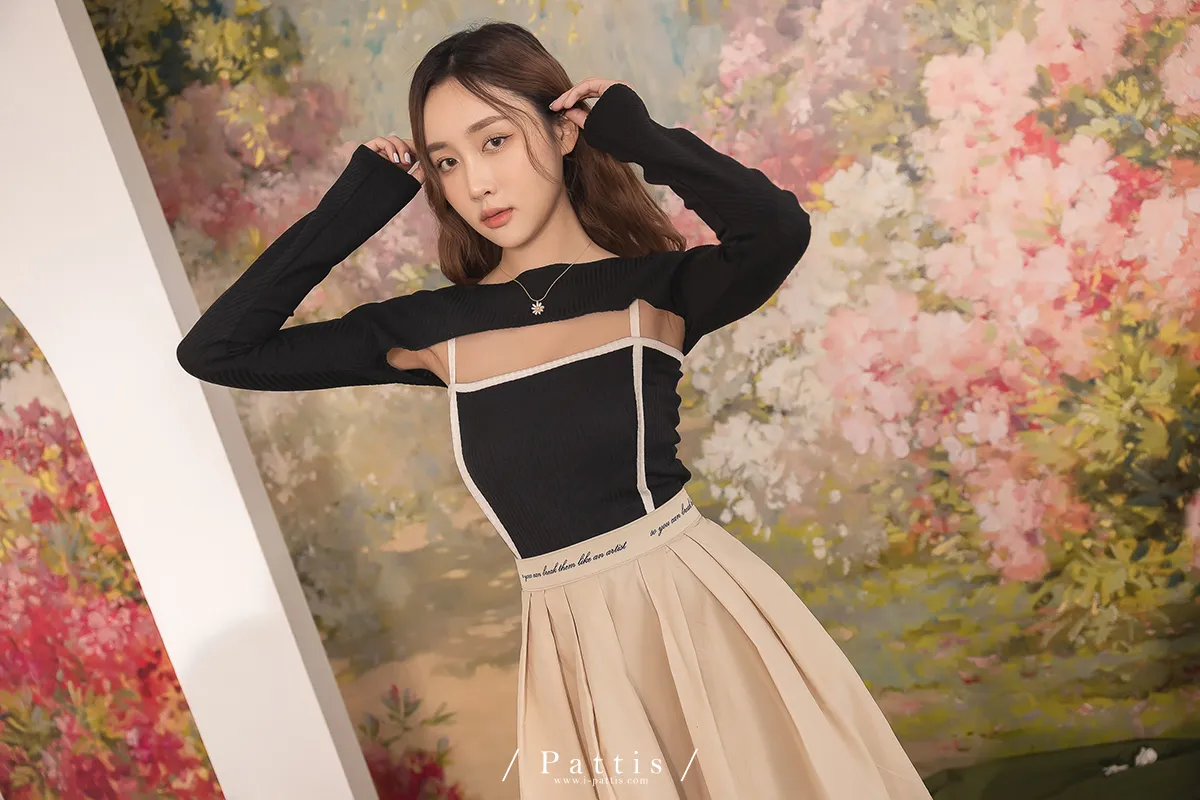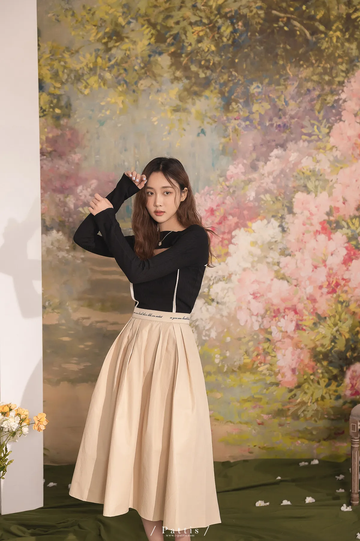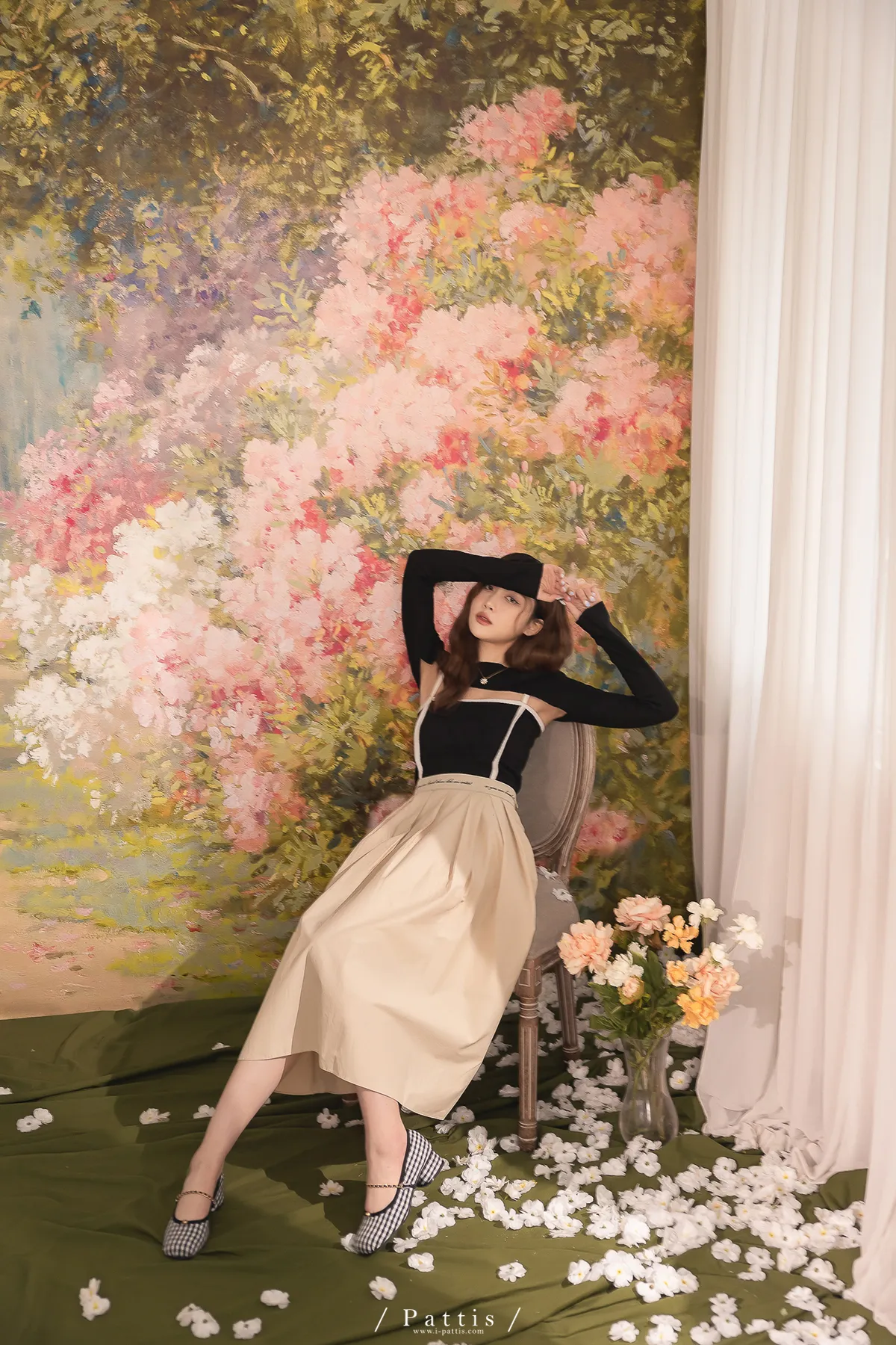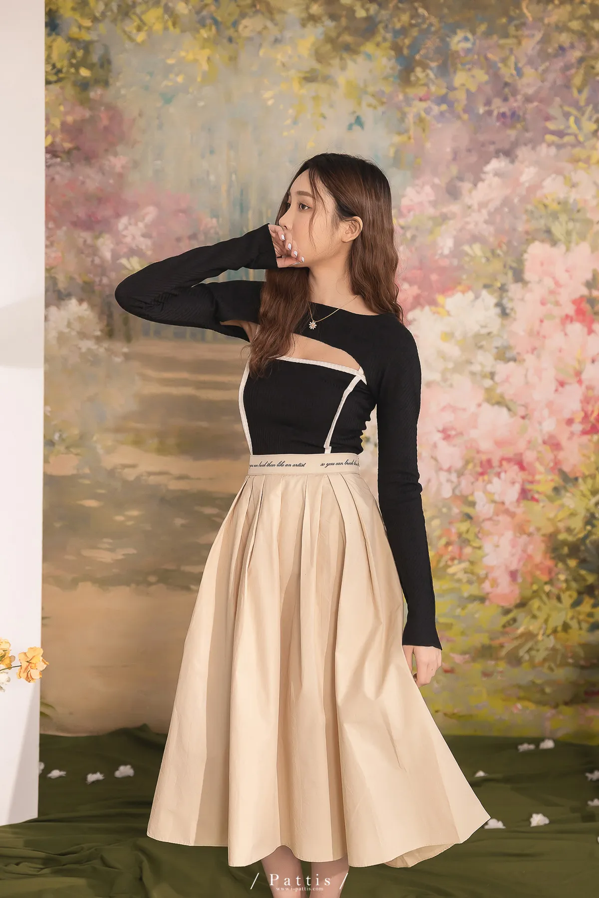 哼唱著小情詩 | 字母裝飾壓摺長裙(米杏)