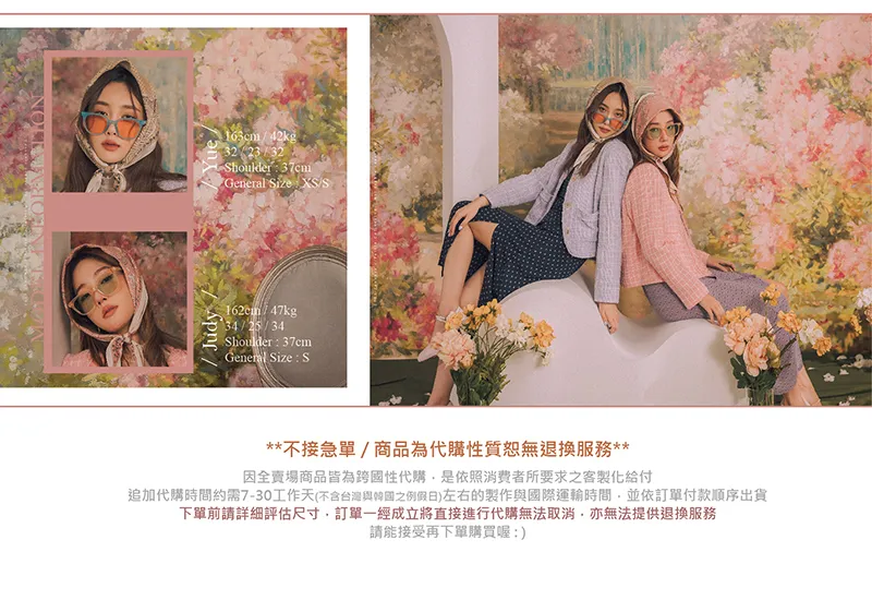| 平量尺寸(cm) | 全長 | 肩寬 | 胸寬 | 下擺寬 | 袖長 | 袖口寬 | 手臂寬 | 腋寬 | 材質 | 內襯 | 穿脫方式 |