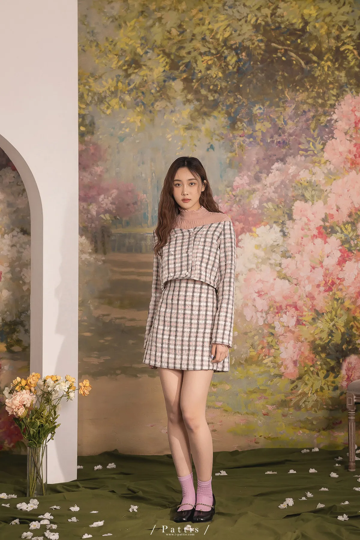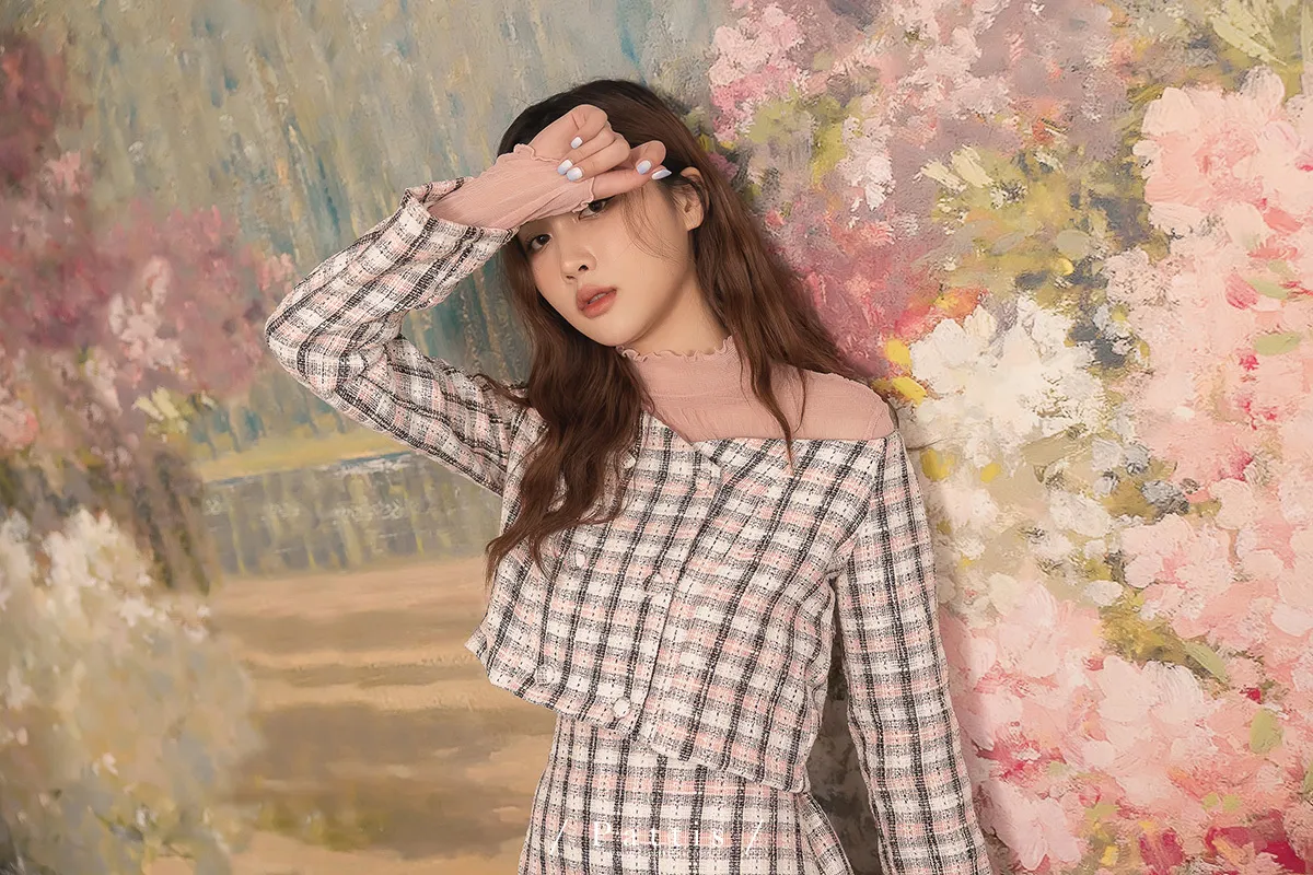 糖霜鬆餅 | 小香風露肩雙排釦上衣外套+短裙set(粉)