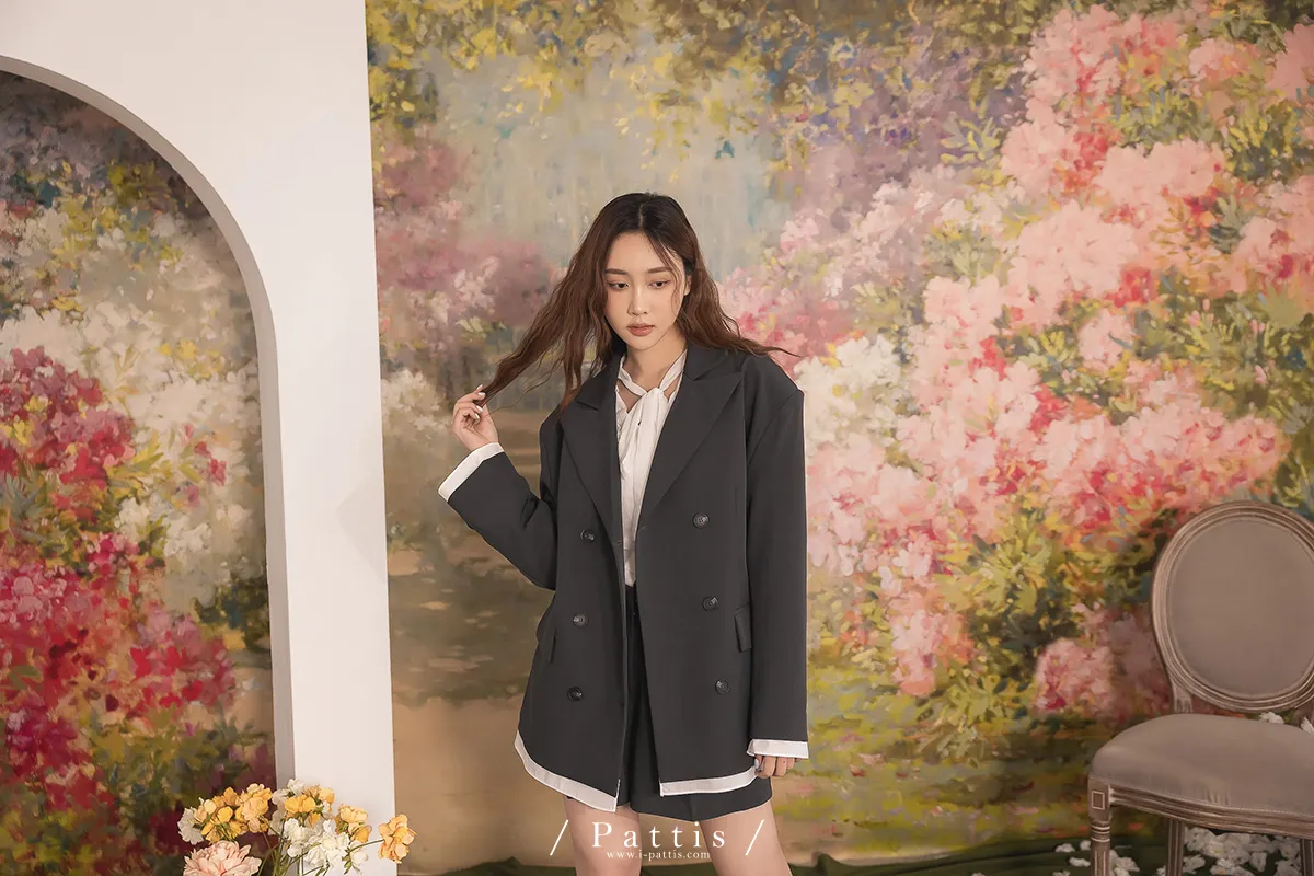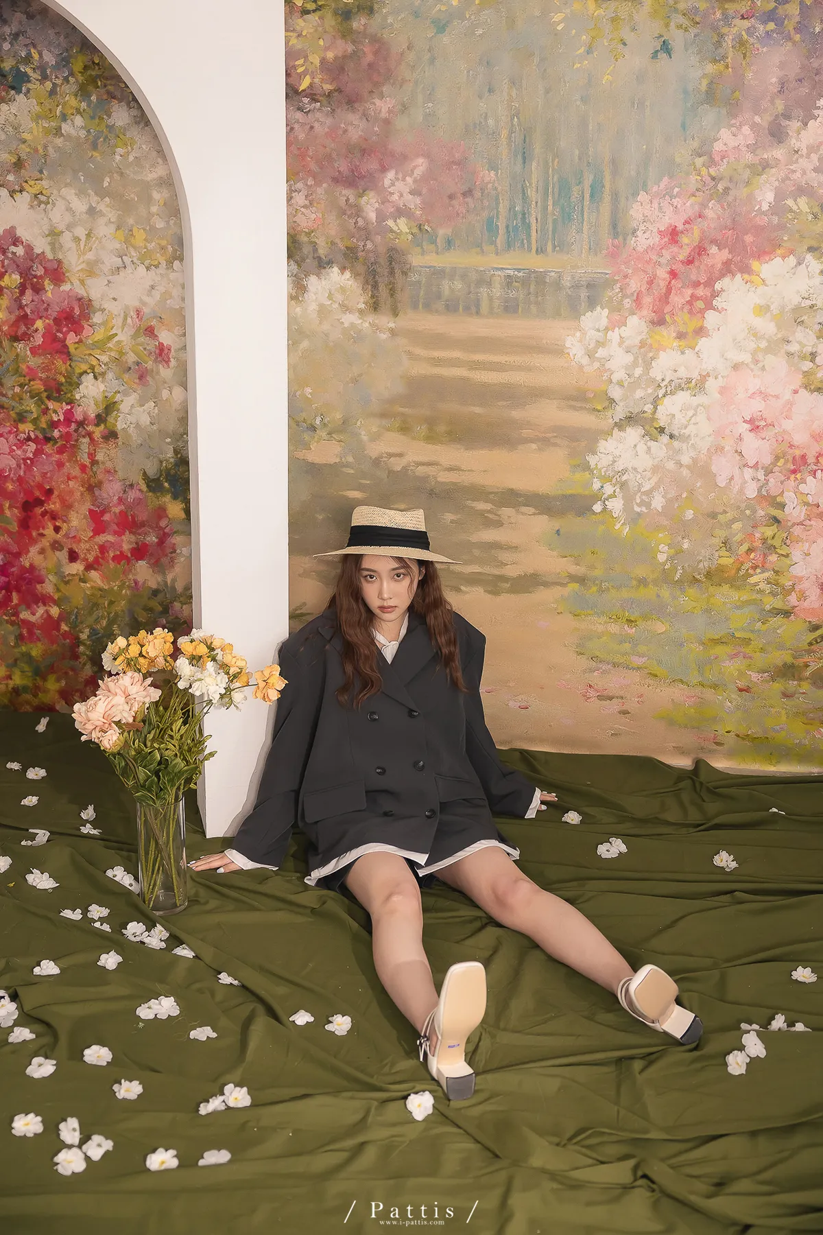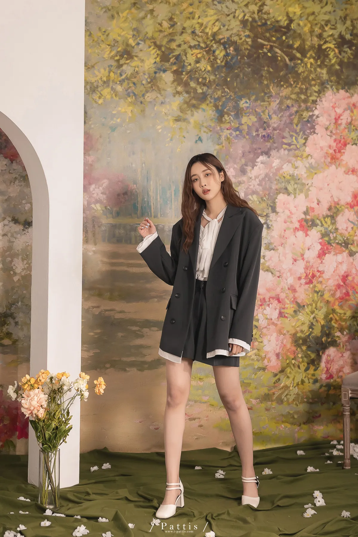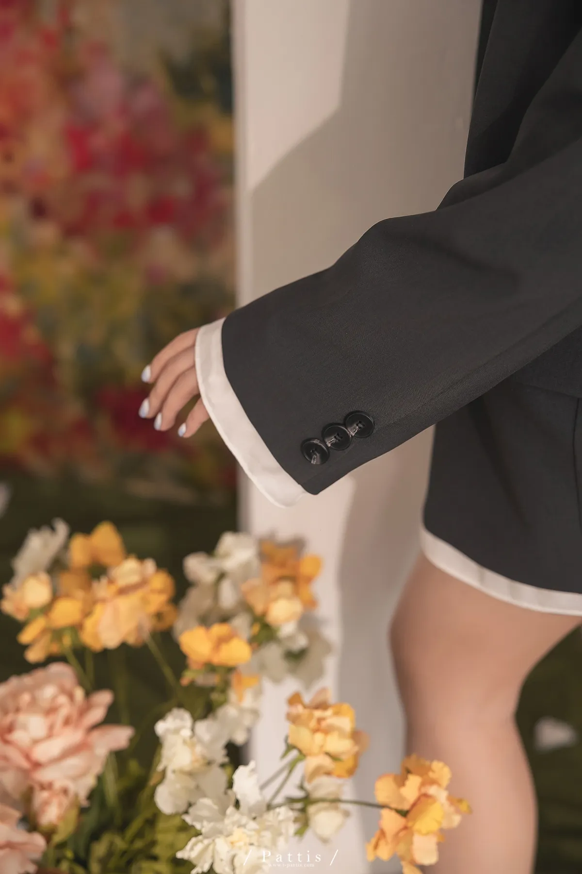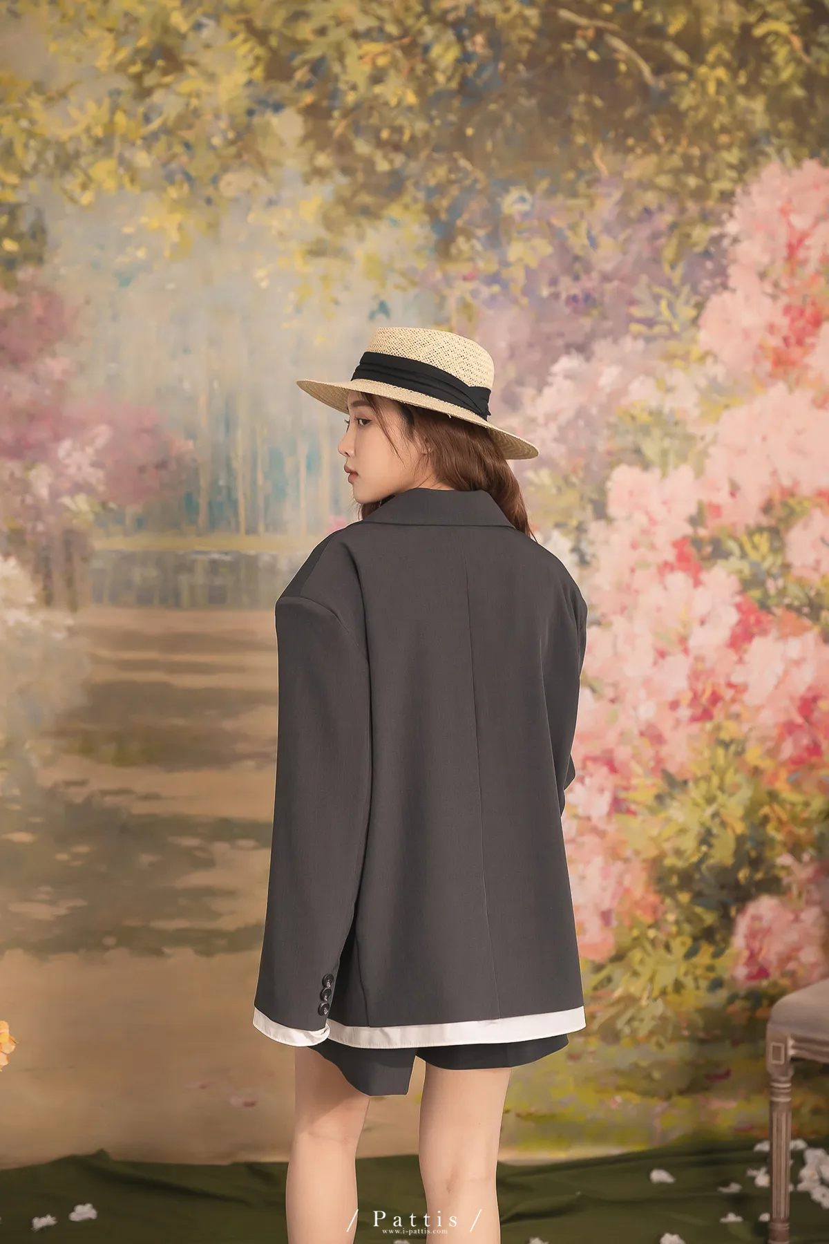 慵懶周末約會 | 假兩件西外+高腰短褲set組(灰黑)