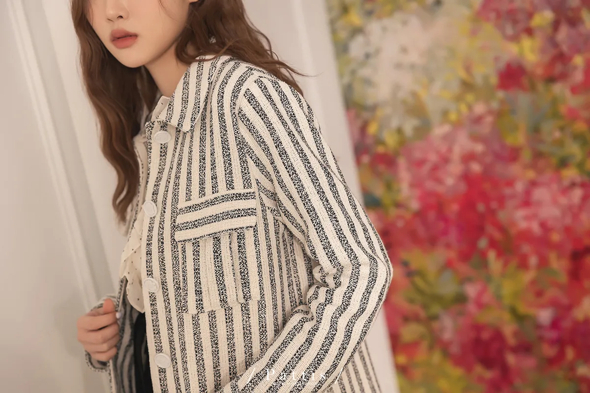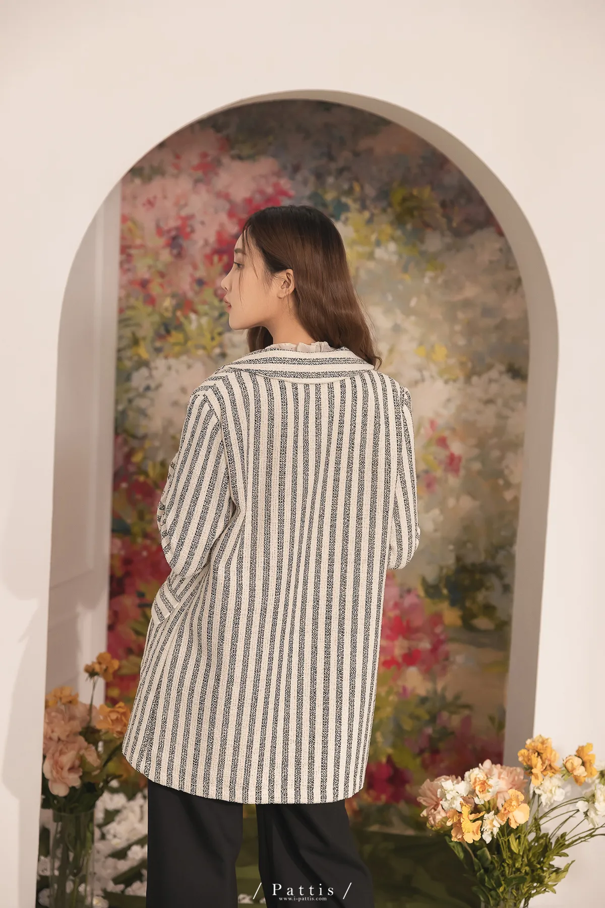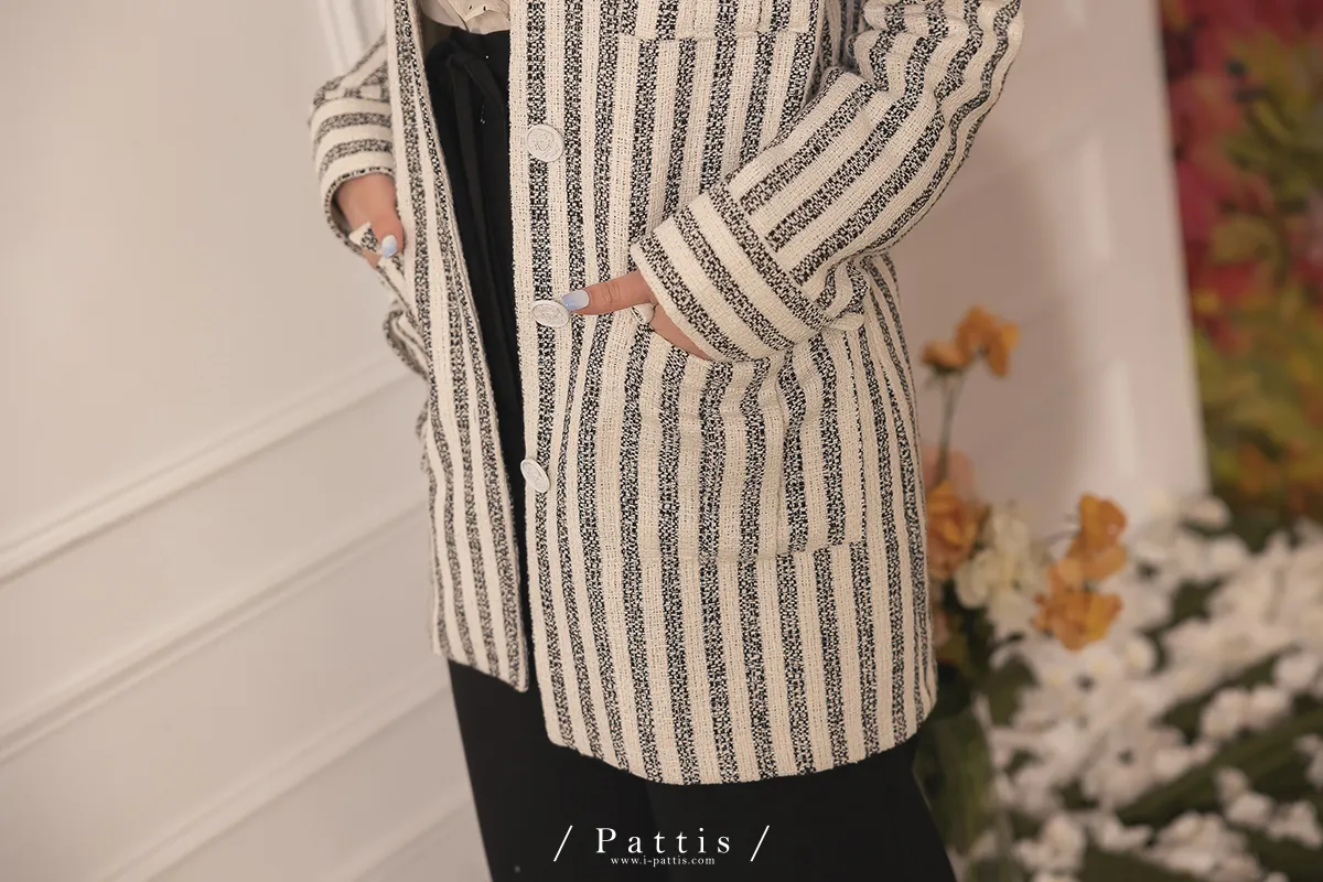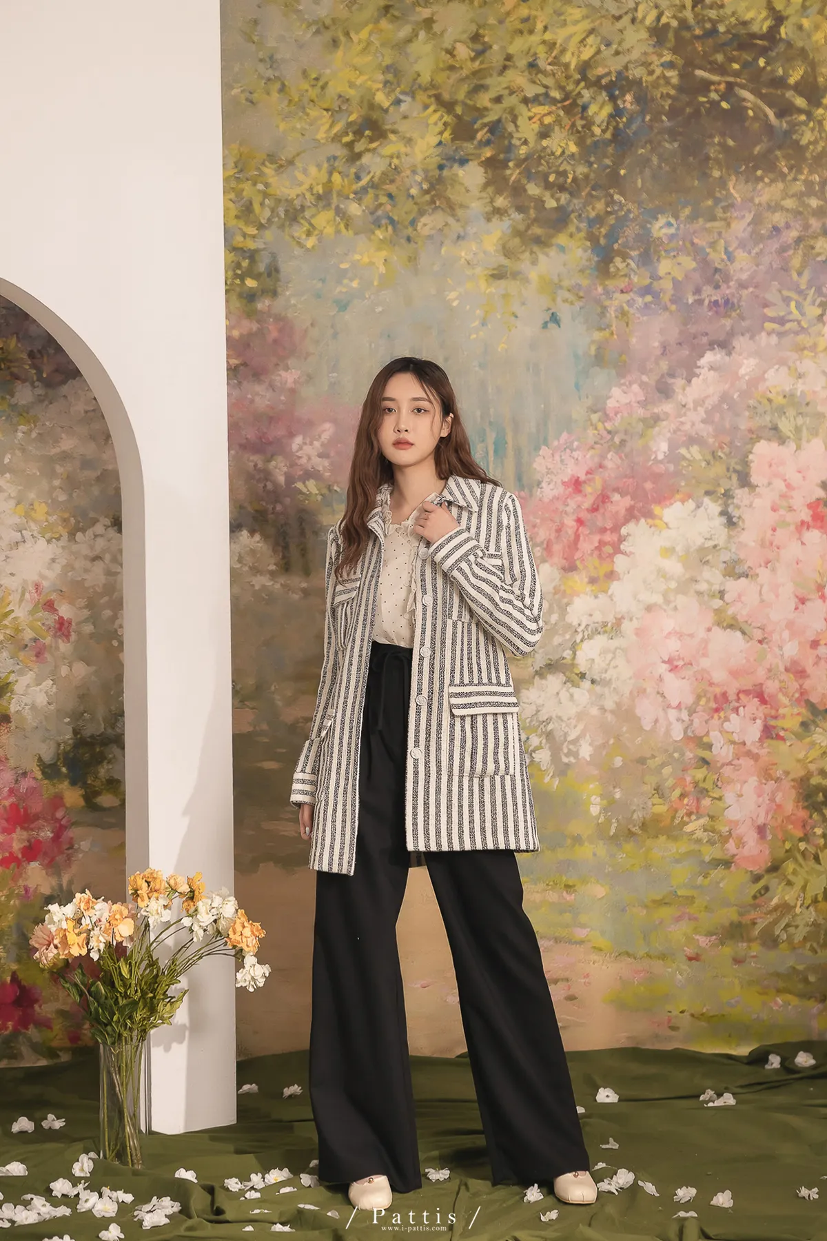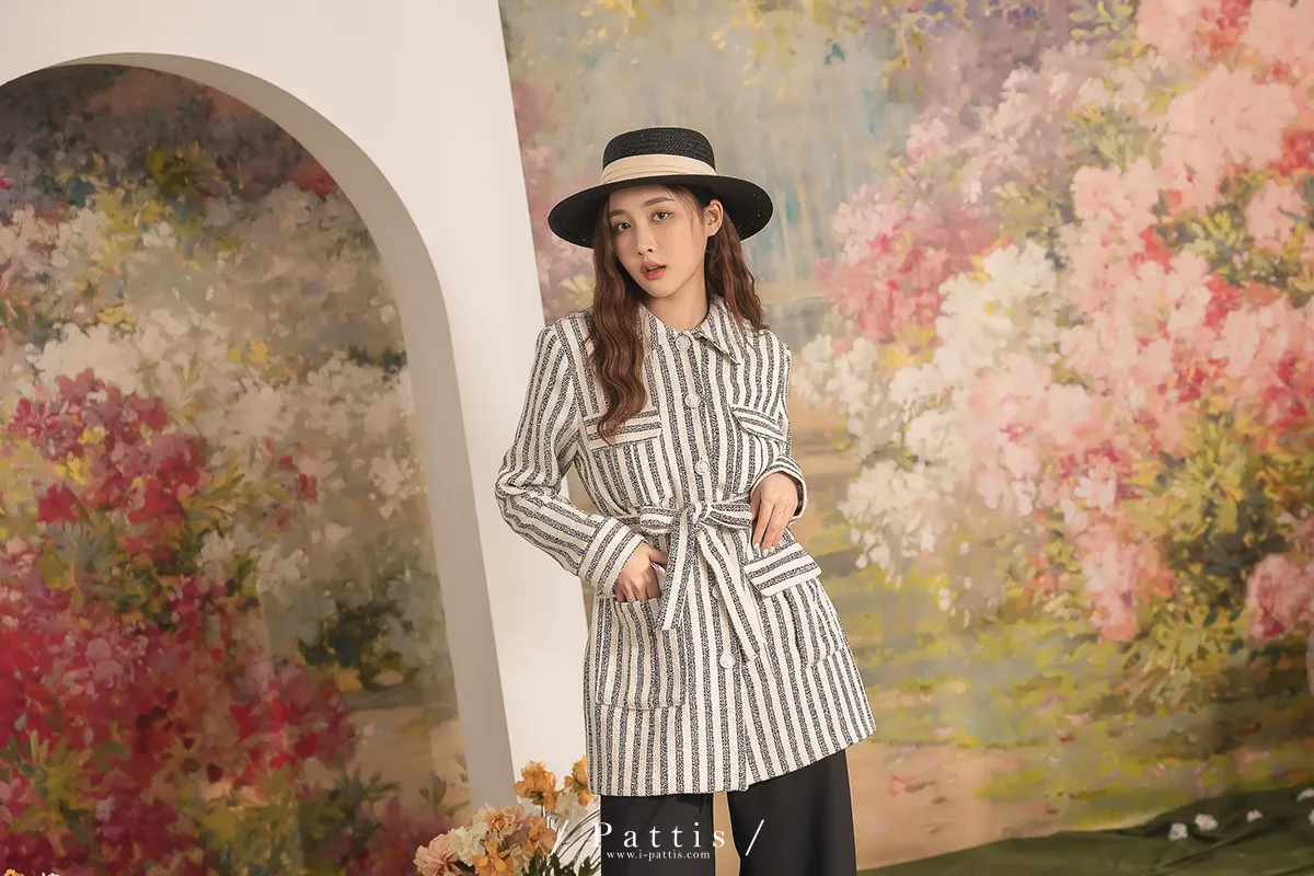 拿破崙條款 | 條紋軟毛呢繫帶風衣短洋裝(米白)