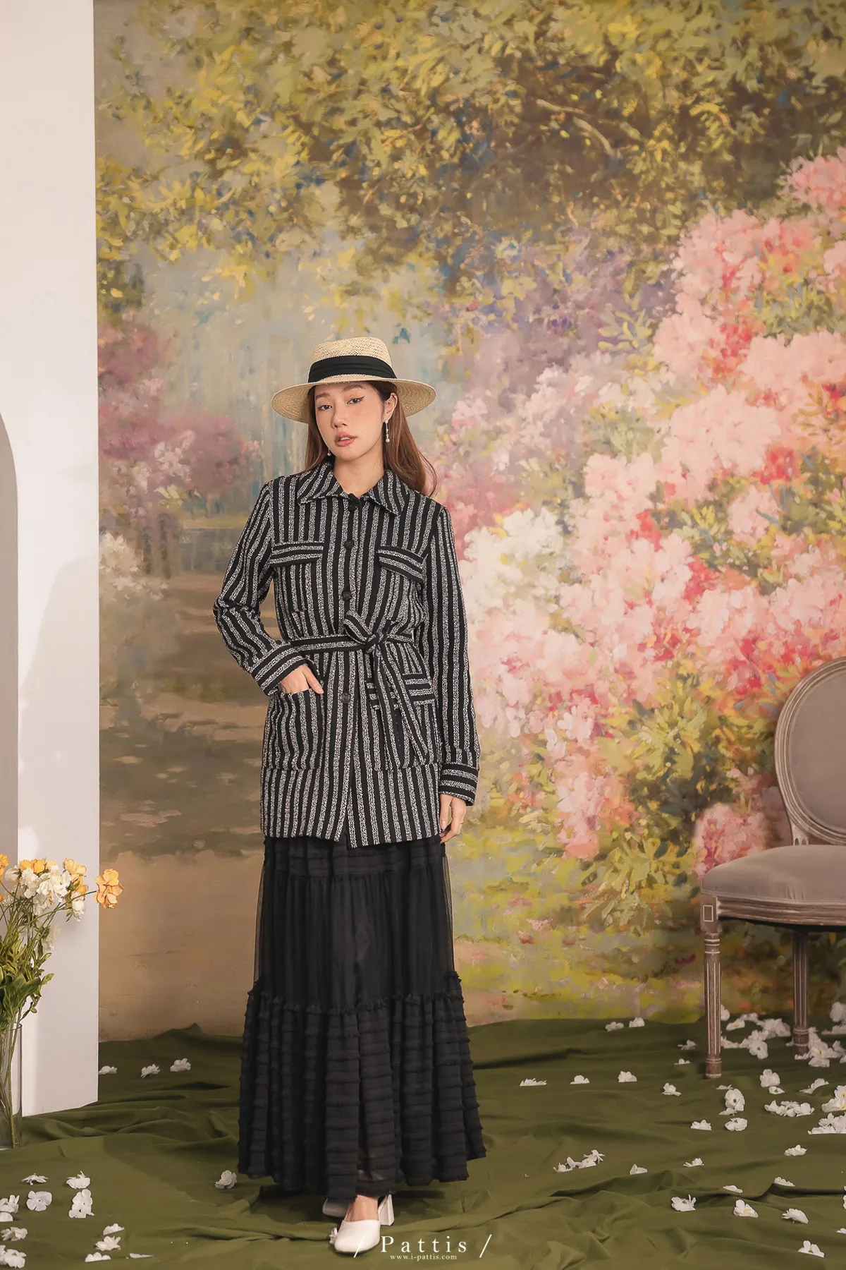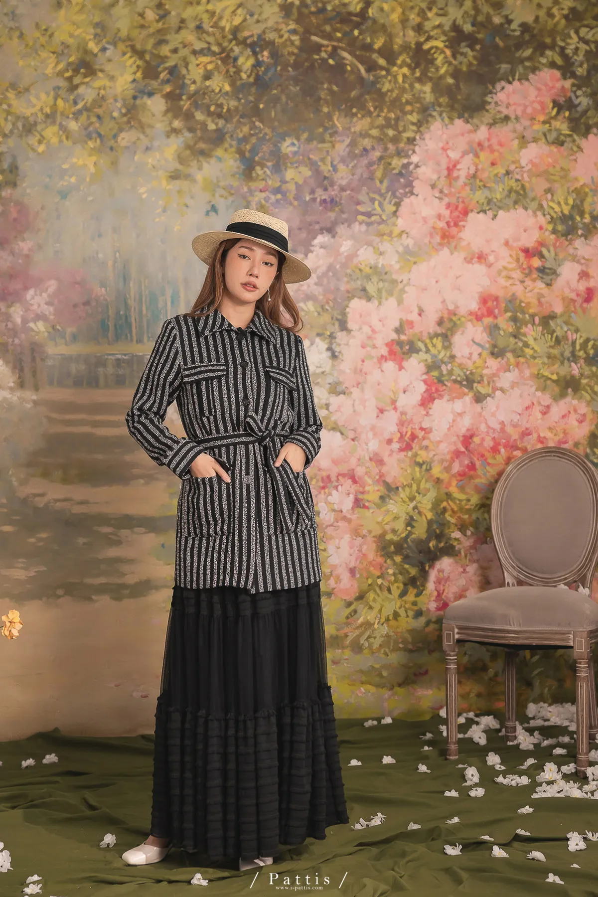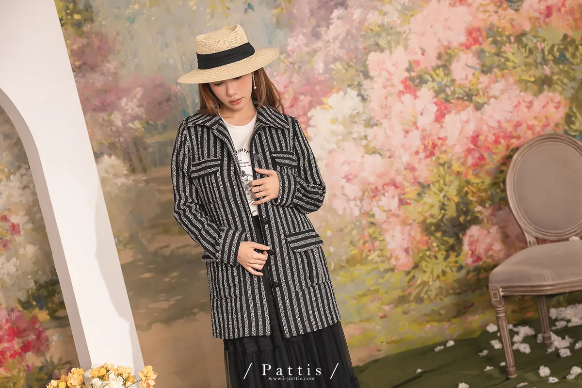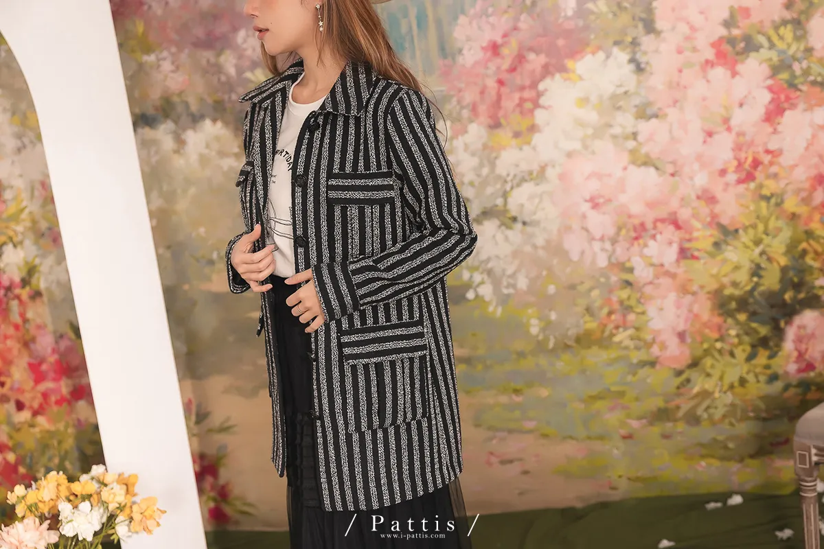 拿破崙條款 | 條紋軟毛呢繫帶風衣短洋裝(灰黑)