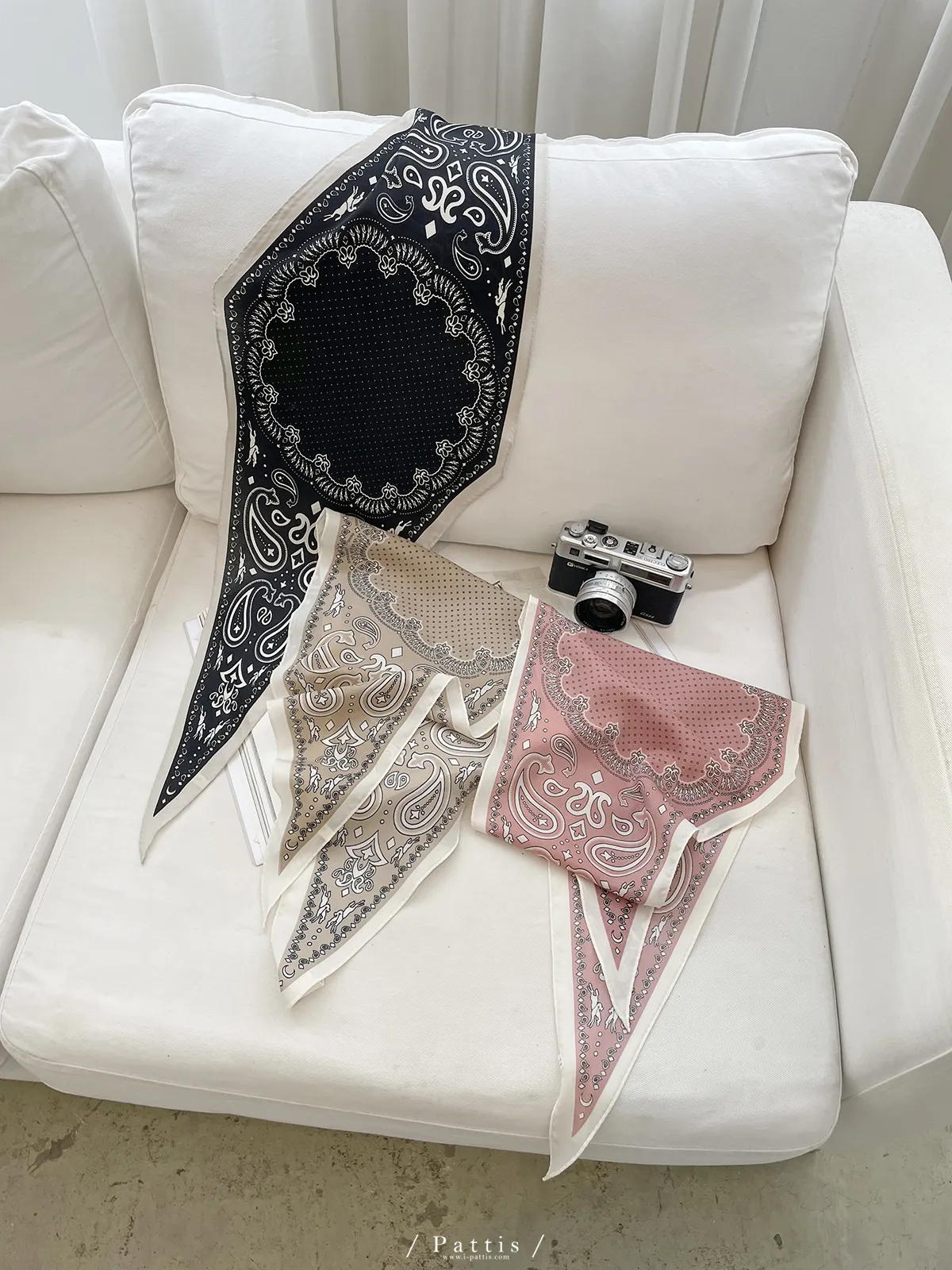 圖騰滾邊雙色絲巾(米杏/粉/黑)