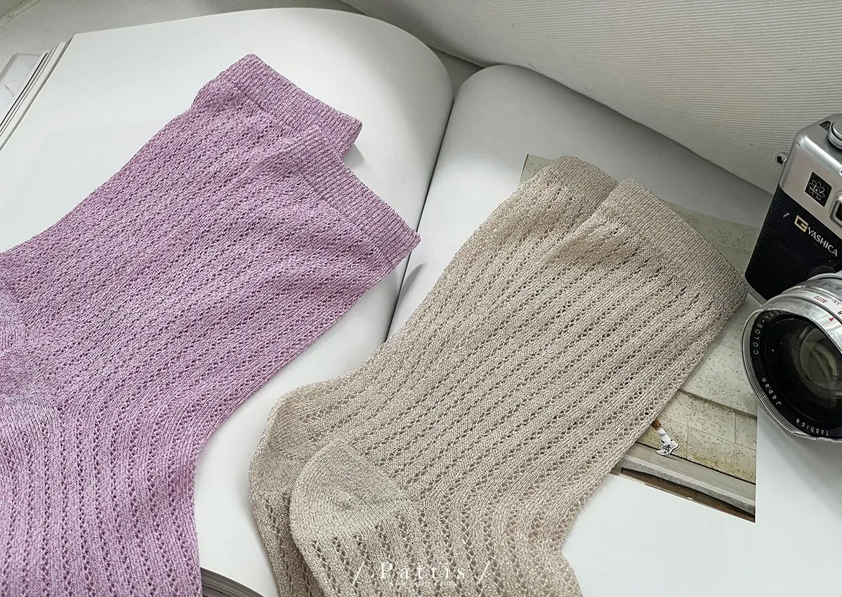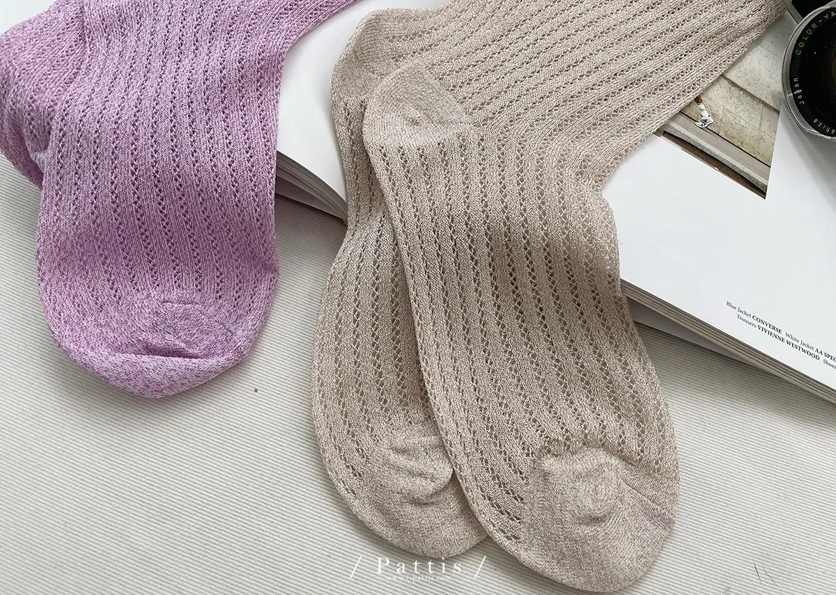 縷空小金蔥感短襪(米杏/粉紫)