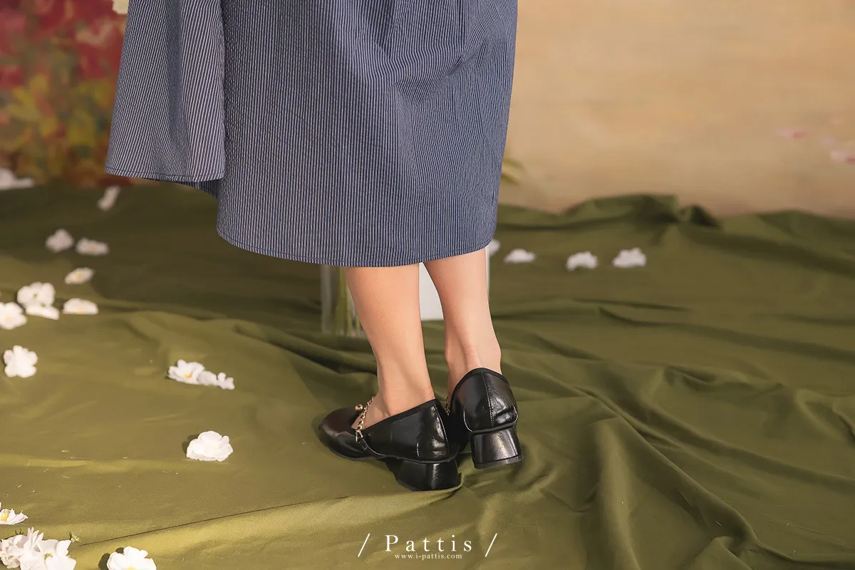 (現貨-黑23.0)茶花下的信仰者 | 小金球皮穿鍊軟皮瑪莉珍鞋