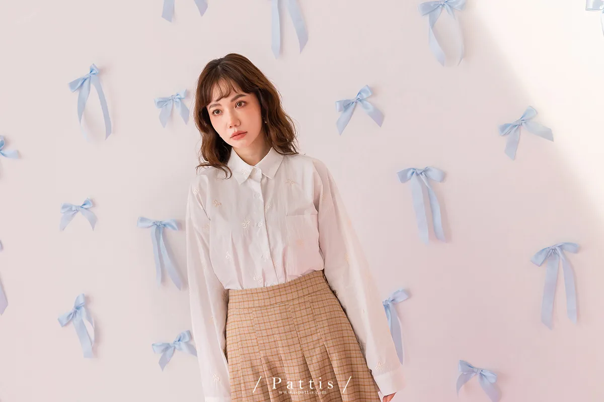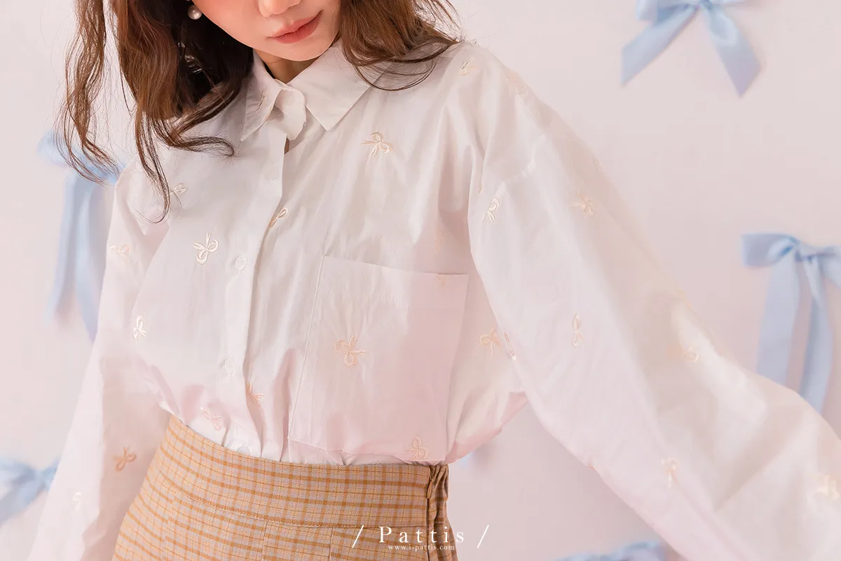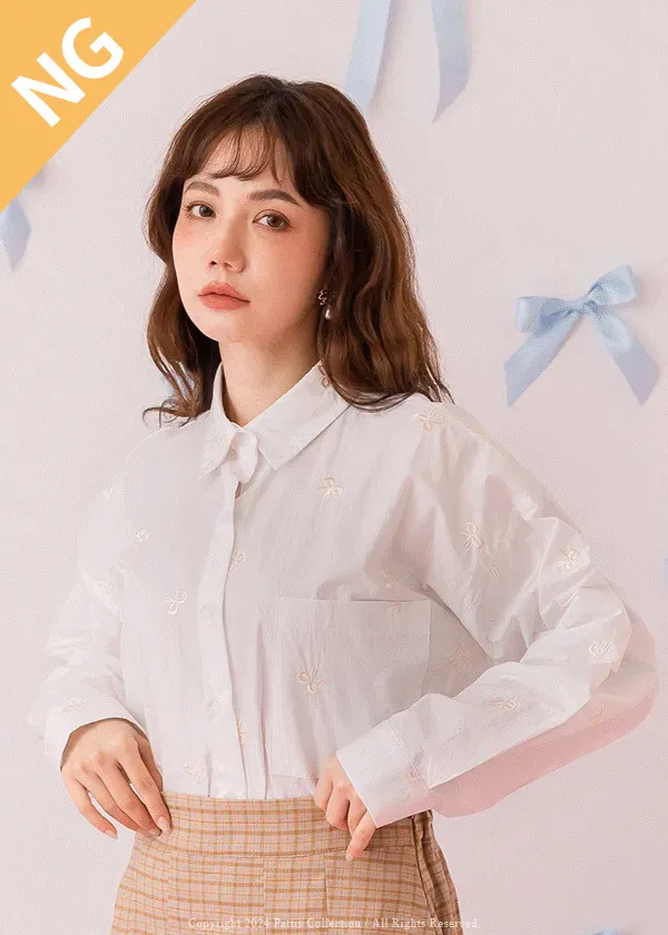 / NG品 原價$1380 /原味幸運餅 | 蝴蝶結刺繡襯衫上衣(白)