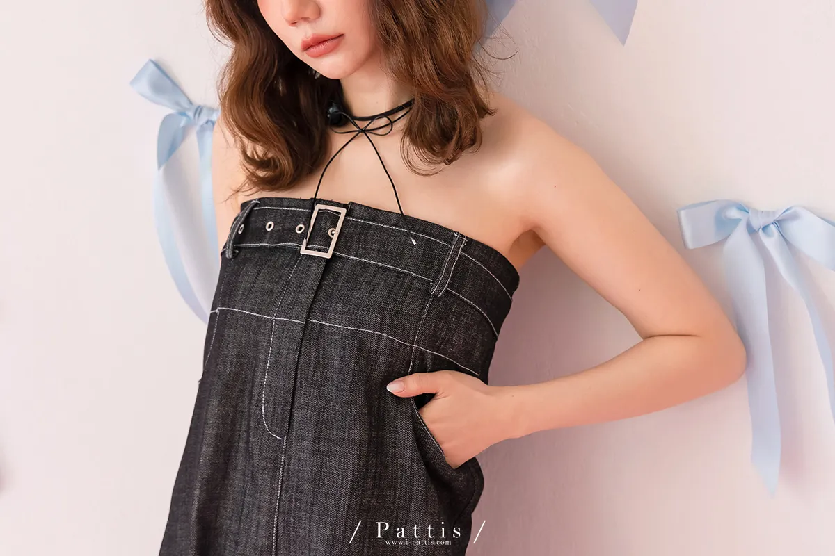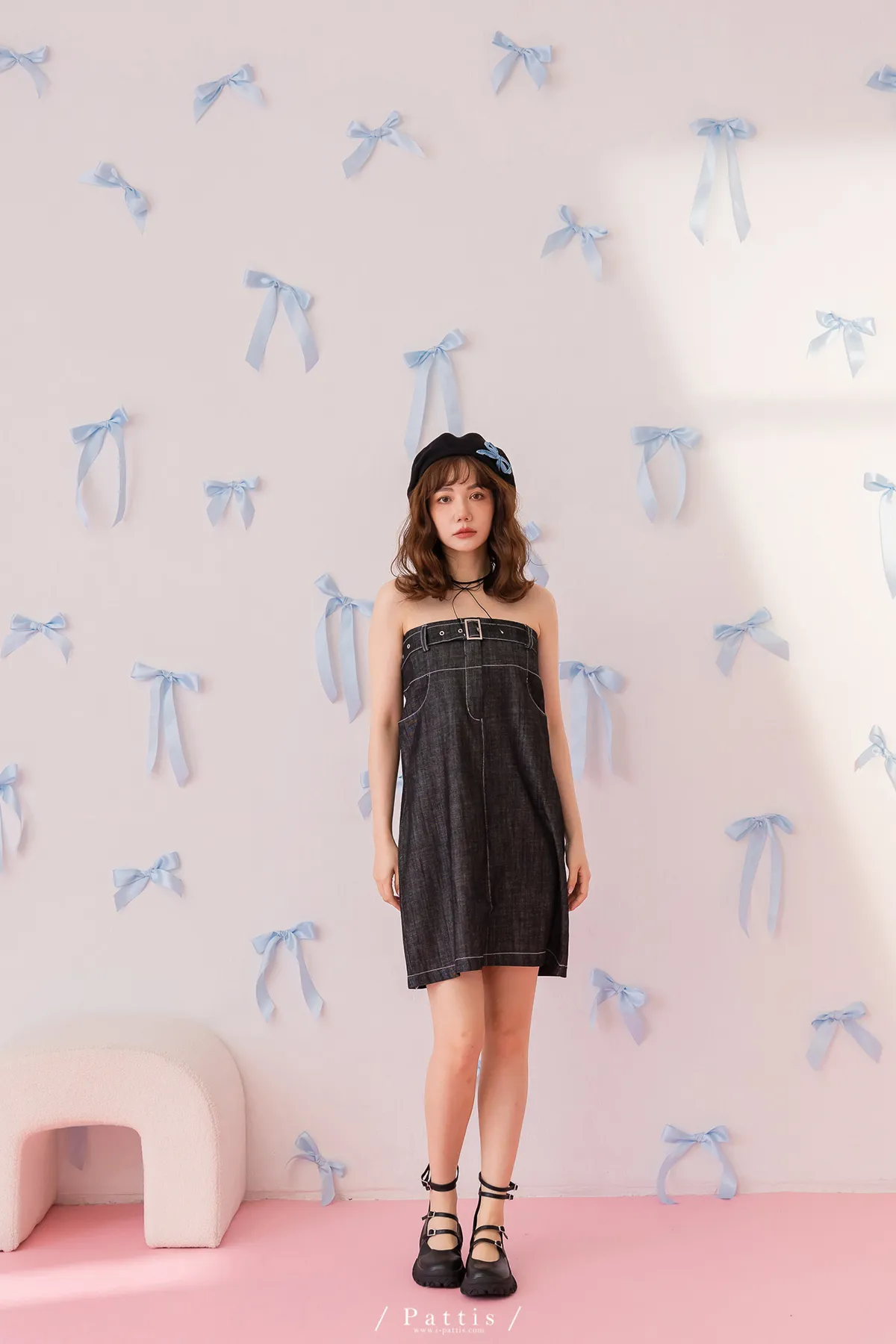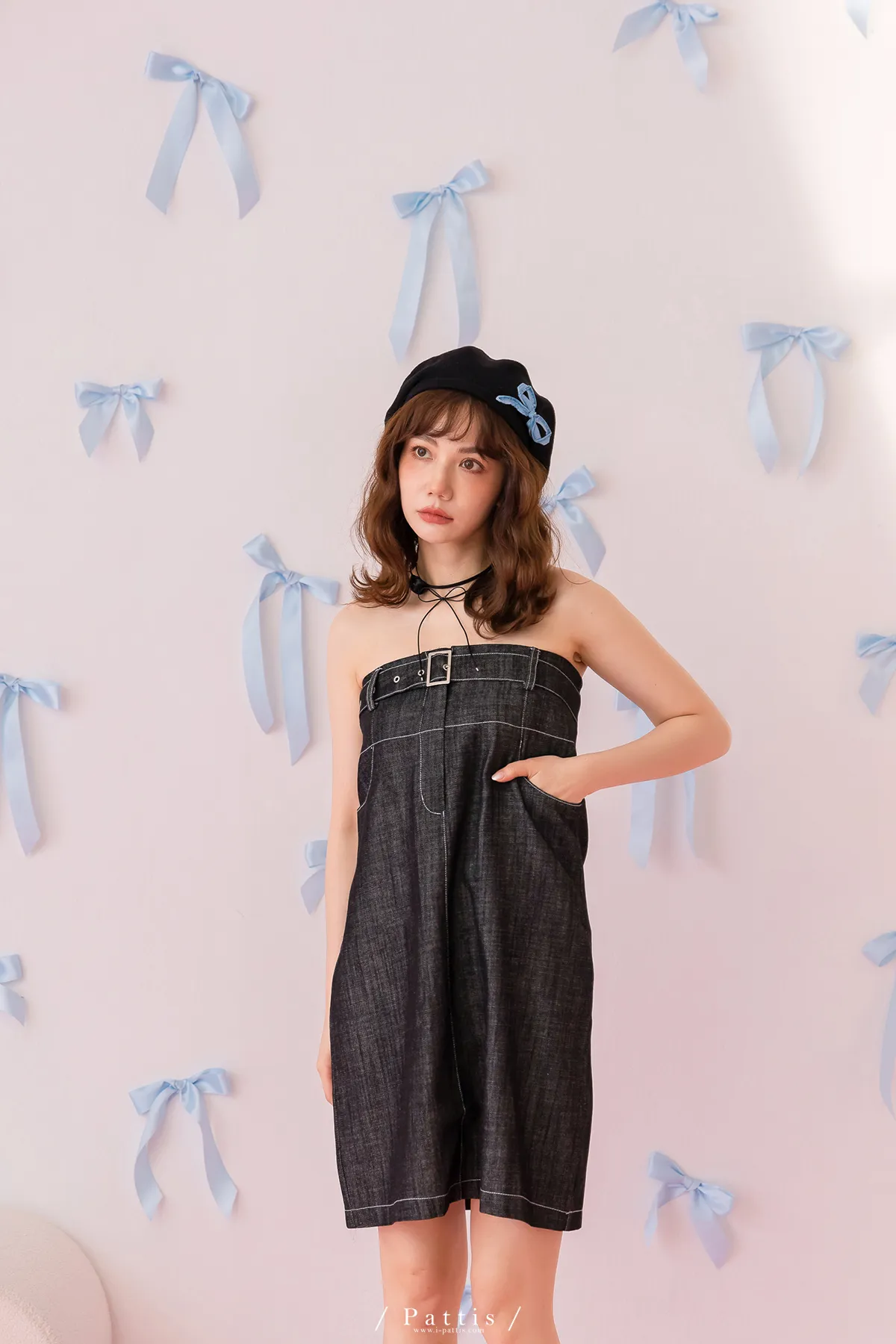 深海礁岩 | 環扣繫帶造型單寧平口洋裝(單一色)
