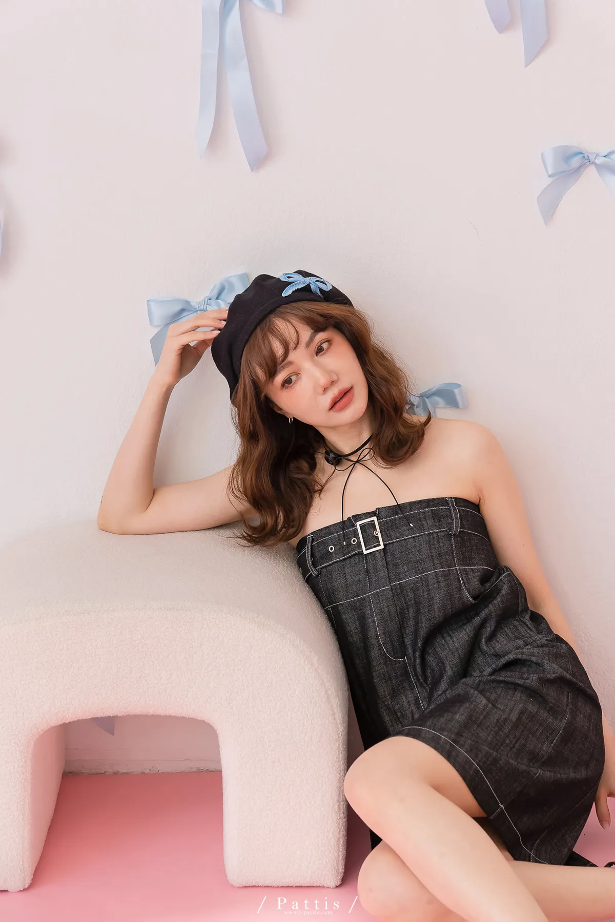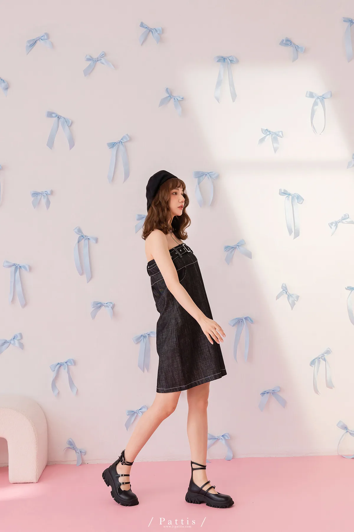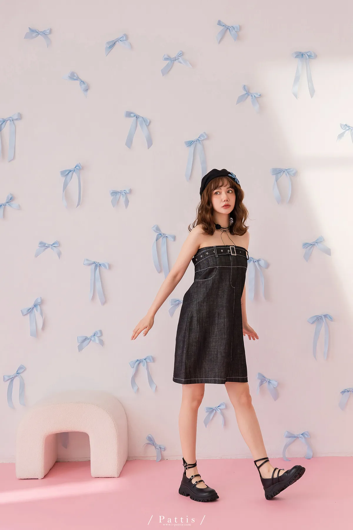 深海礁岩 | 環扣繫帶造型單寧平口洋裝(單一色)
