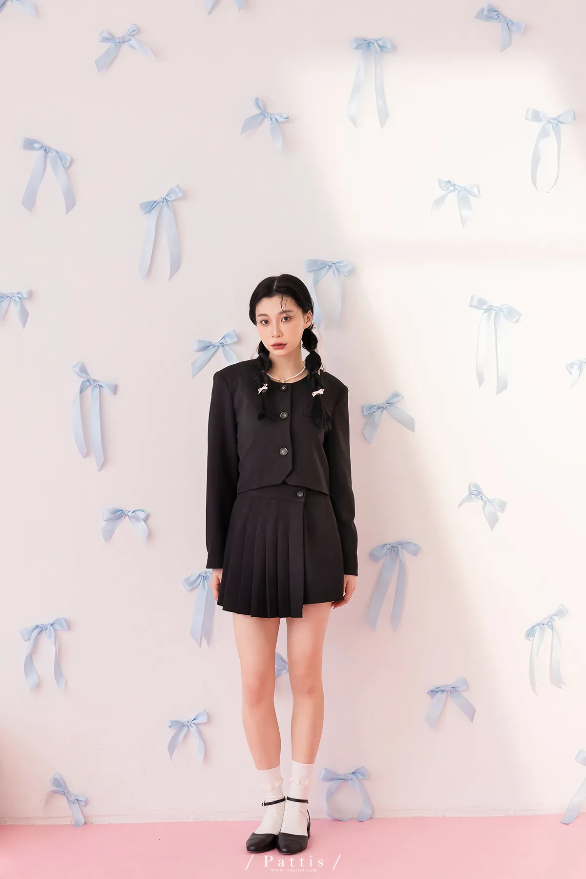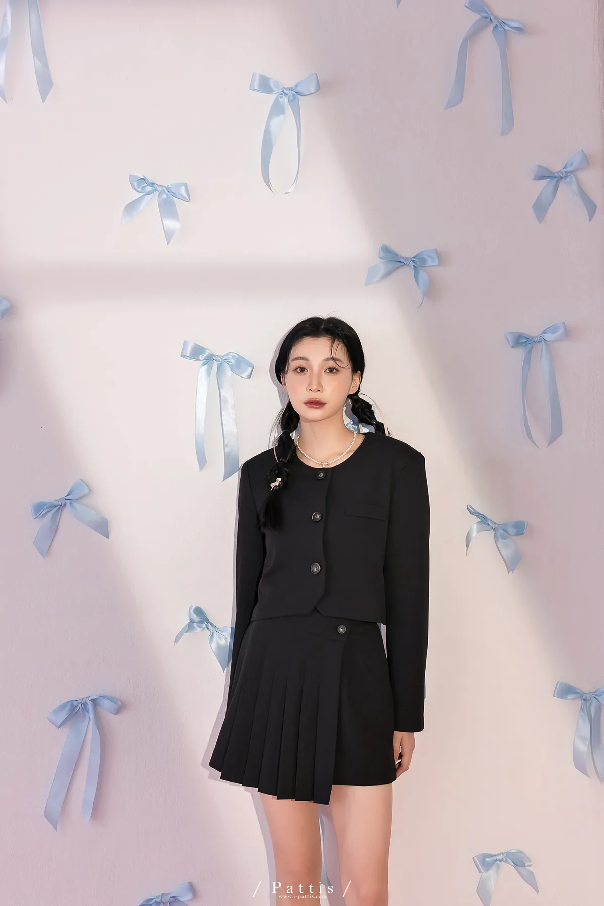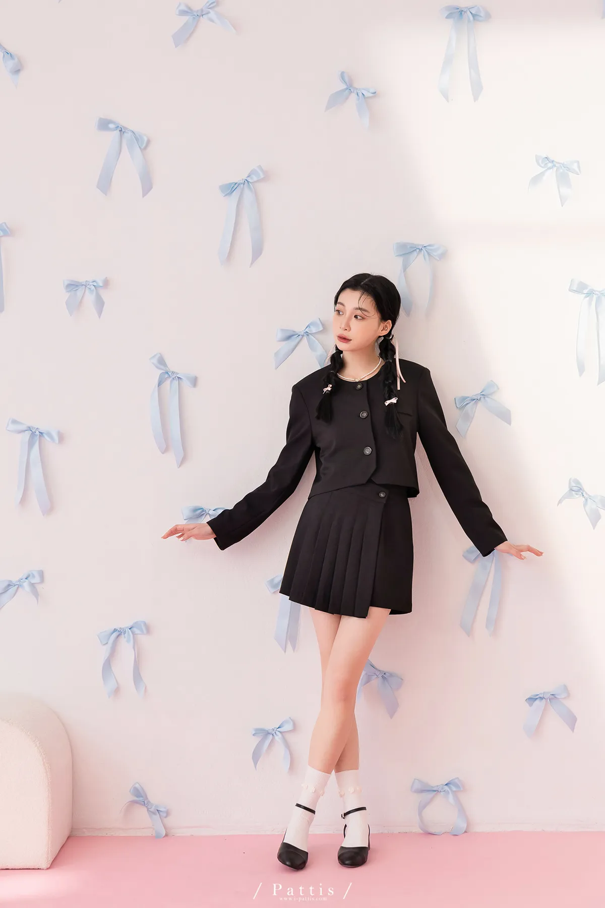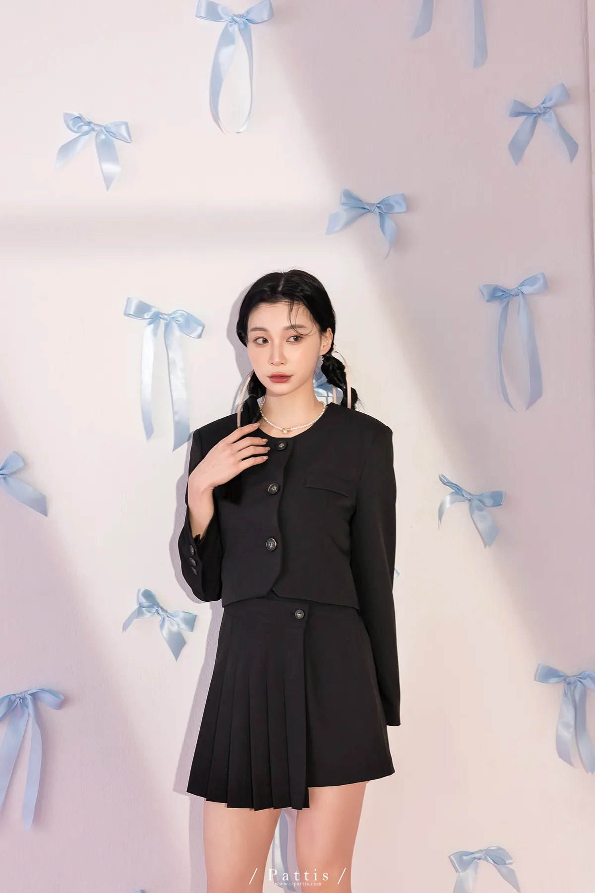 (現貨-西外)分寸重新定義|-可分售-圓領西裝外套+百褶短褲裙set組(黑)