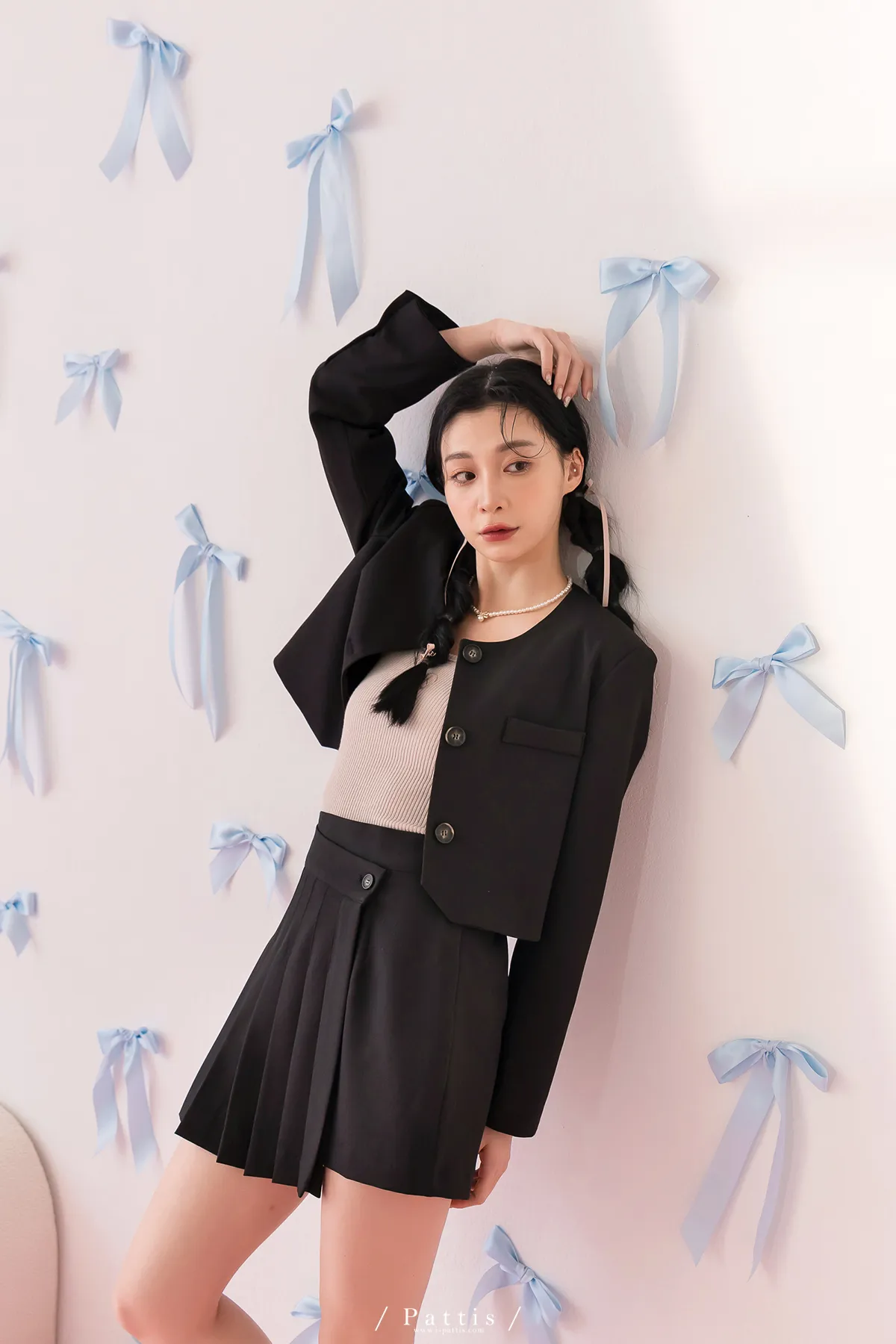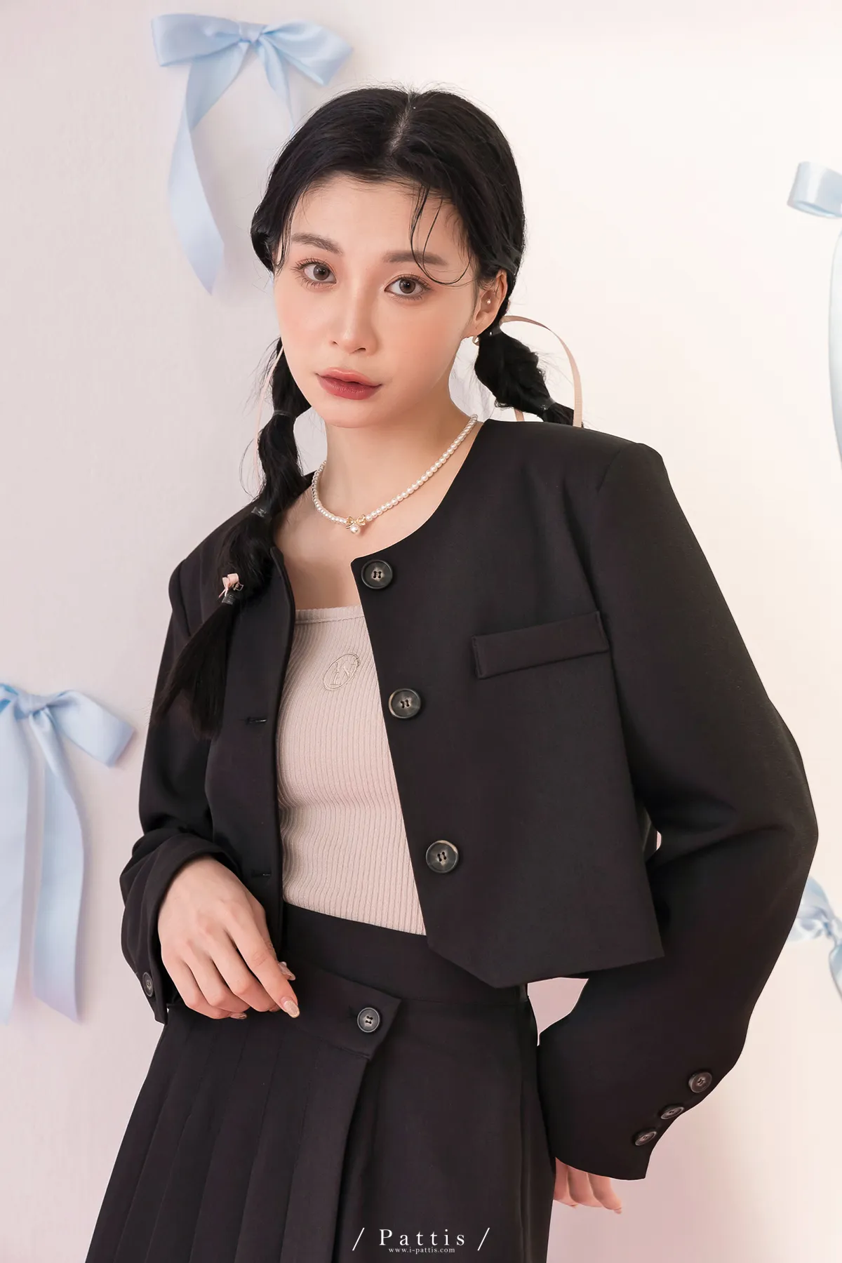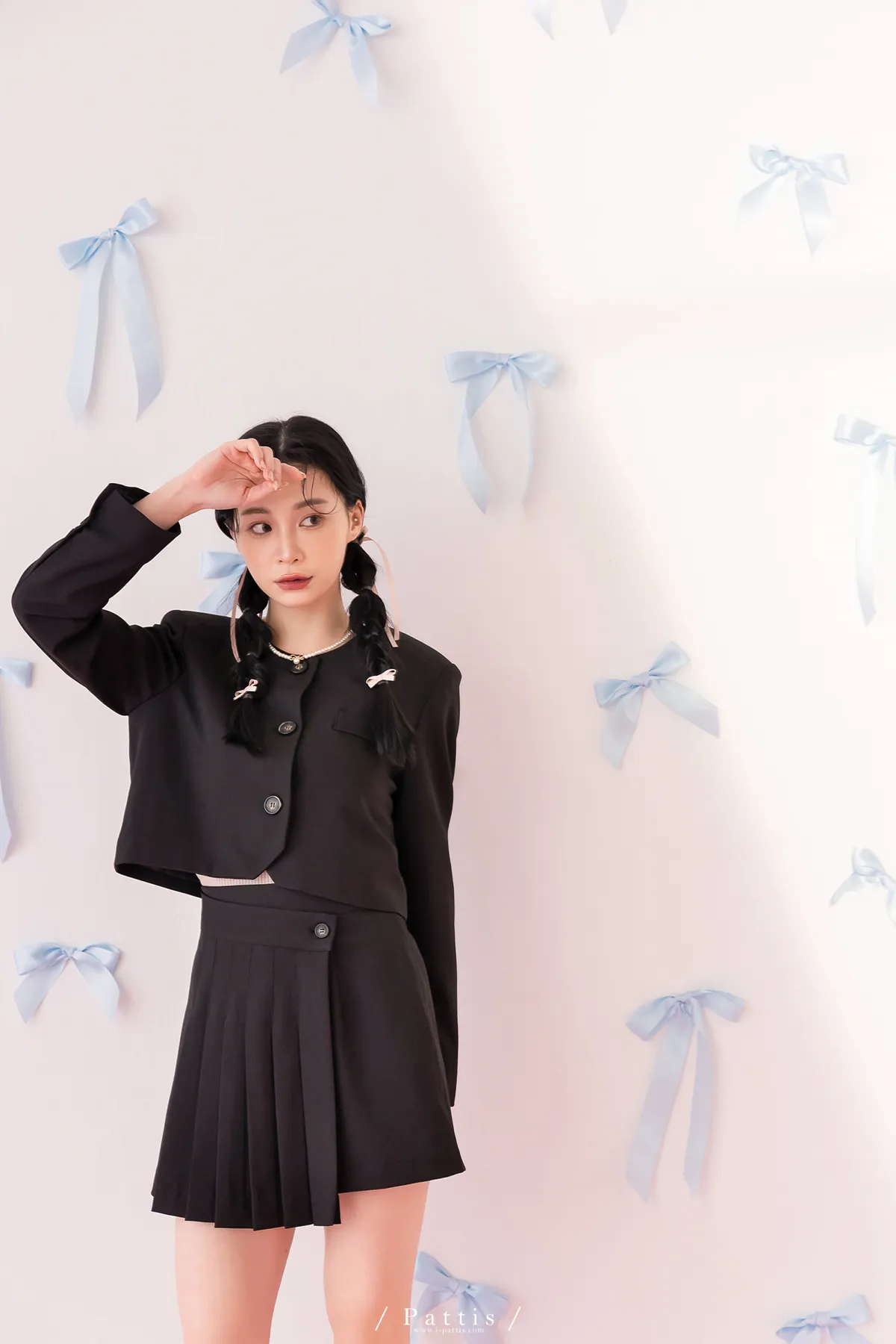 (現貨-西外)分寸重新定義|-可分售-圓領西裝外套+百褶短褲裙set組(黑)