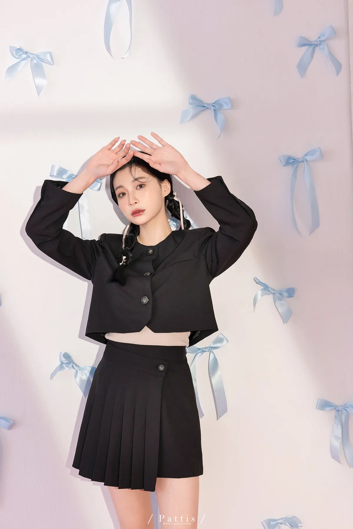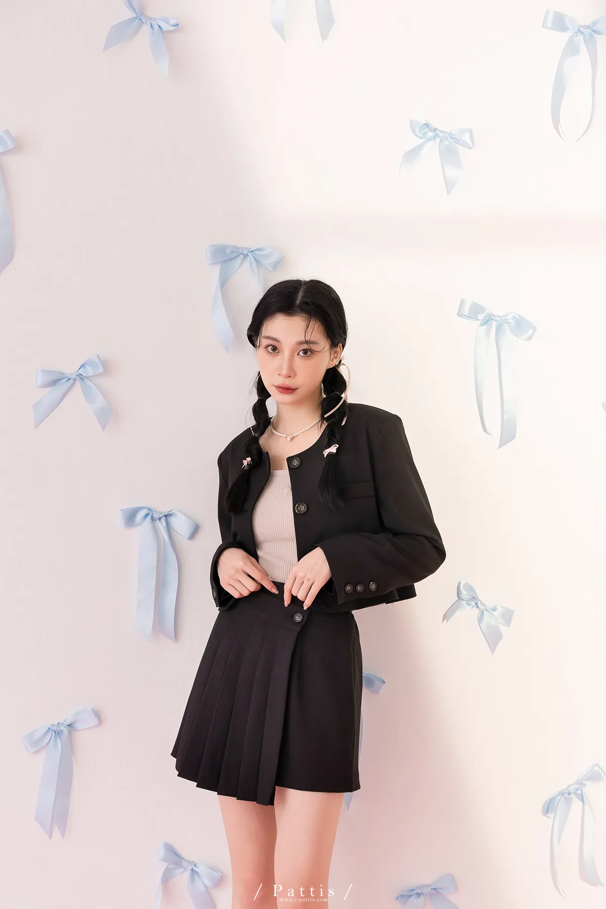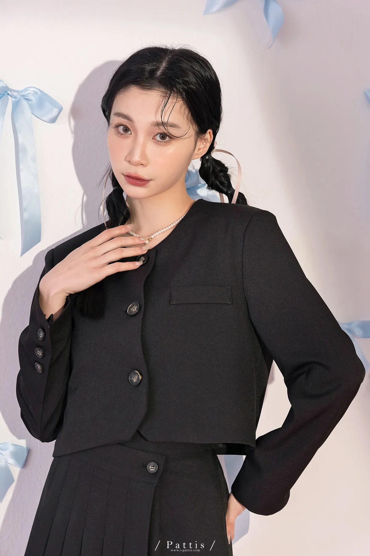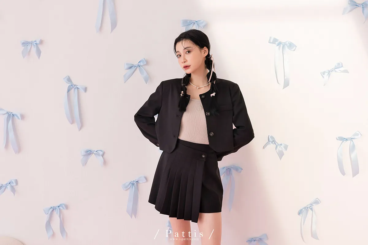 (現貨-西外)分寸重新定義|-可分售-圓領西裝外套+百褶短褲裙set組(黑)