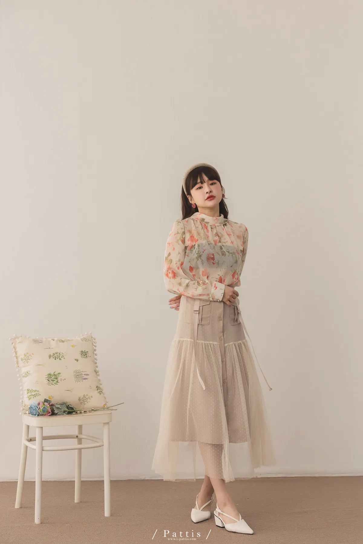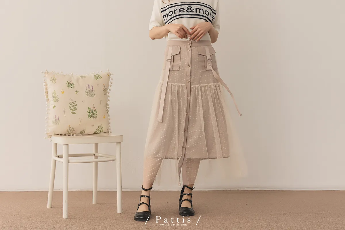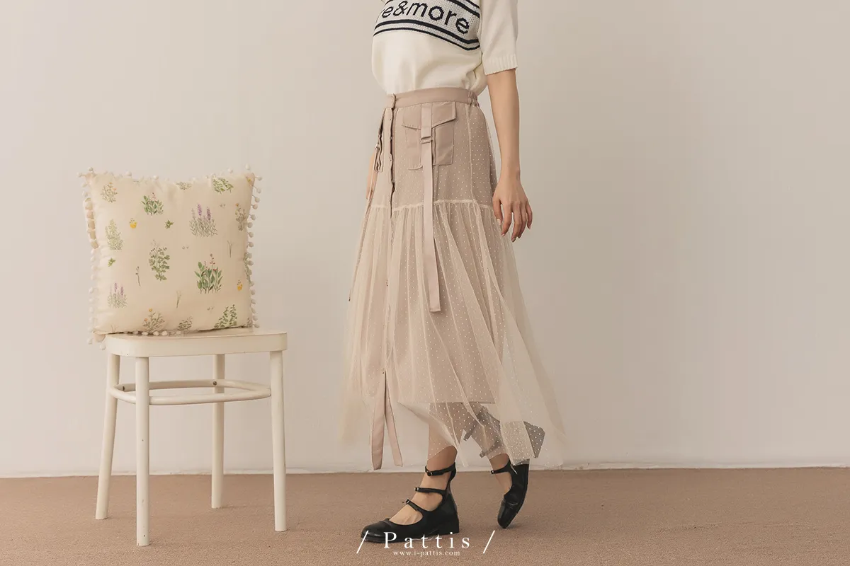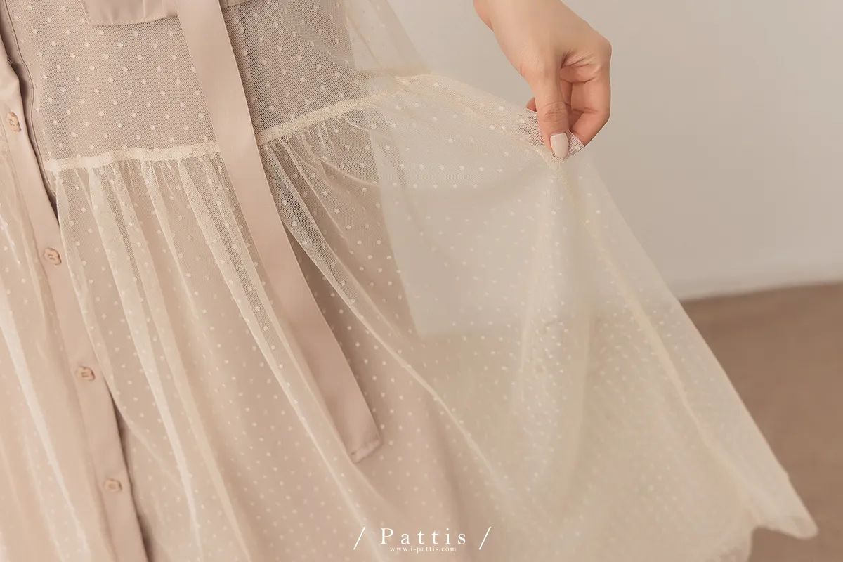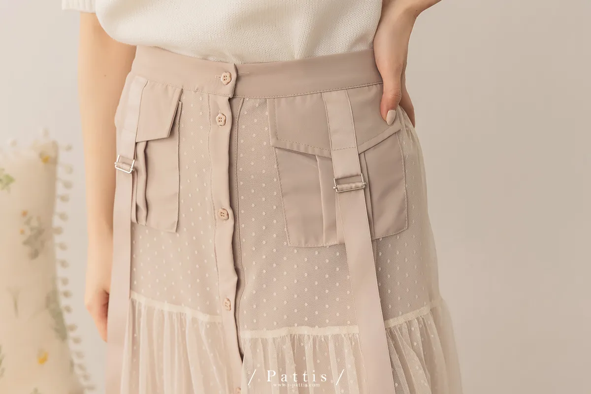 每段愛情都自帶濾鏡 | 繫帶雙層點點花扣2way網紗裙 (鹽沙奶杏)