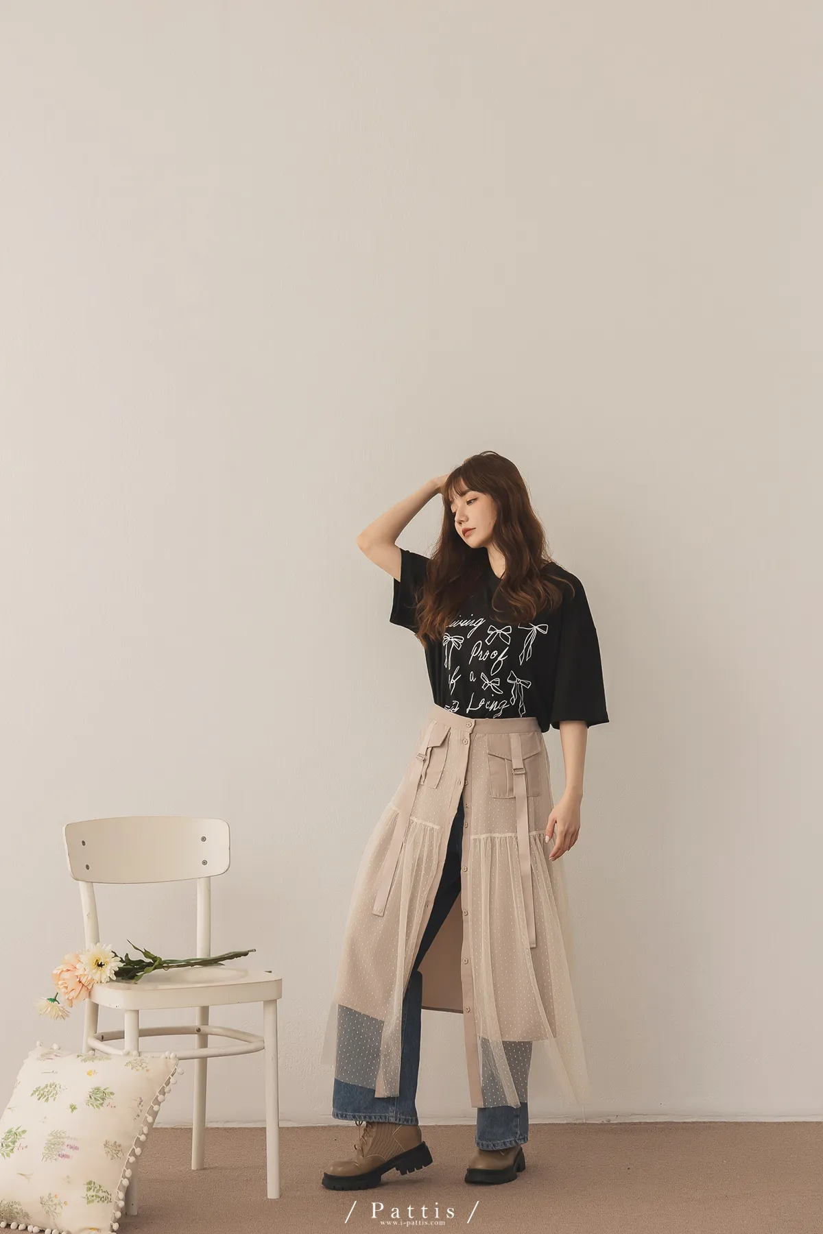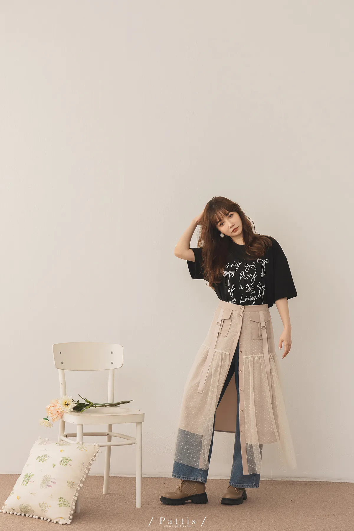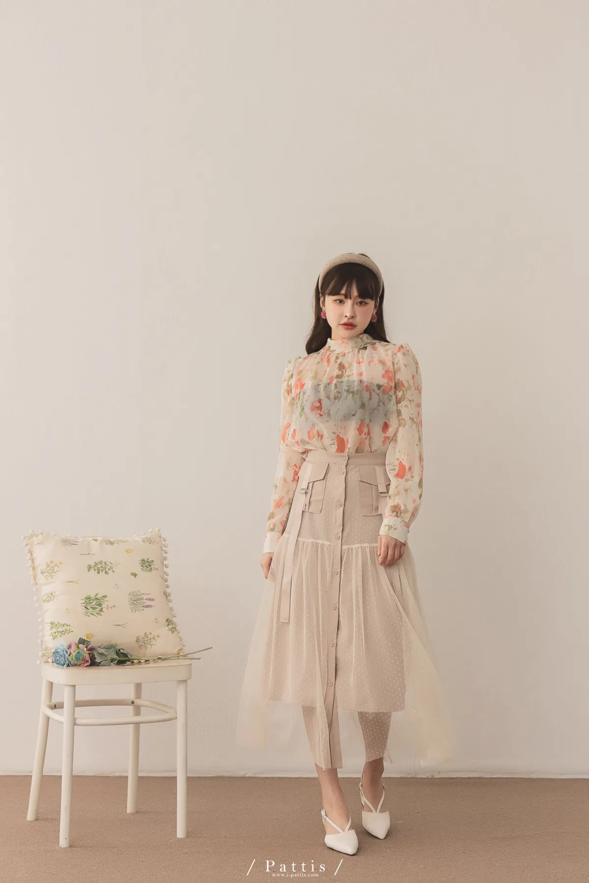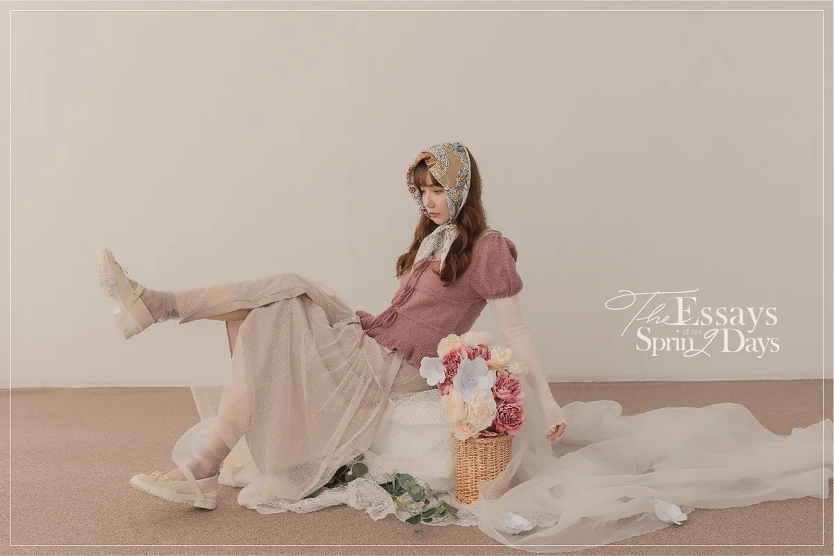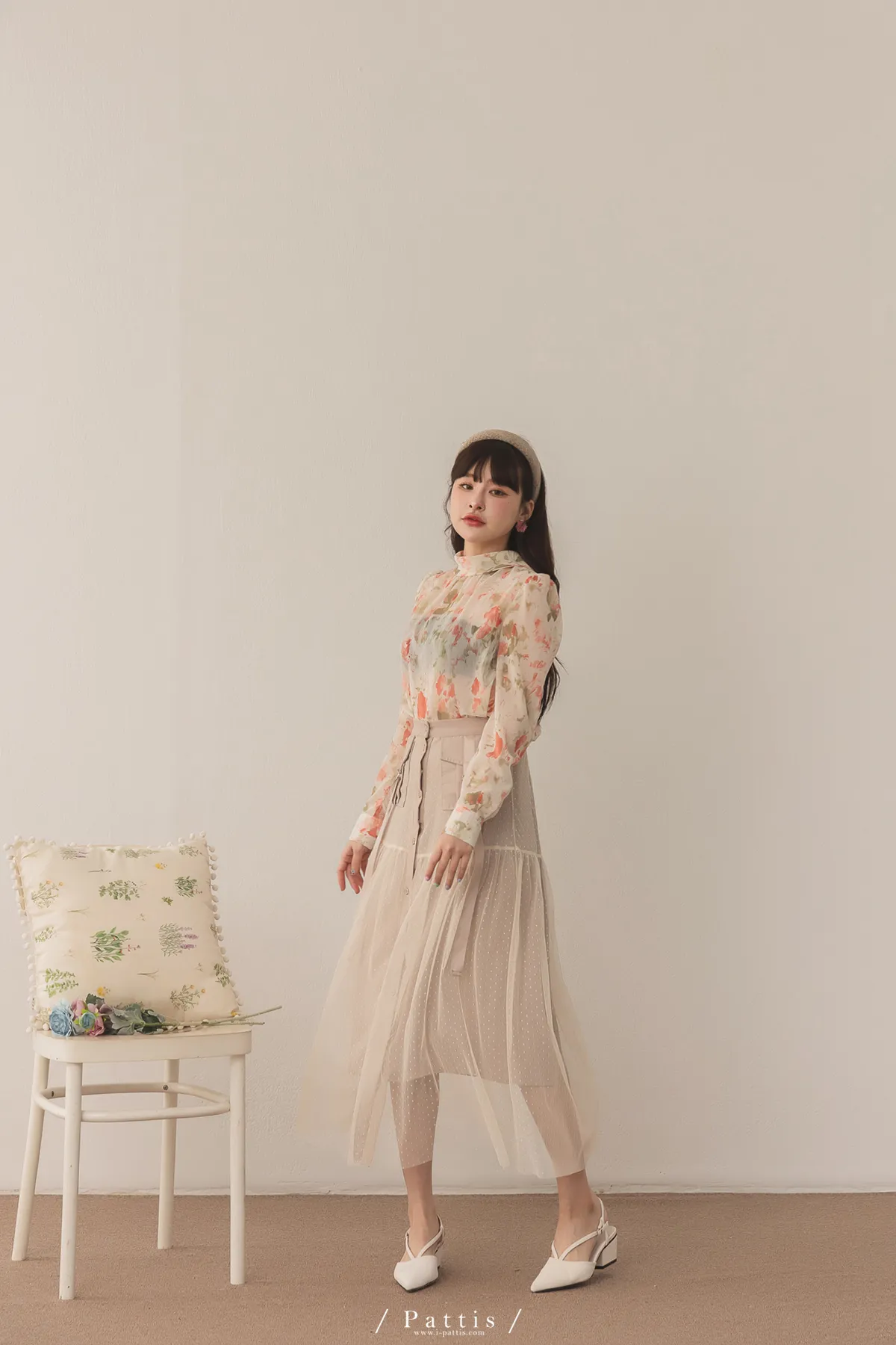 每段愛情都自帶濾鏡 | 繫帶雙層點點花扣2way網紗裙 (鹽沙奶杏)
