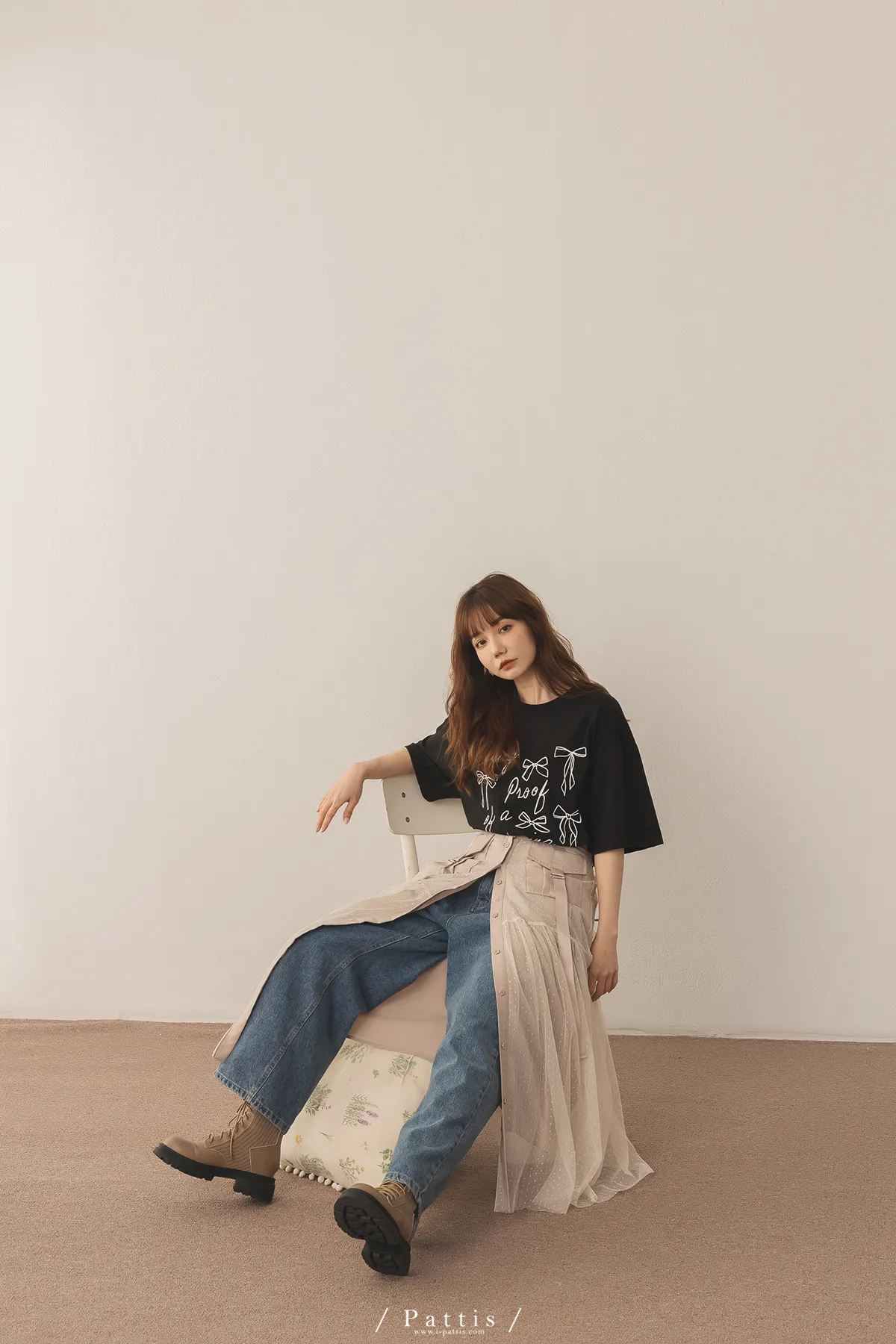 | F | 87 | 35-45(鬆緊) | 51 | 118 | 網紗+斜紋布 | X | 前鈕釦全開 | 有口袋 |