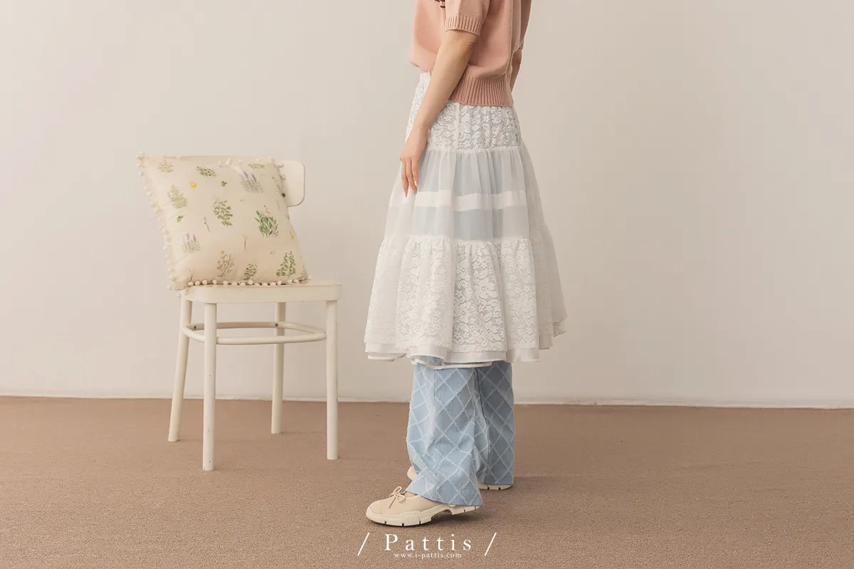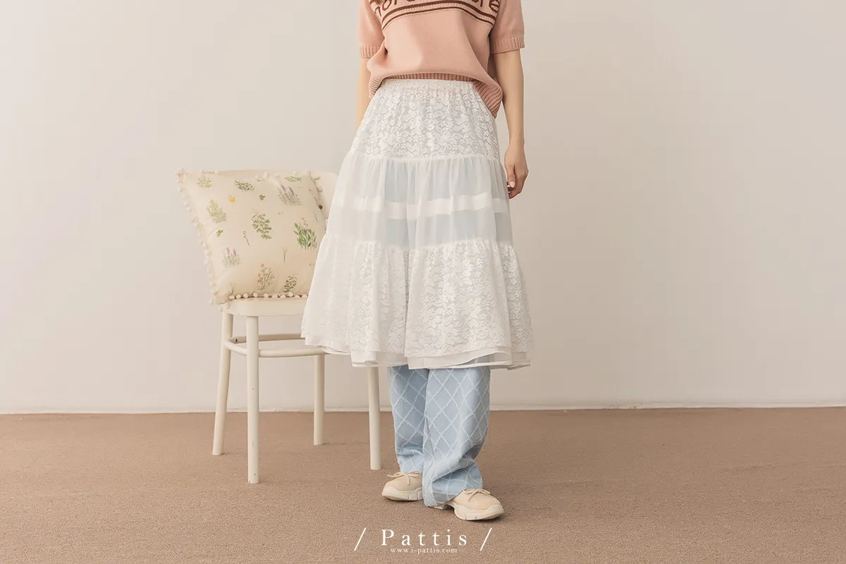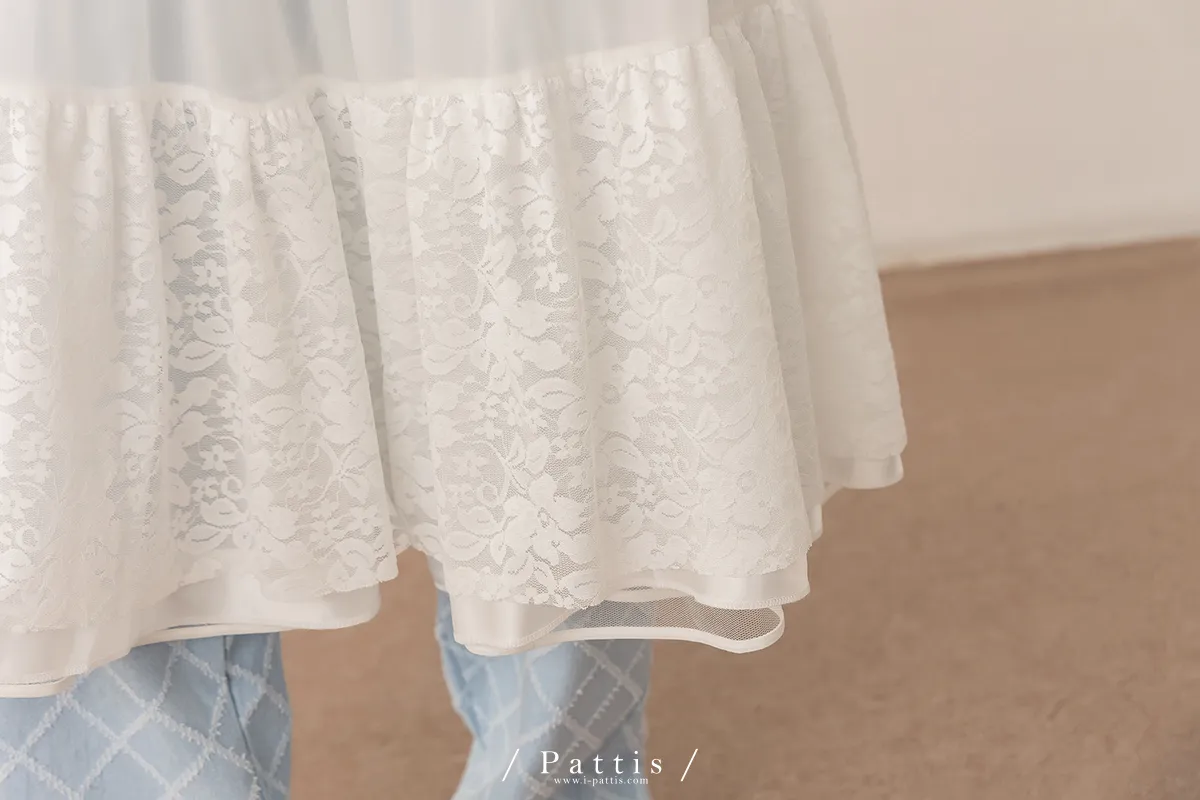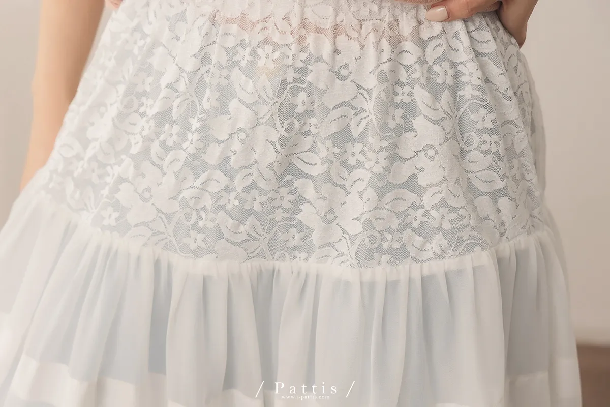(現貨) 無聲對白的小說 | 透肌蕾絲布拼接蛋糕罩裙(白)
