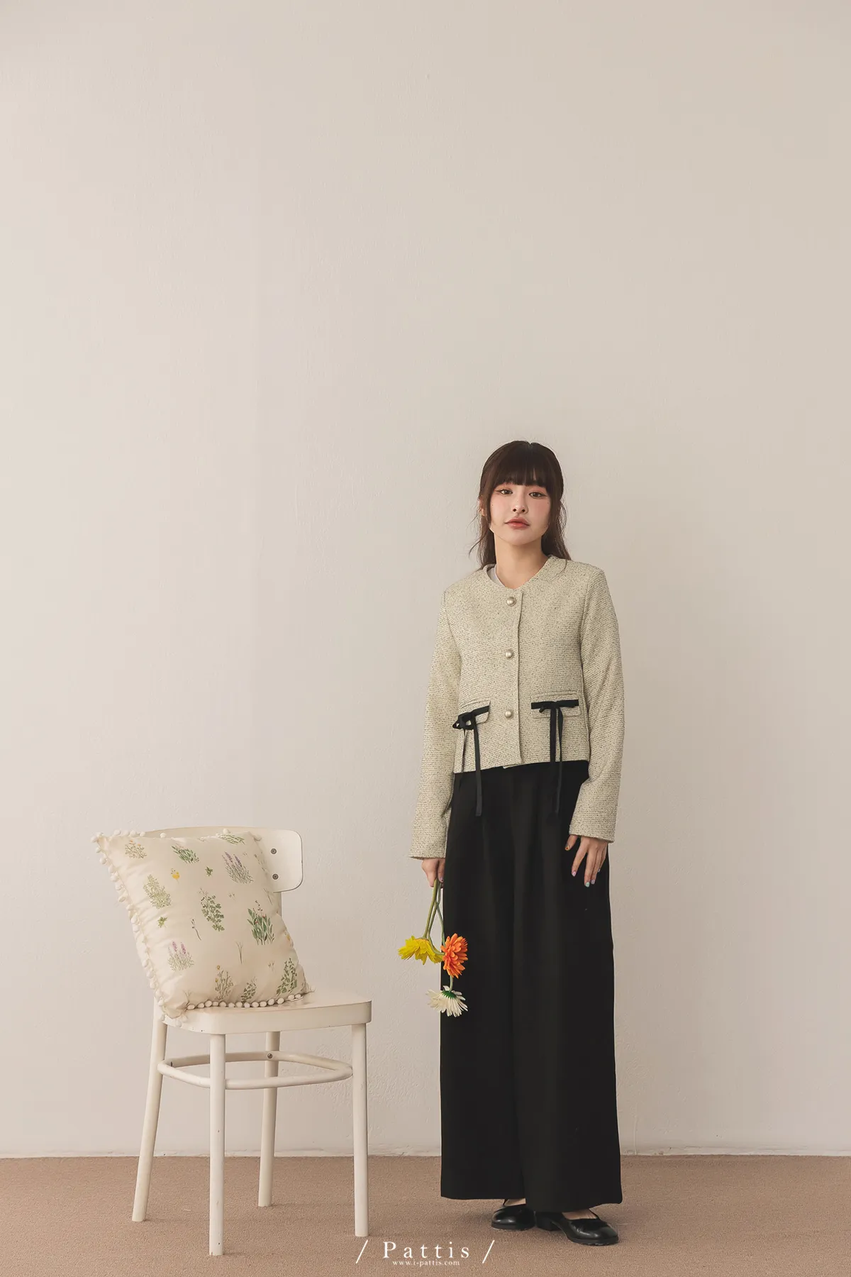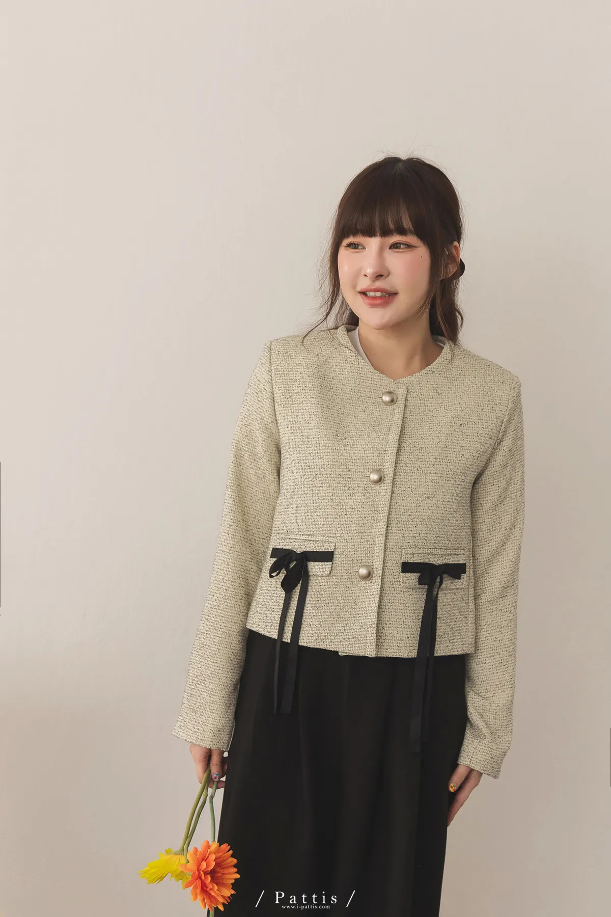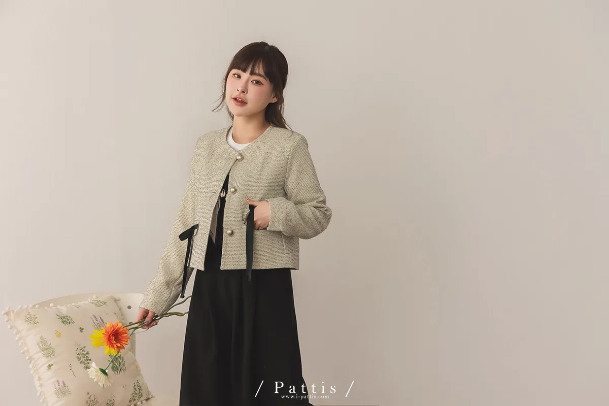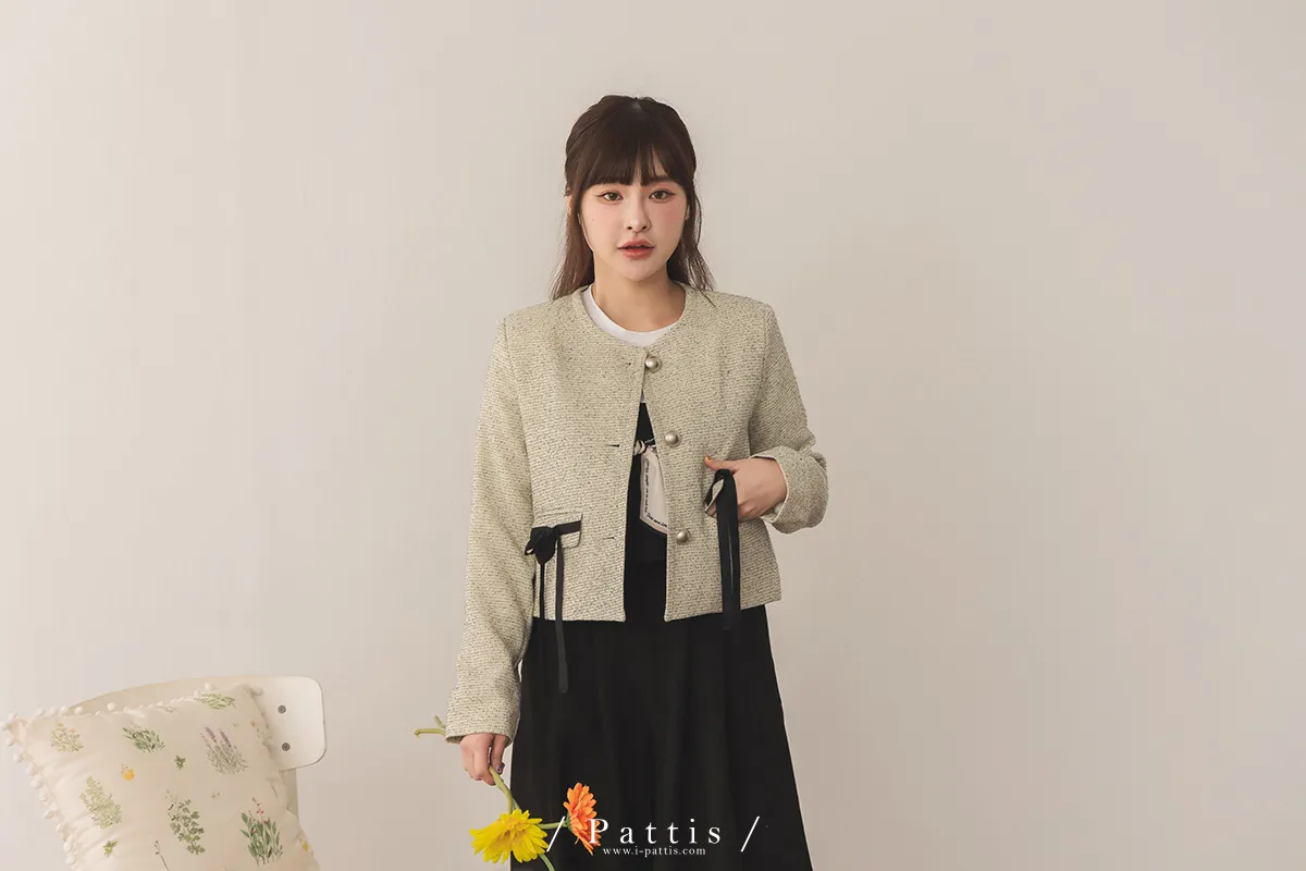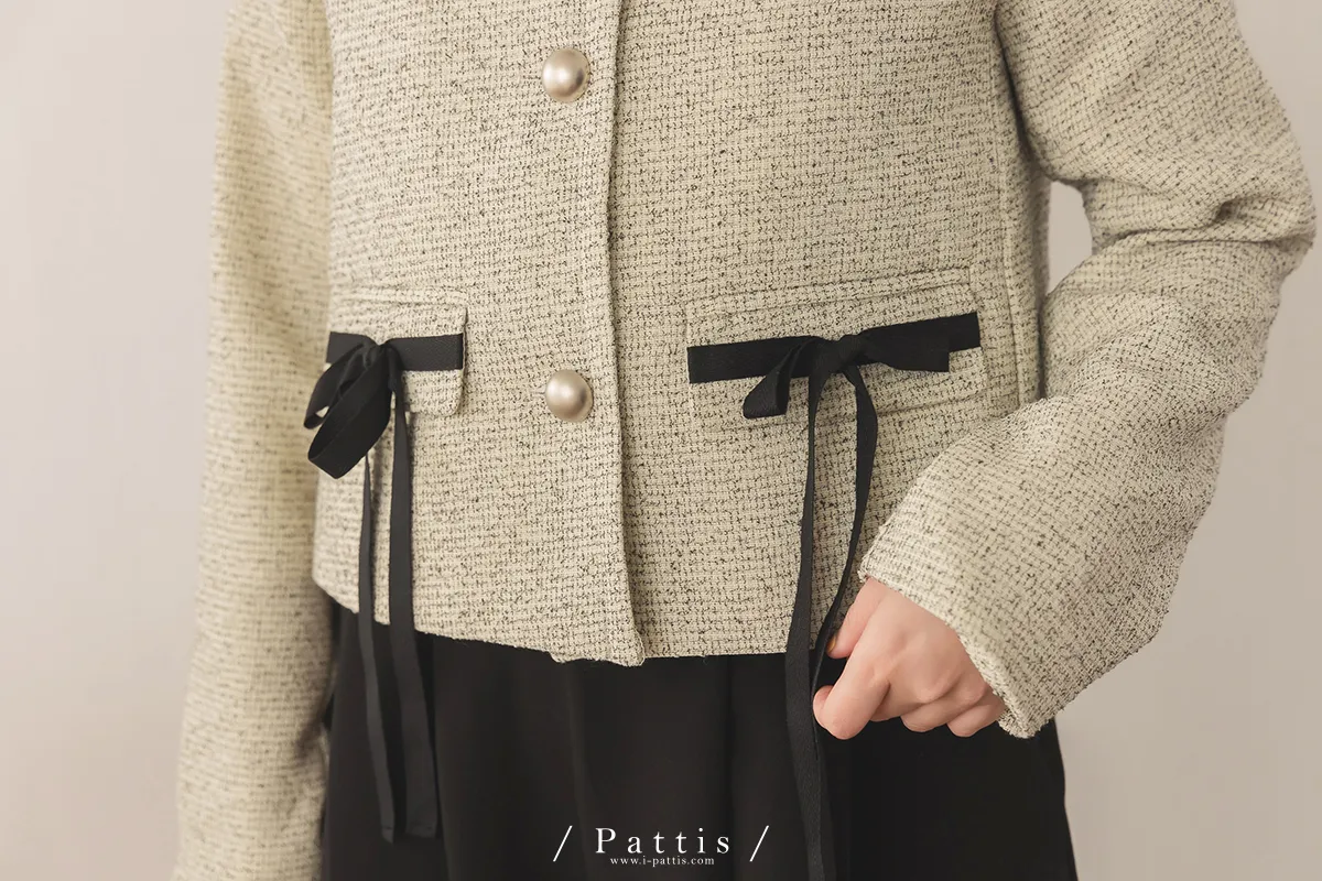 (現貨) 優雅全額占比 | 小香織紋蝴蝶結造型口袋外套(米)
