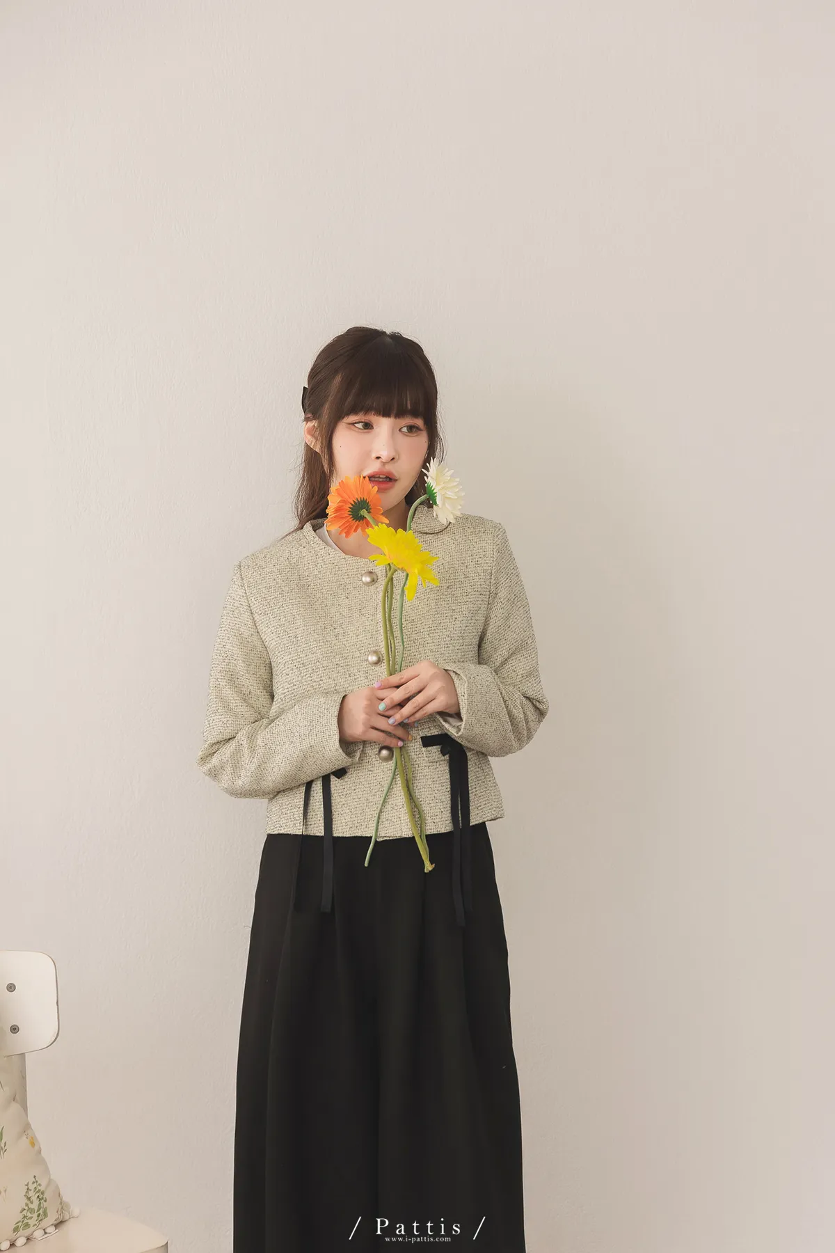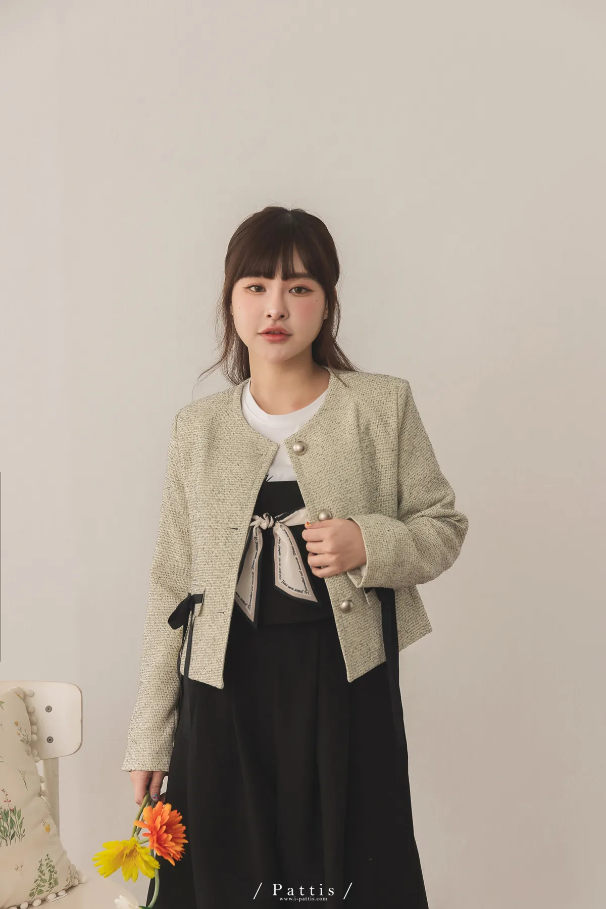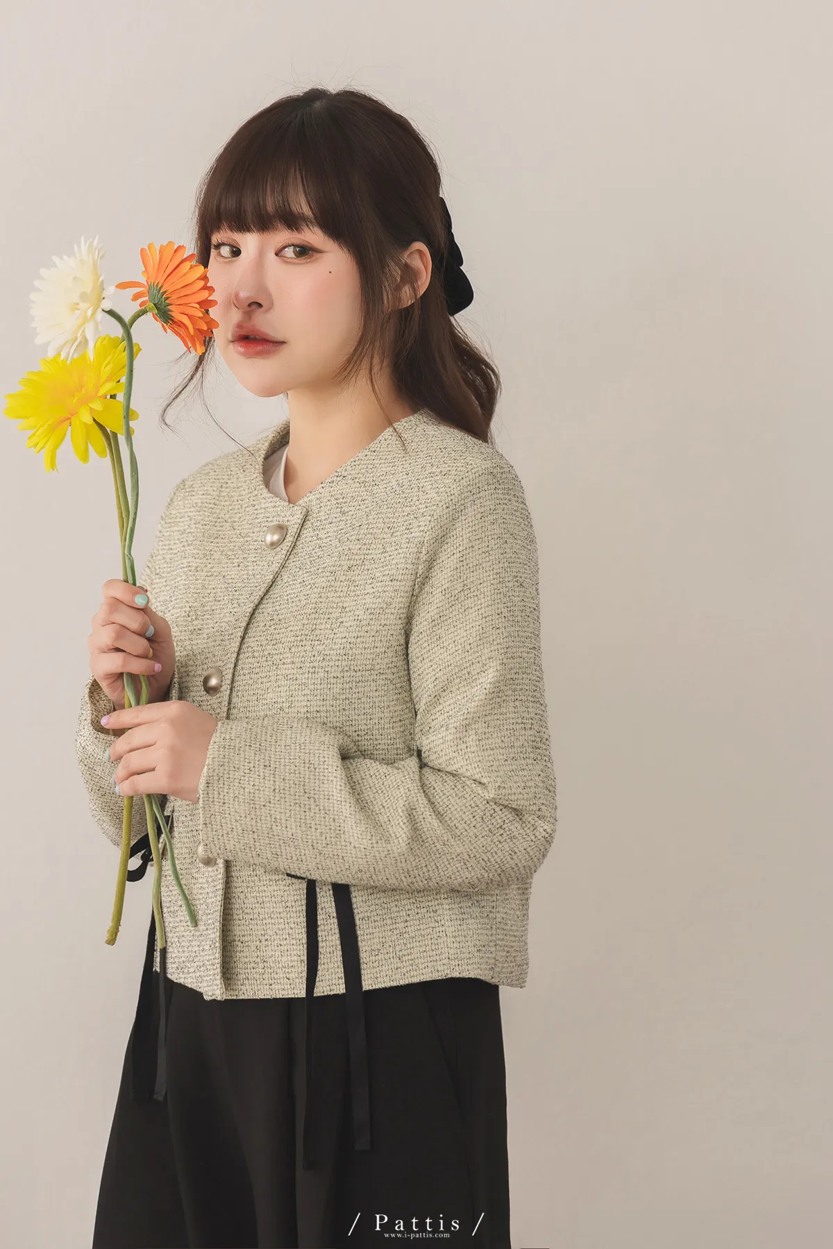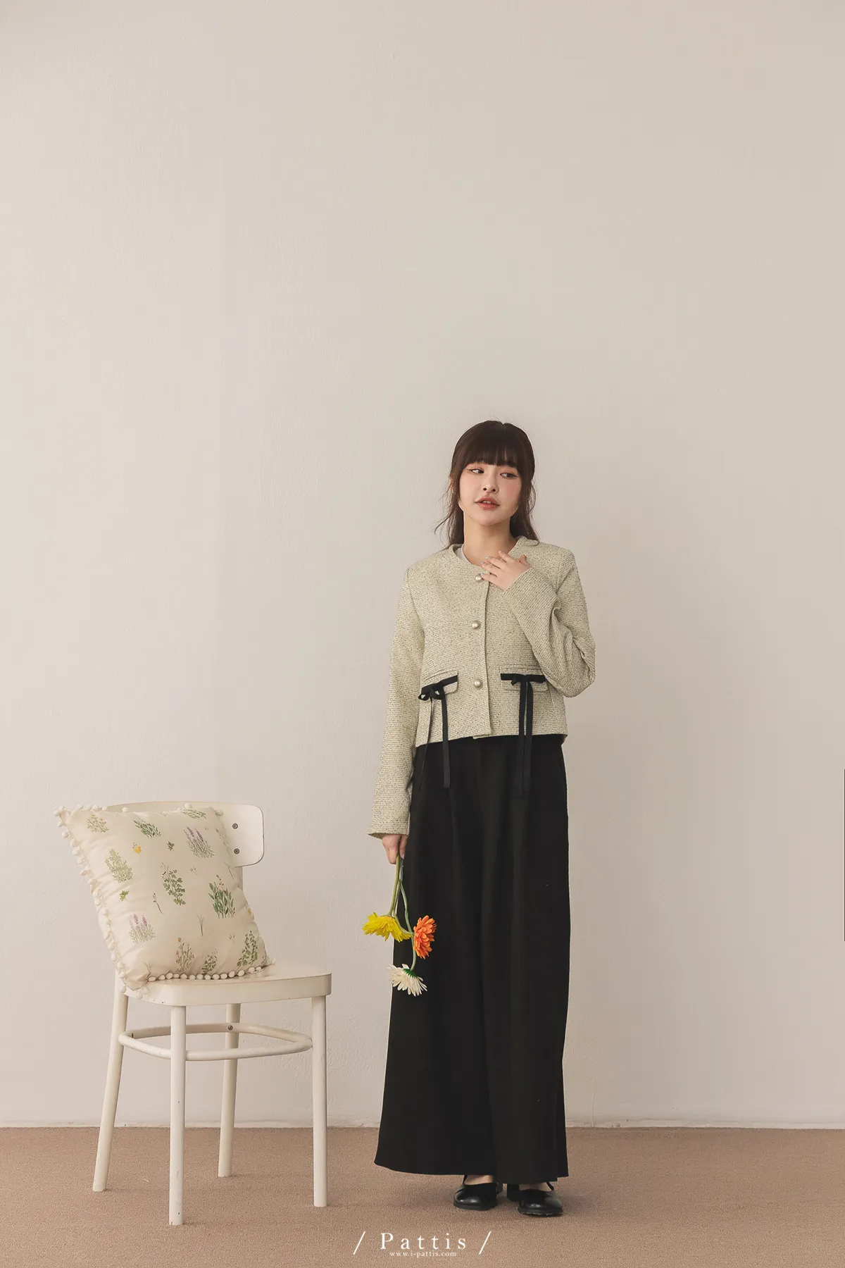 (現貨) 優雅全額占比 | 小香織紋蝴蝶結造型口袋外套(米)