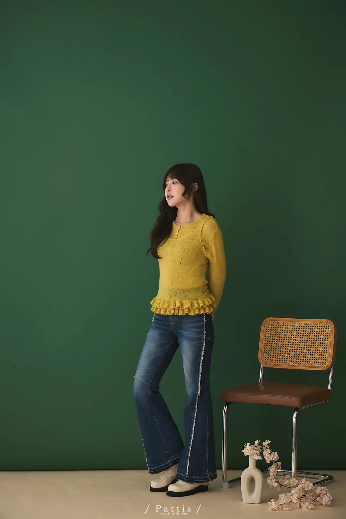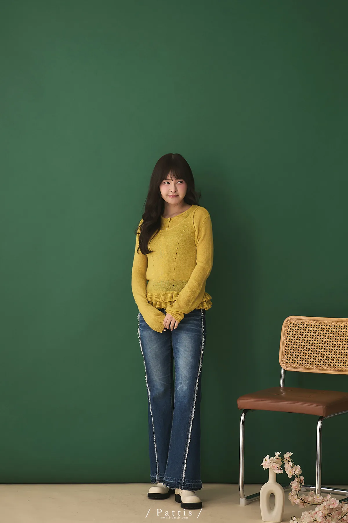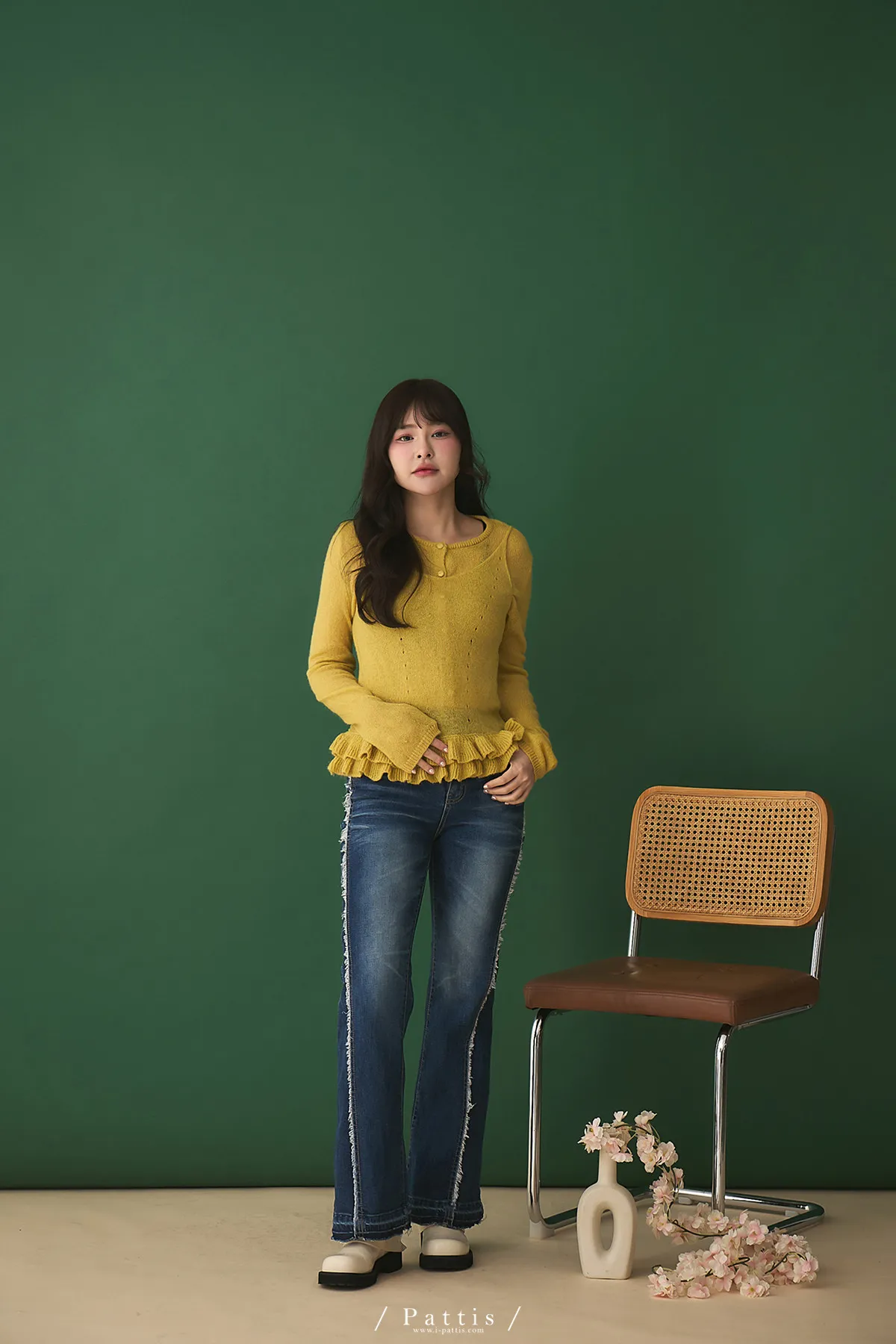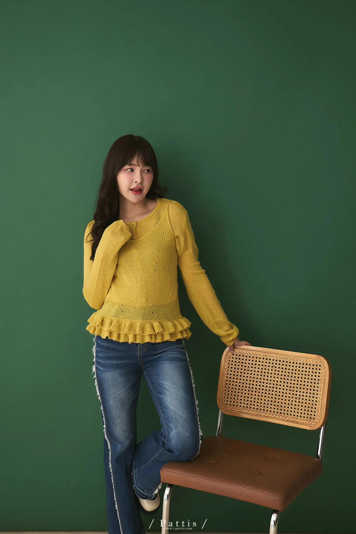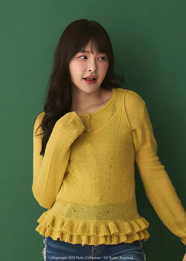 春日限定調色盤 | 2way花瓣荷葉背心+針織罩衫set組(銘黃)