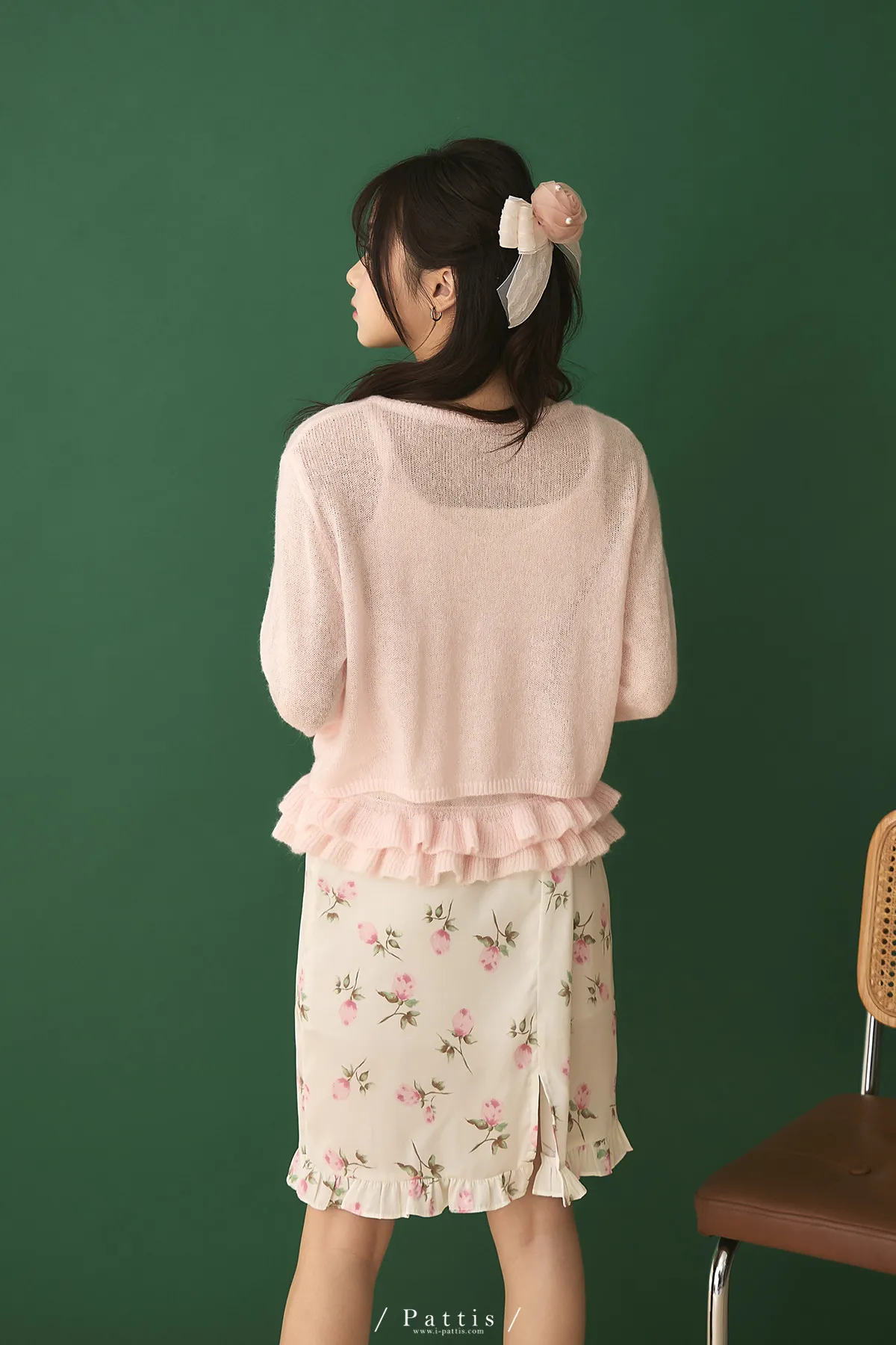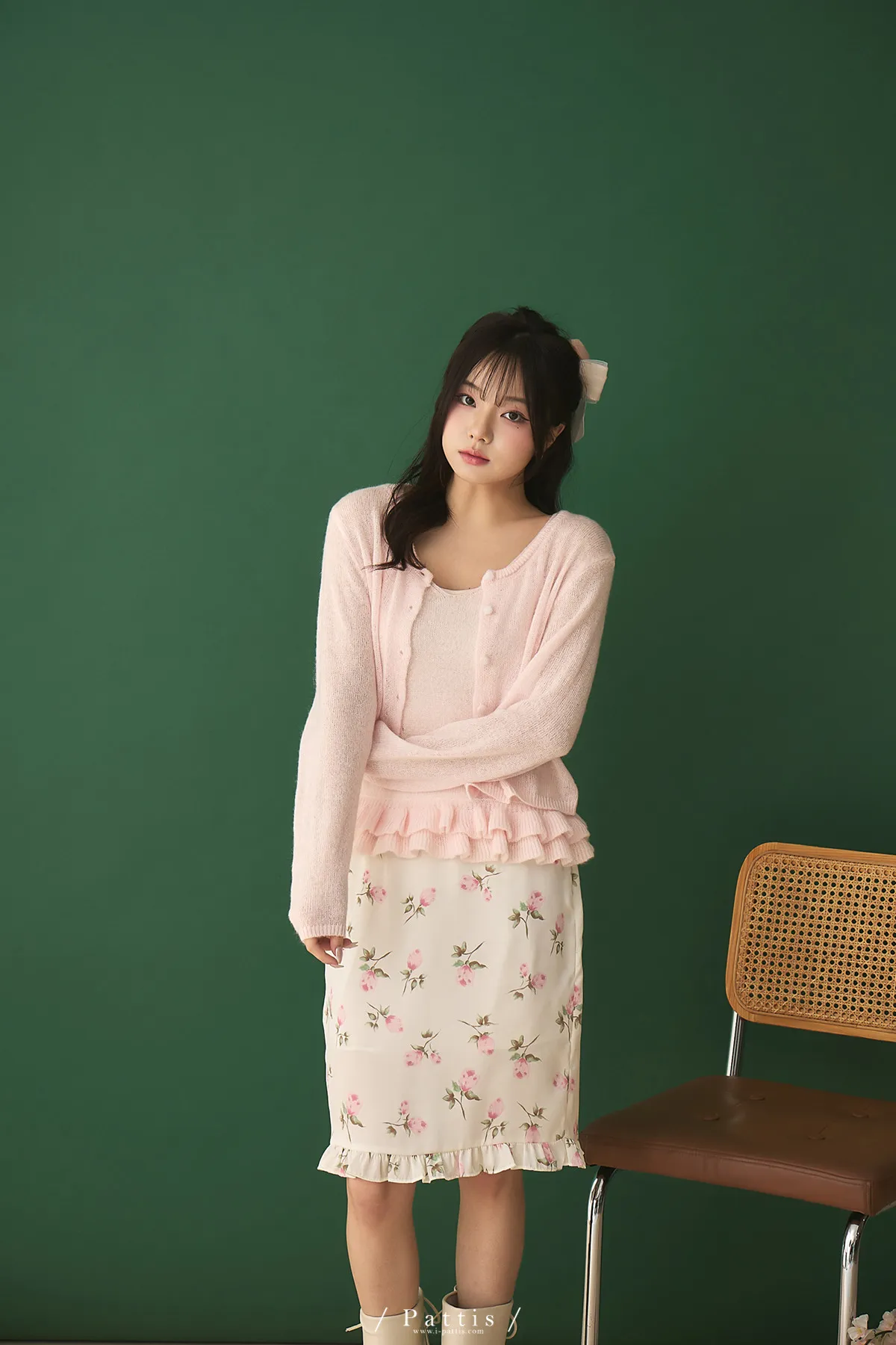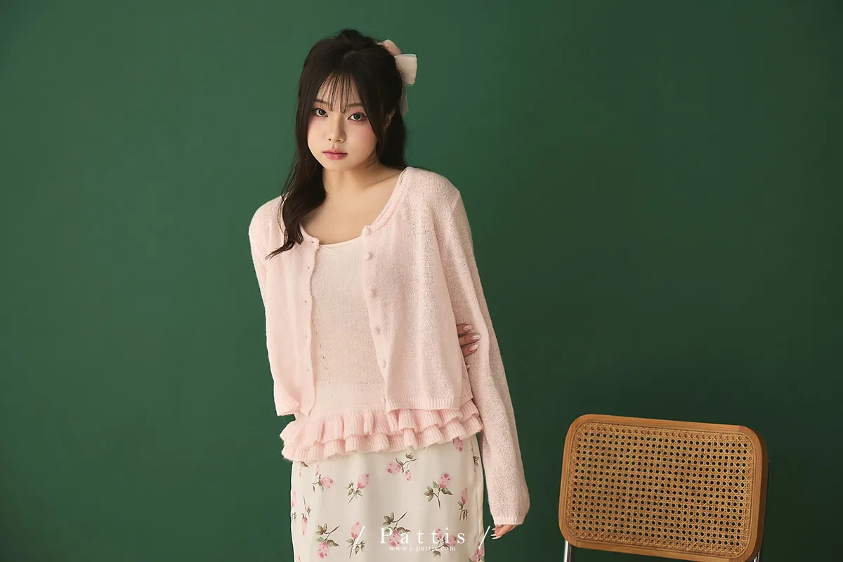 春日限定調色盤 | 2way花瓣荷葉背心+針織罩衫set組(淡粉)