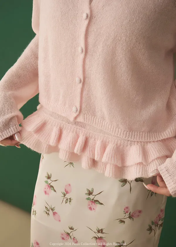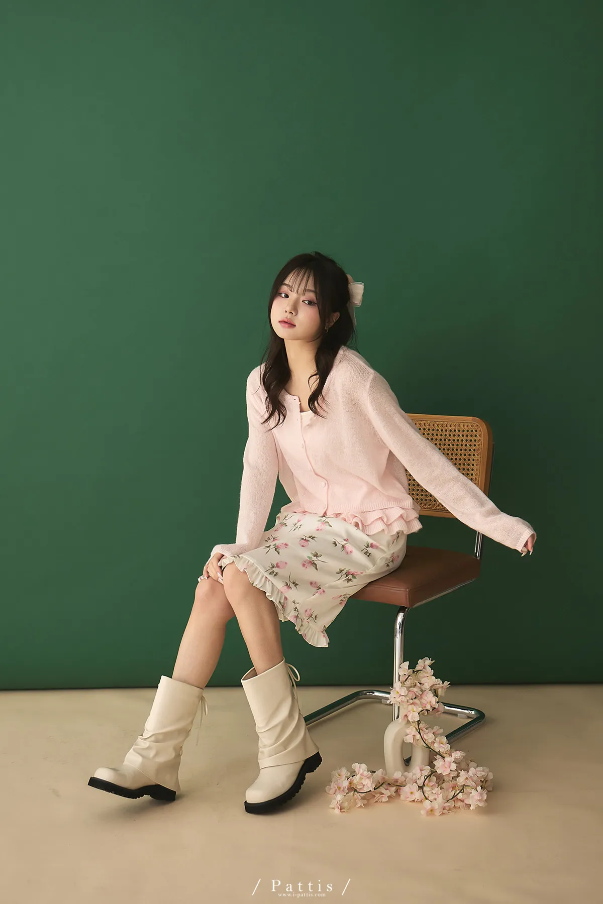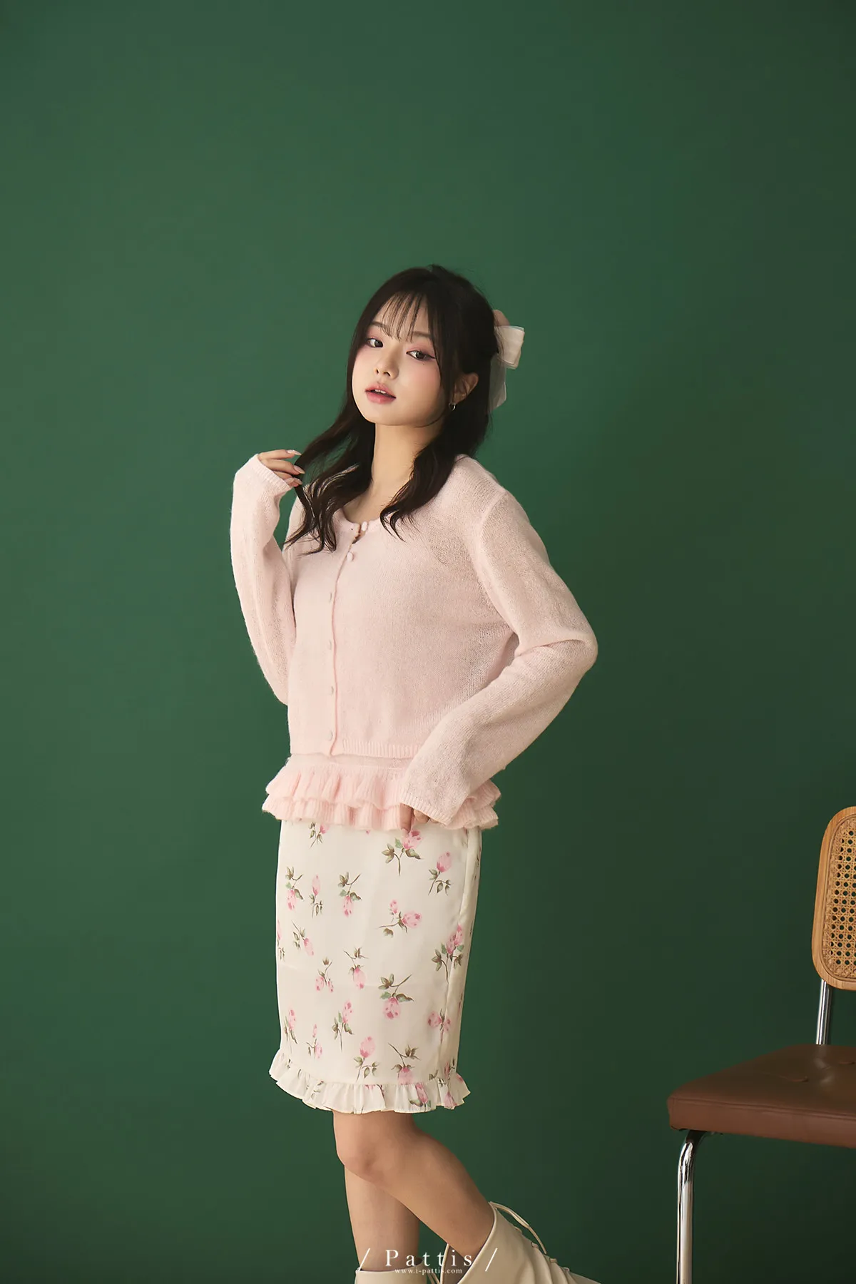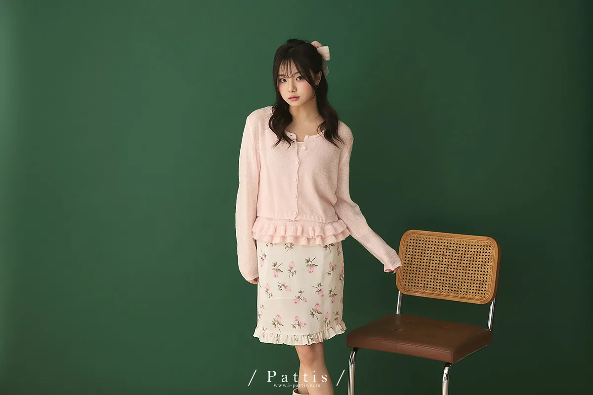 春日限定調色盤 | 2way花瓣荷葉背心+針織罩衫set組(淡粉)