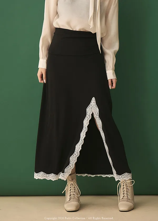 拒絕墨守成規 | 綴蕾絲側開叉2way長裙平口洋裝(單一色)