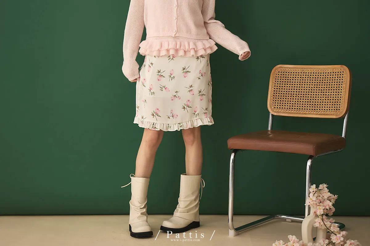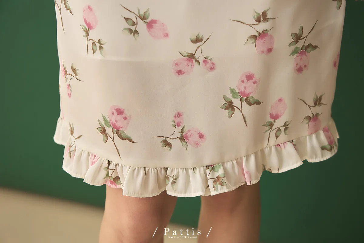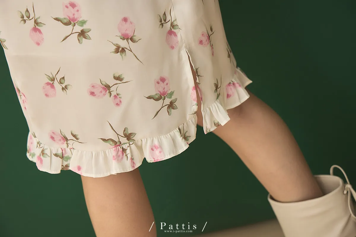 莫內花園手札 | 小玫瑰印花荷葉短裙(米白)