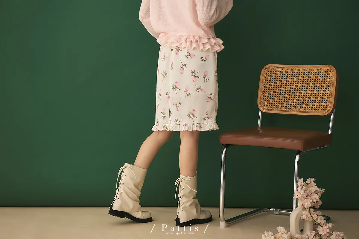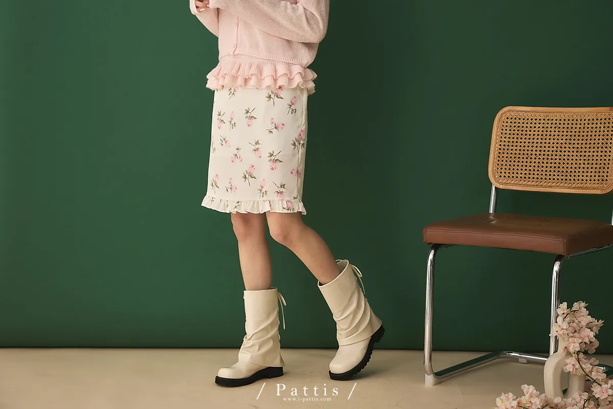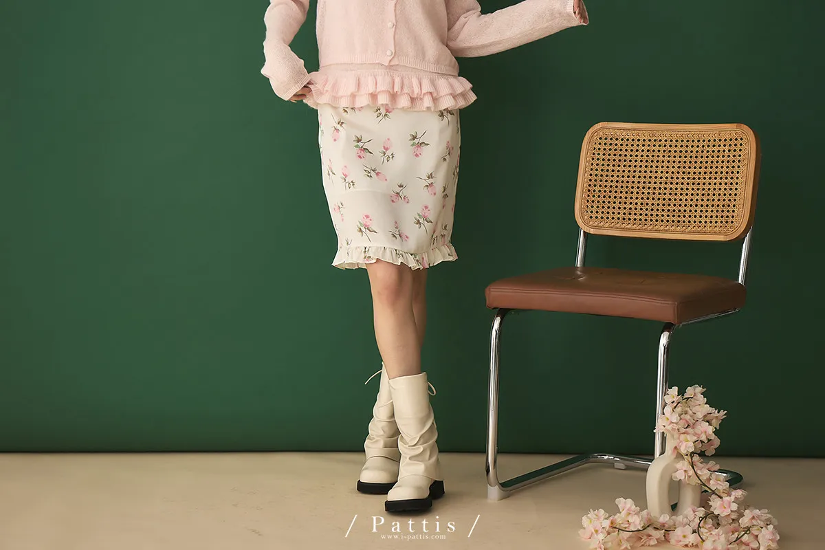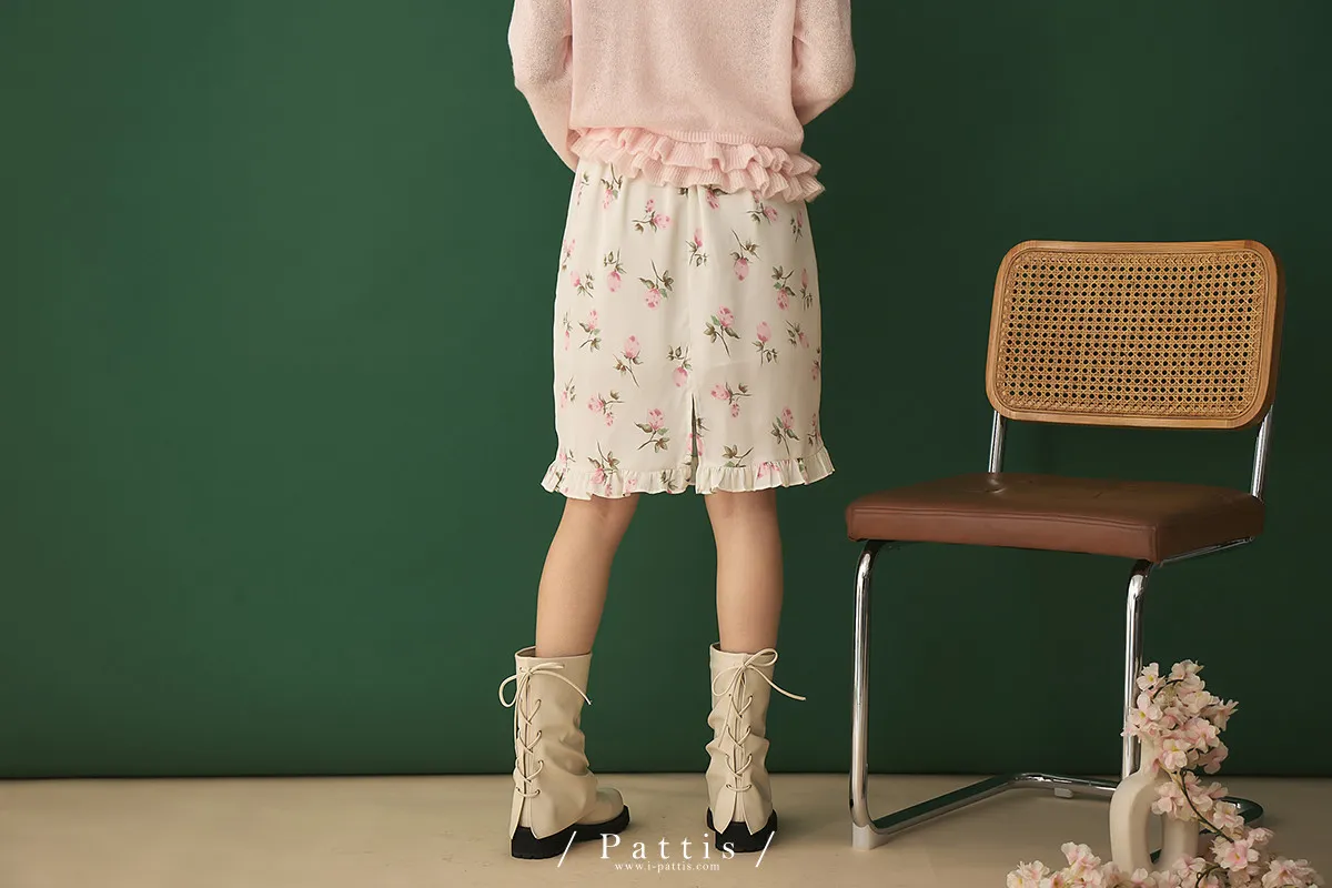 莫內花園手札 | 小玫瑰印花荷葉短裙(米白)