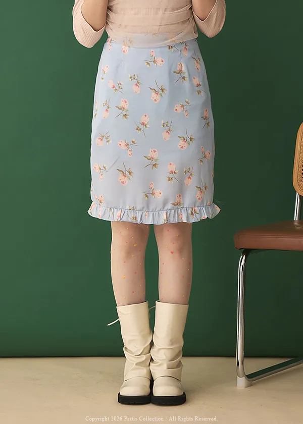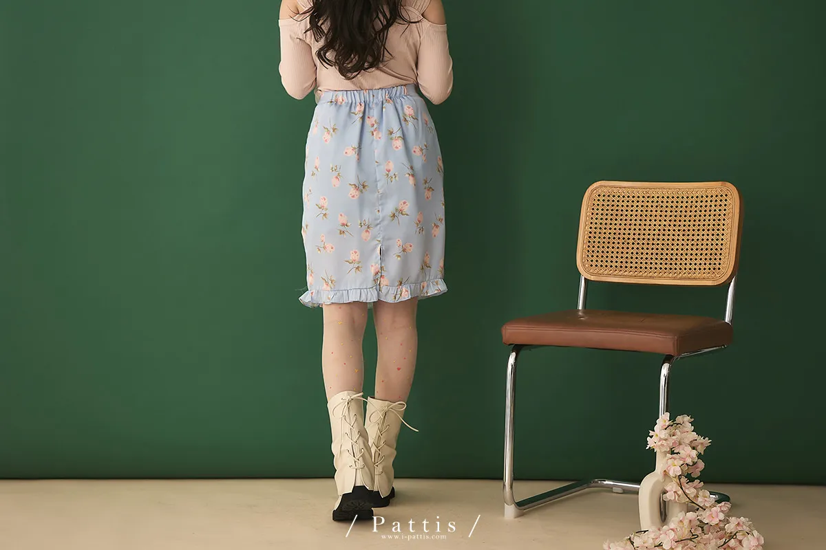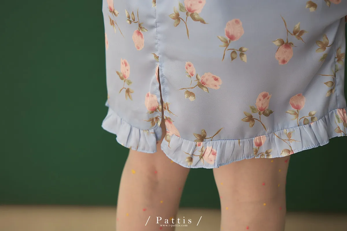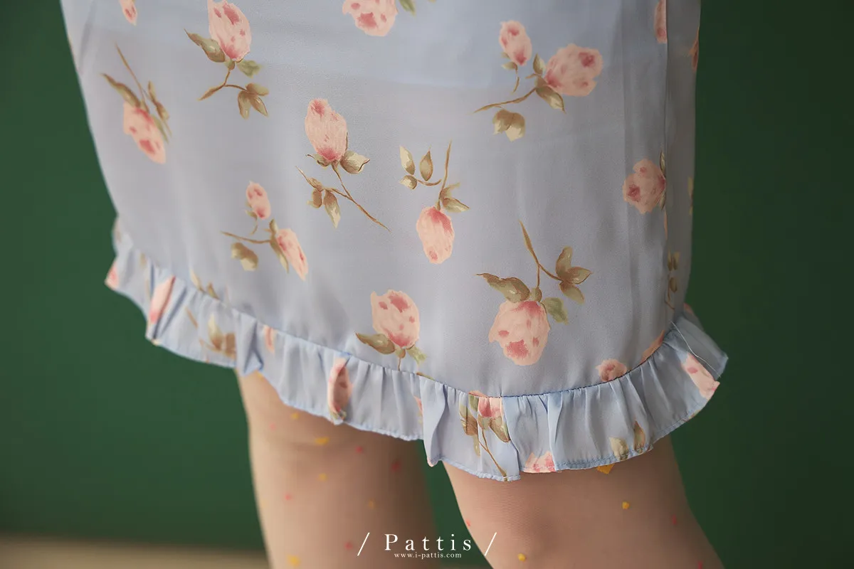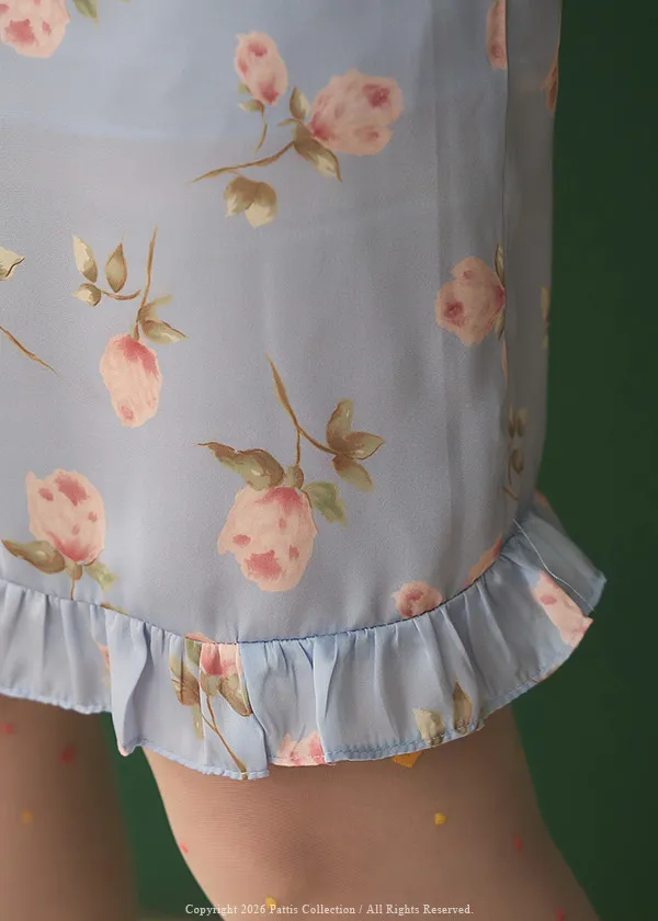 莫內花園手札 | 小玫瑰印花荷葉短裙(淺藍)