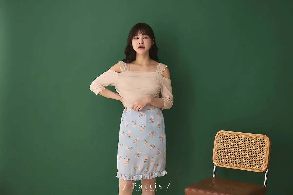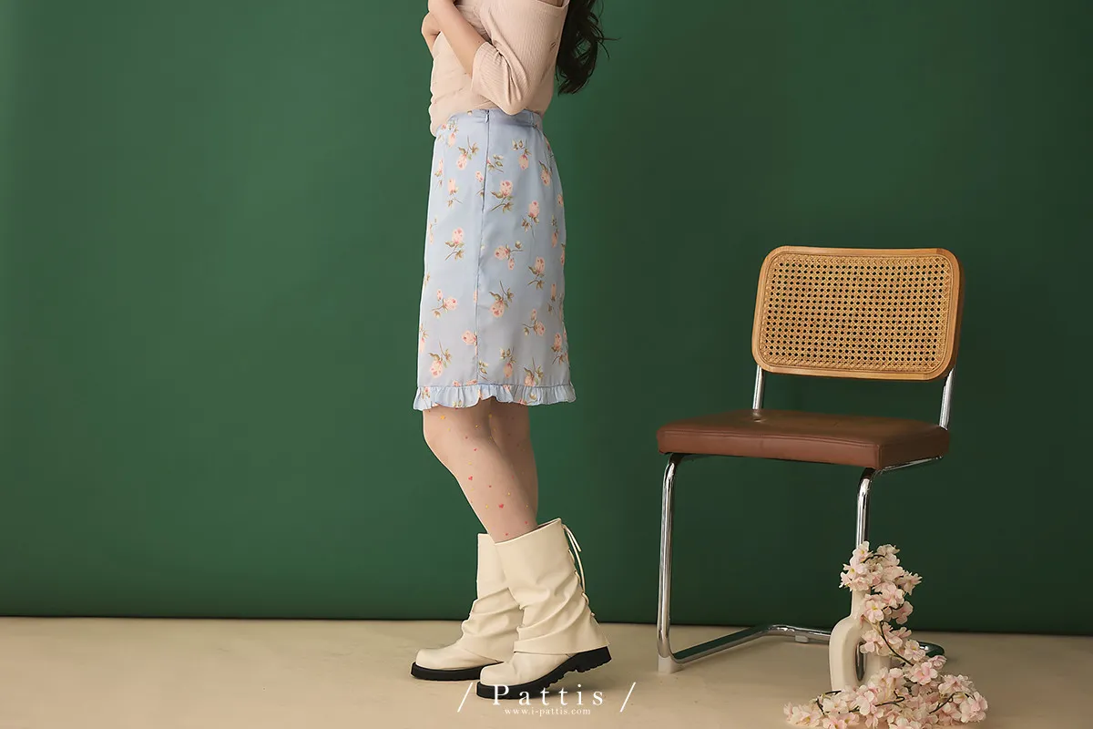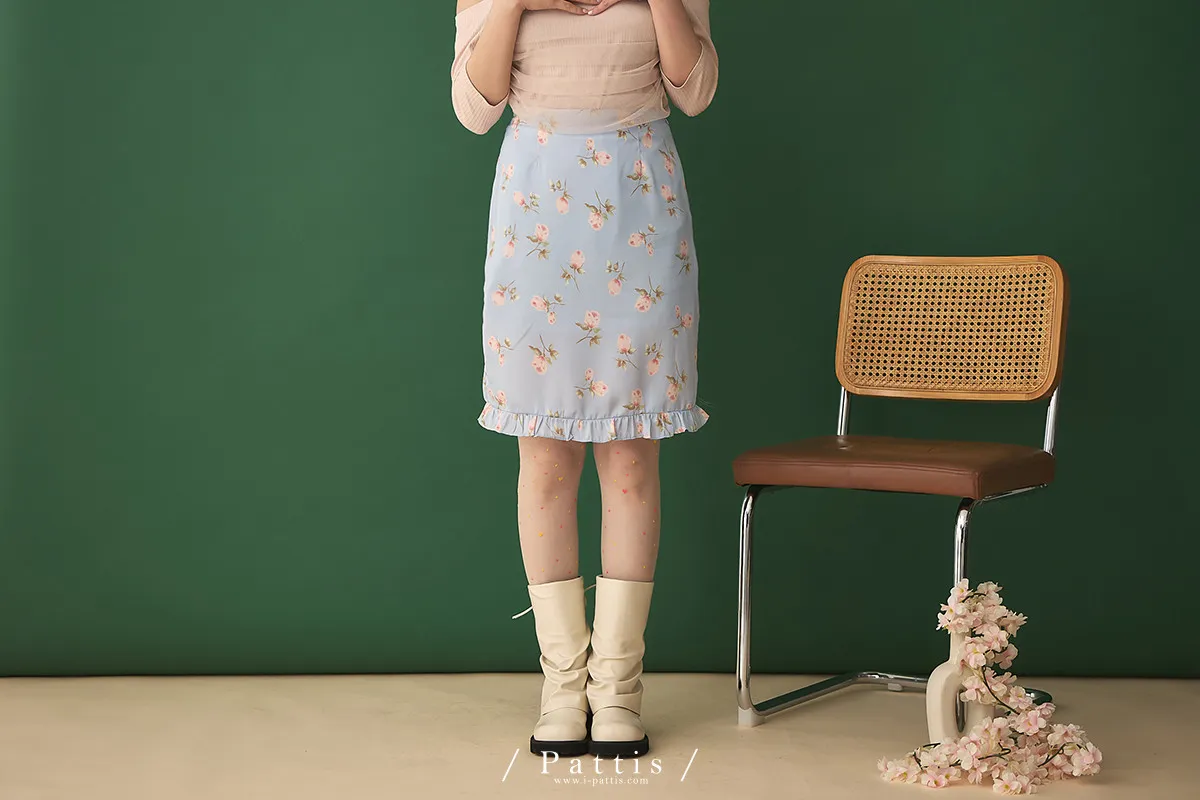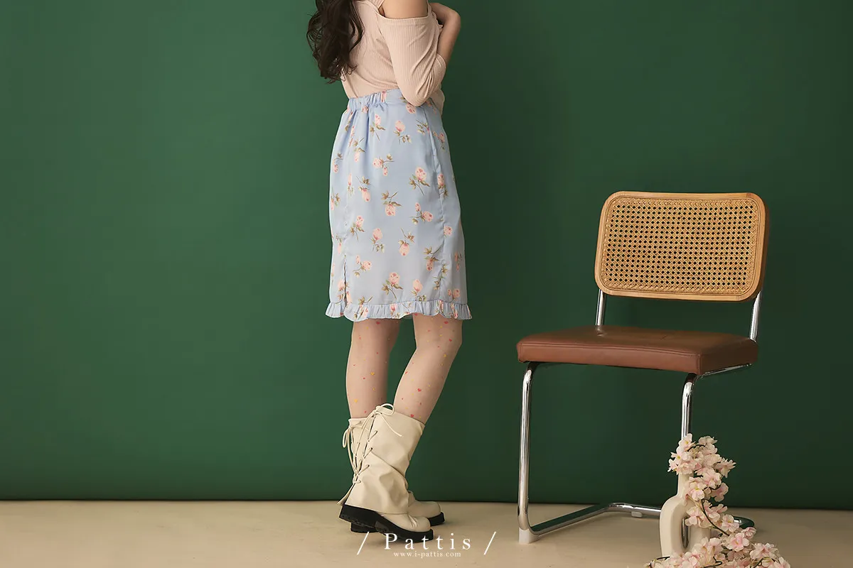 莫內花園手札 | 小玫瑰印花荷葉短裙(淺藍)