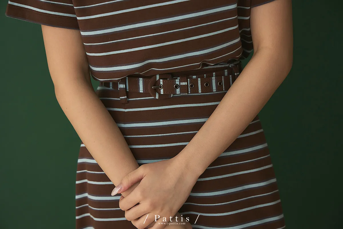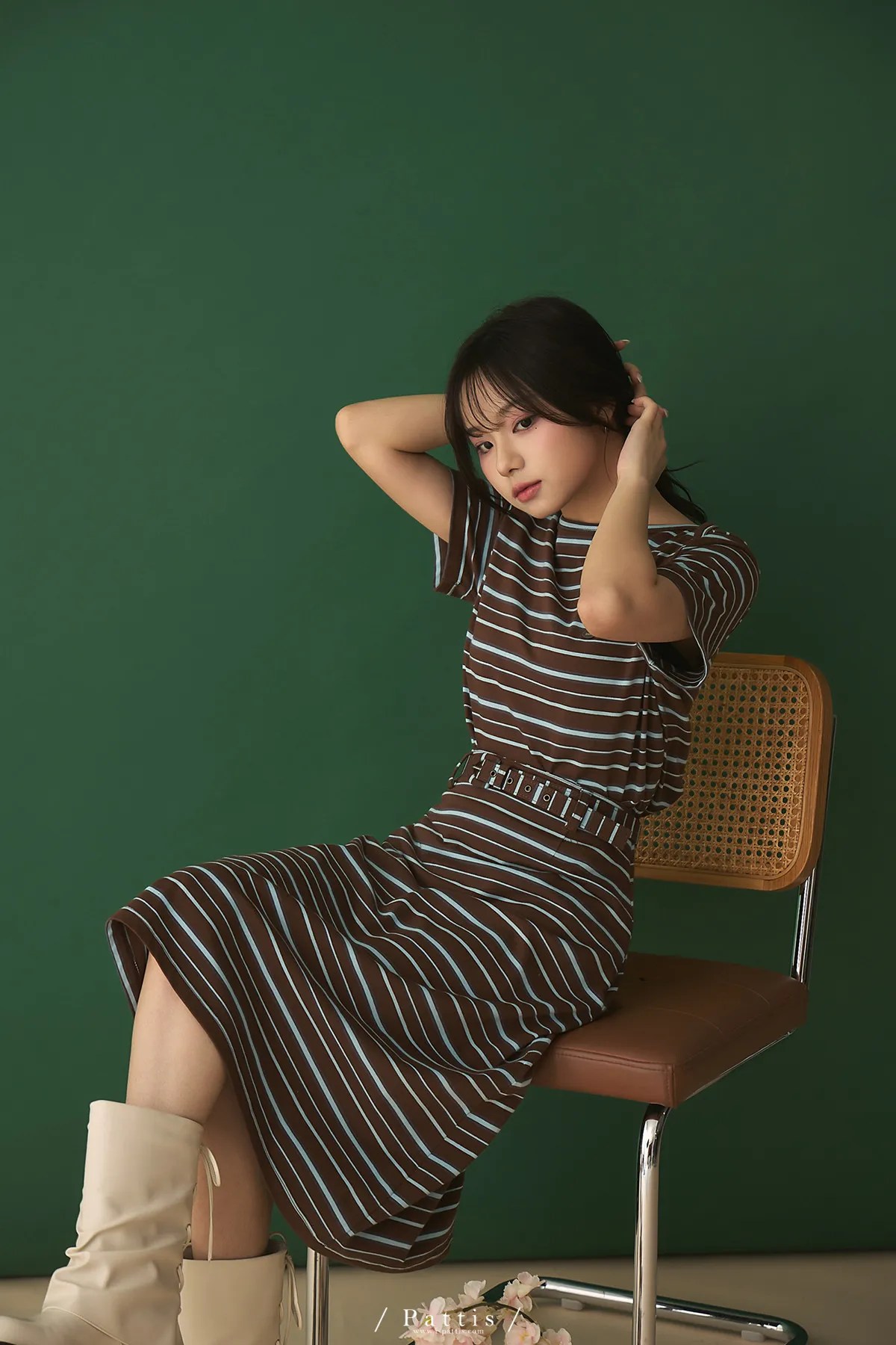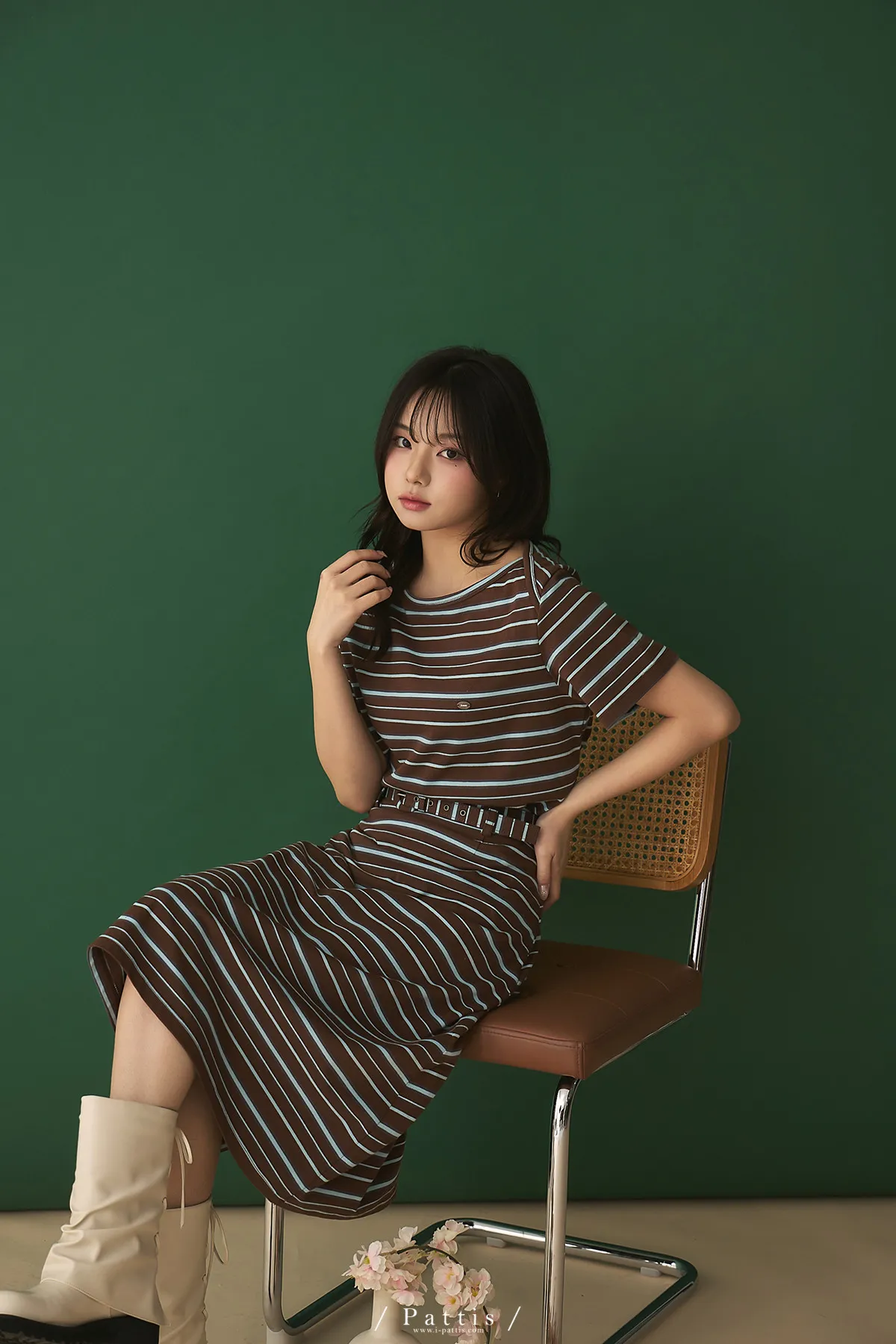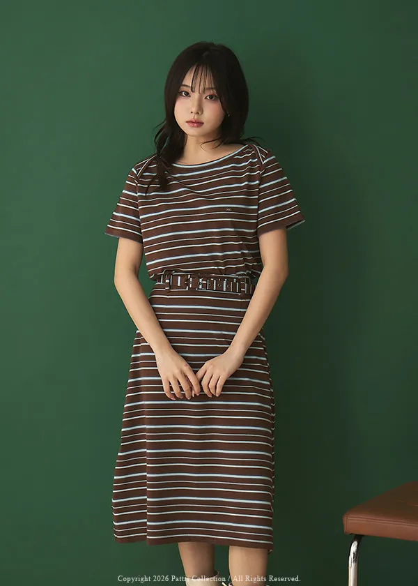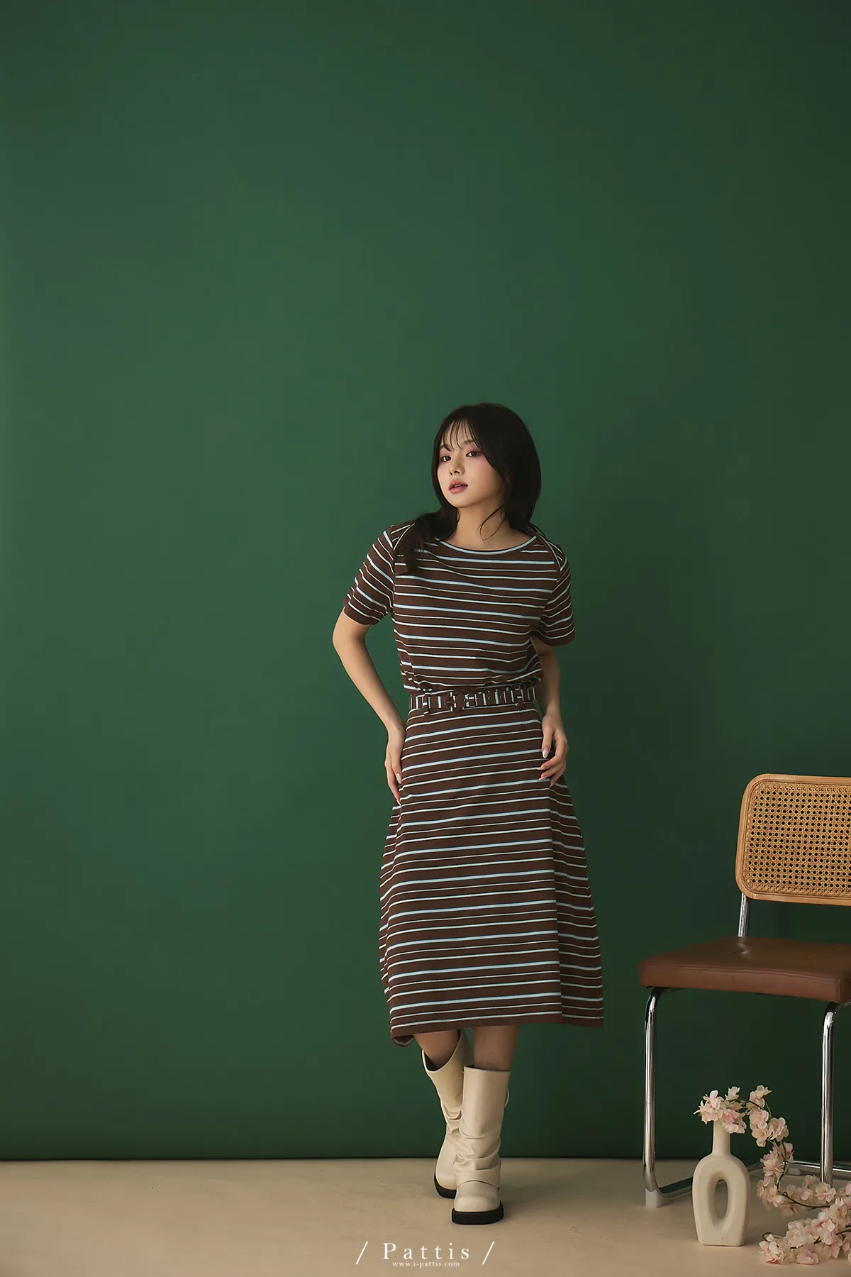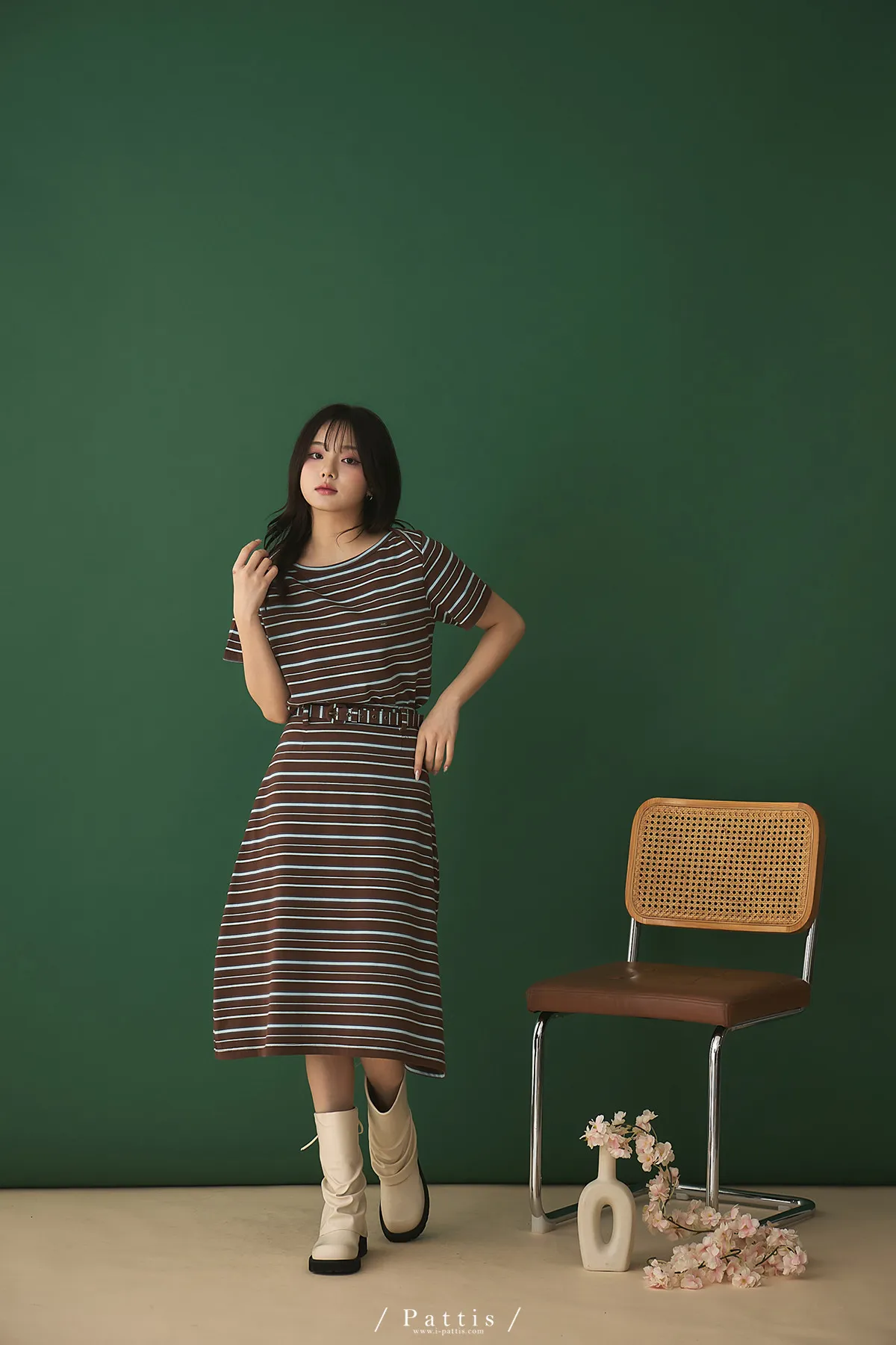馬術比賽冠軍 | (可分售)圓領條紋上衣+附腰帶簡約傘裙(單一色)