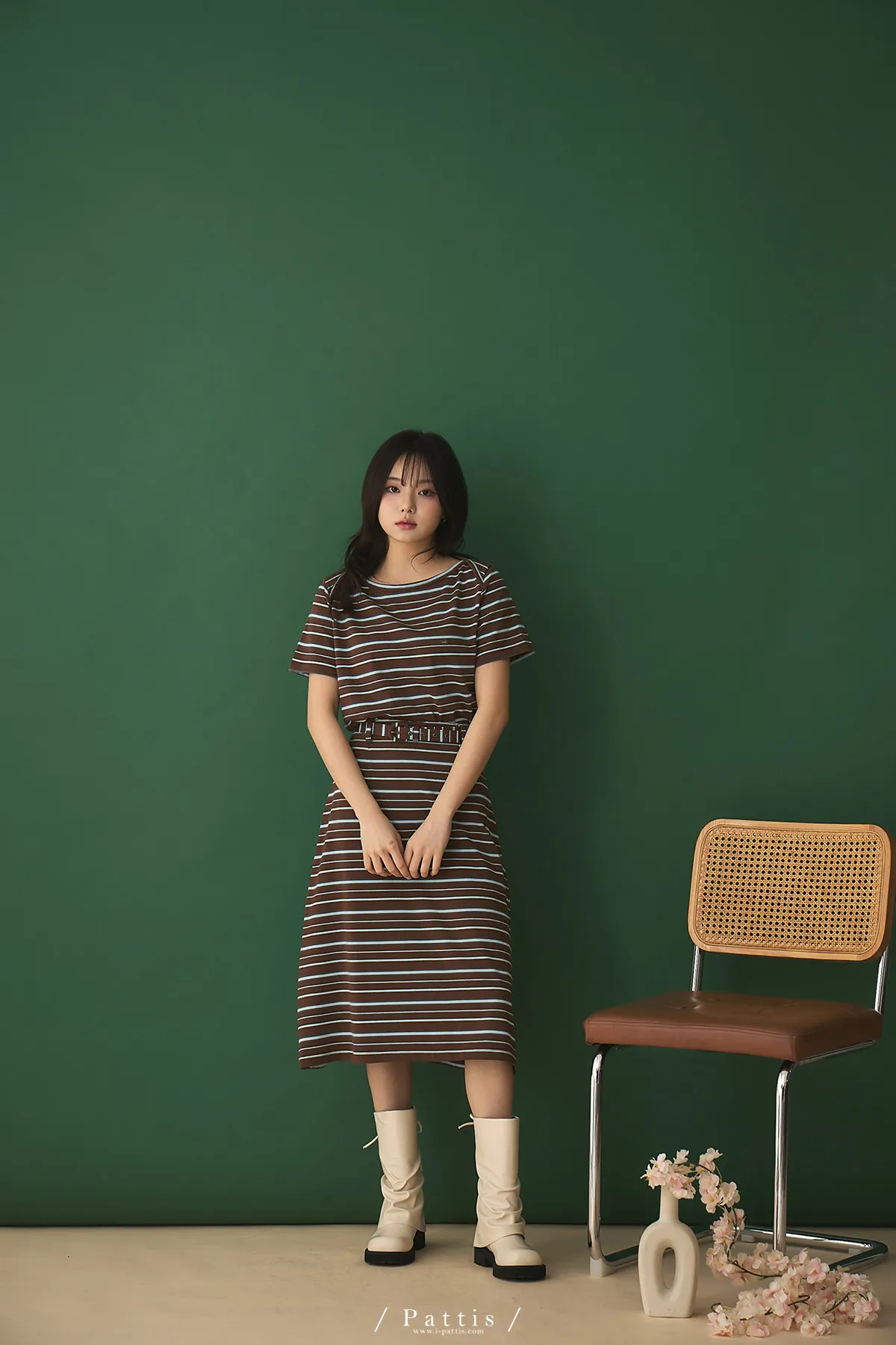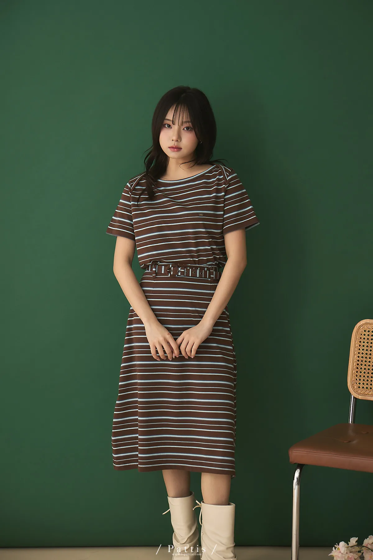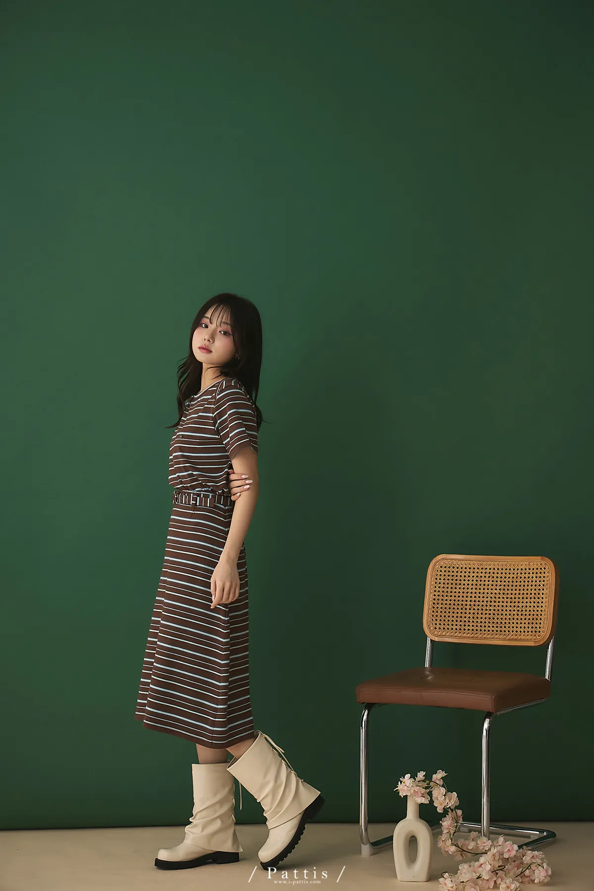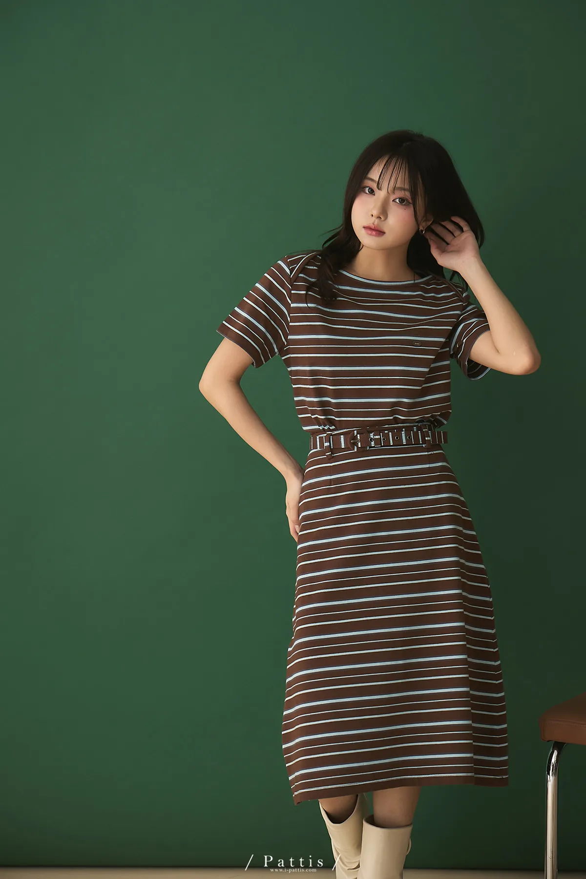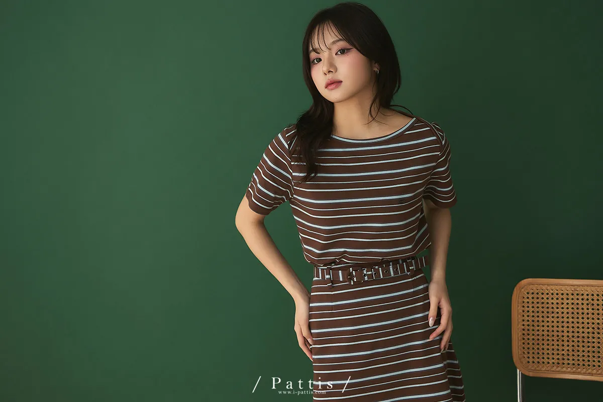 馬術比賽冠軍 | (可分售)圓領條紋上衣+附腰帶簡約傘裙(單一色)