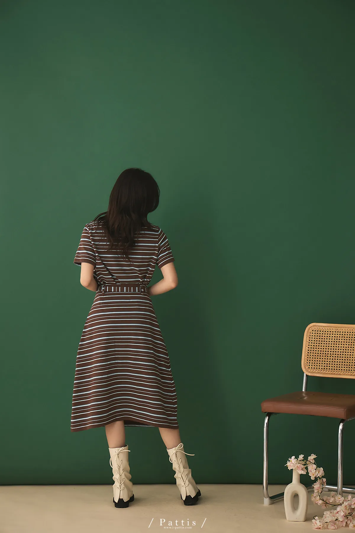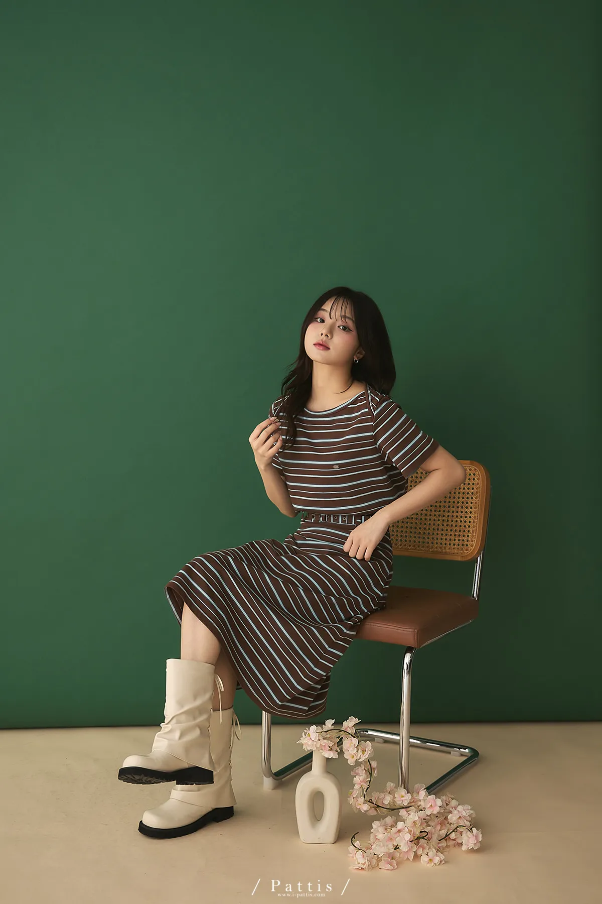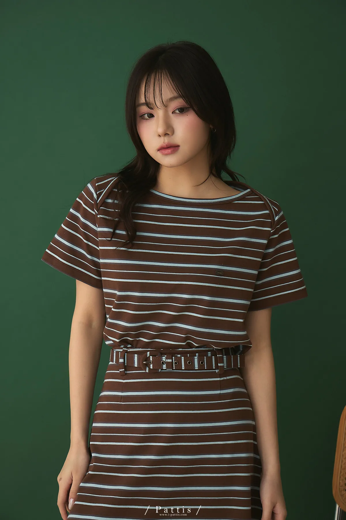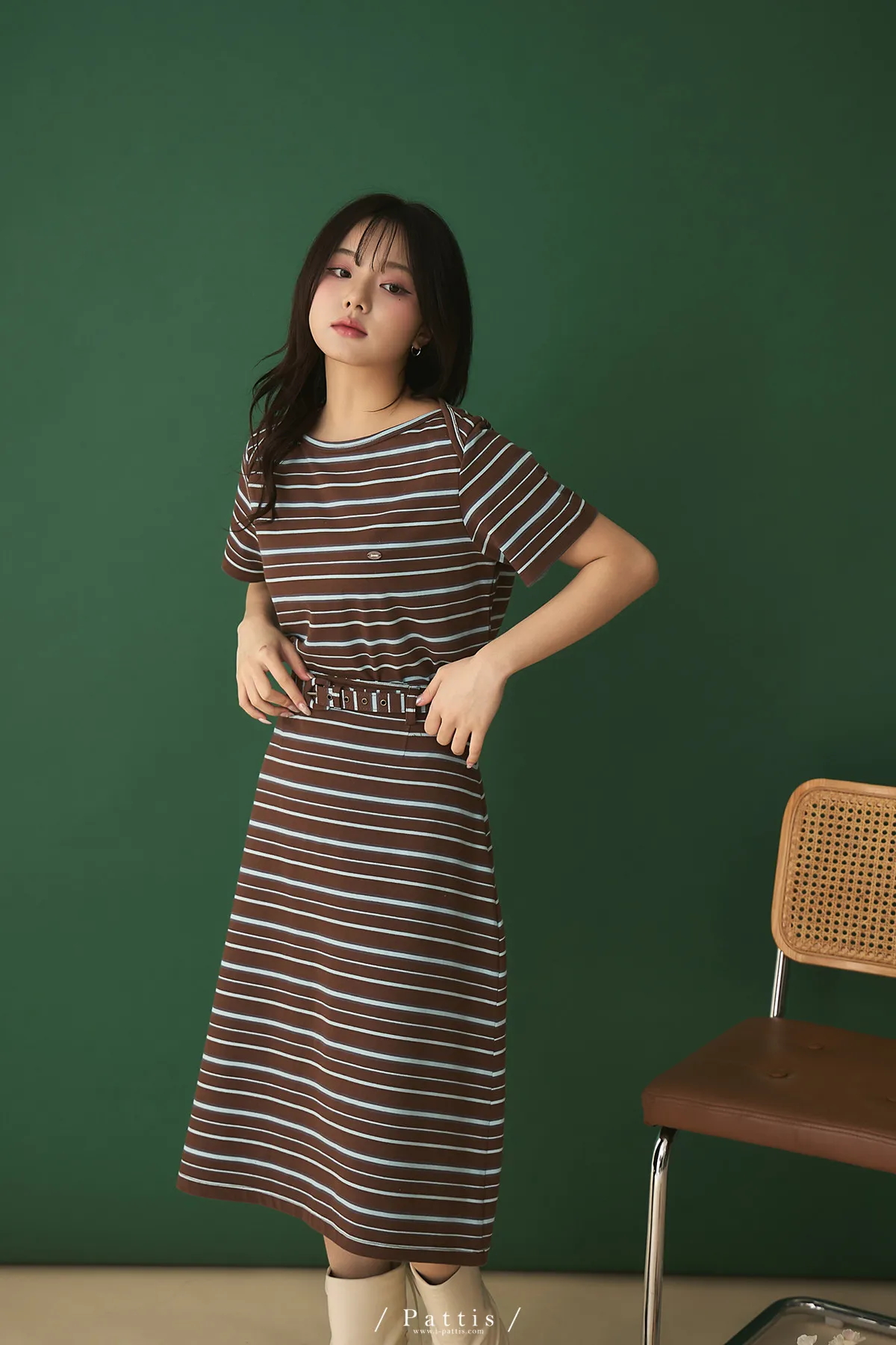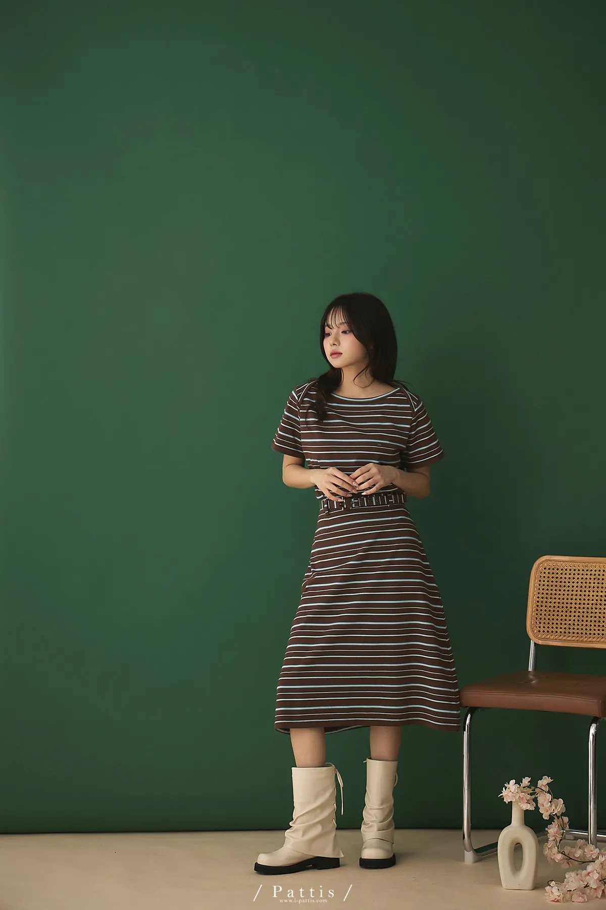 馬術比賽冠軍 | (可分售)圓領條紋上衣+附腰帶簡約傘裙(單一色)