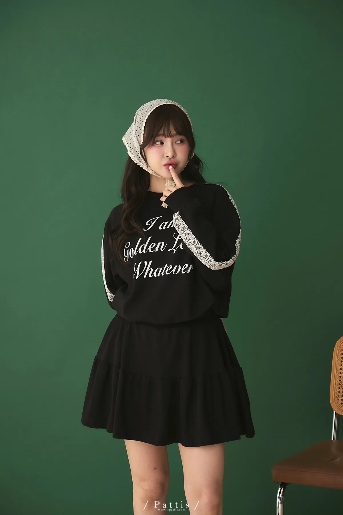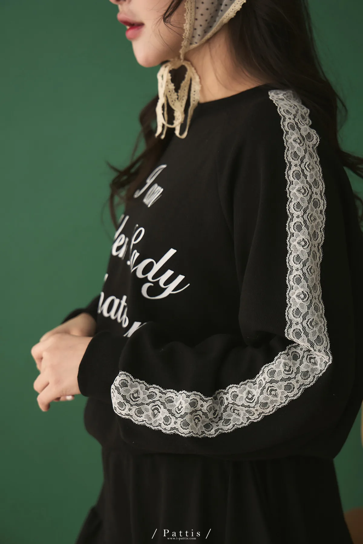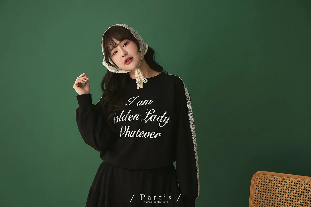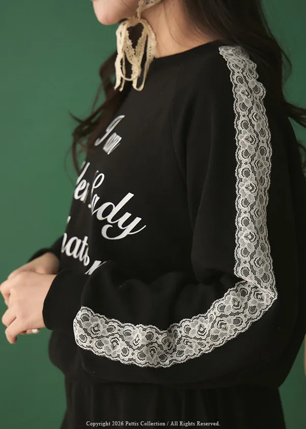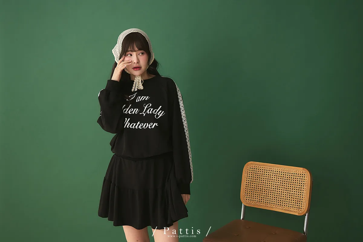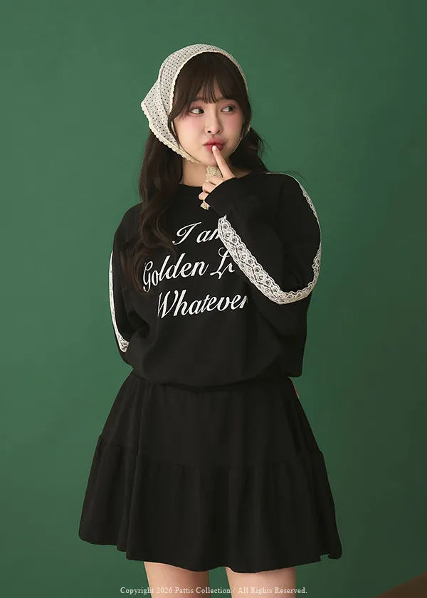 鄰居的熱戀自語 | 法式字母拼接蕾絲上衣+短褲裙set組(黑)