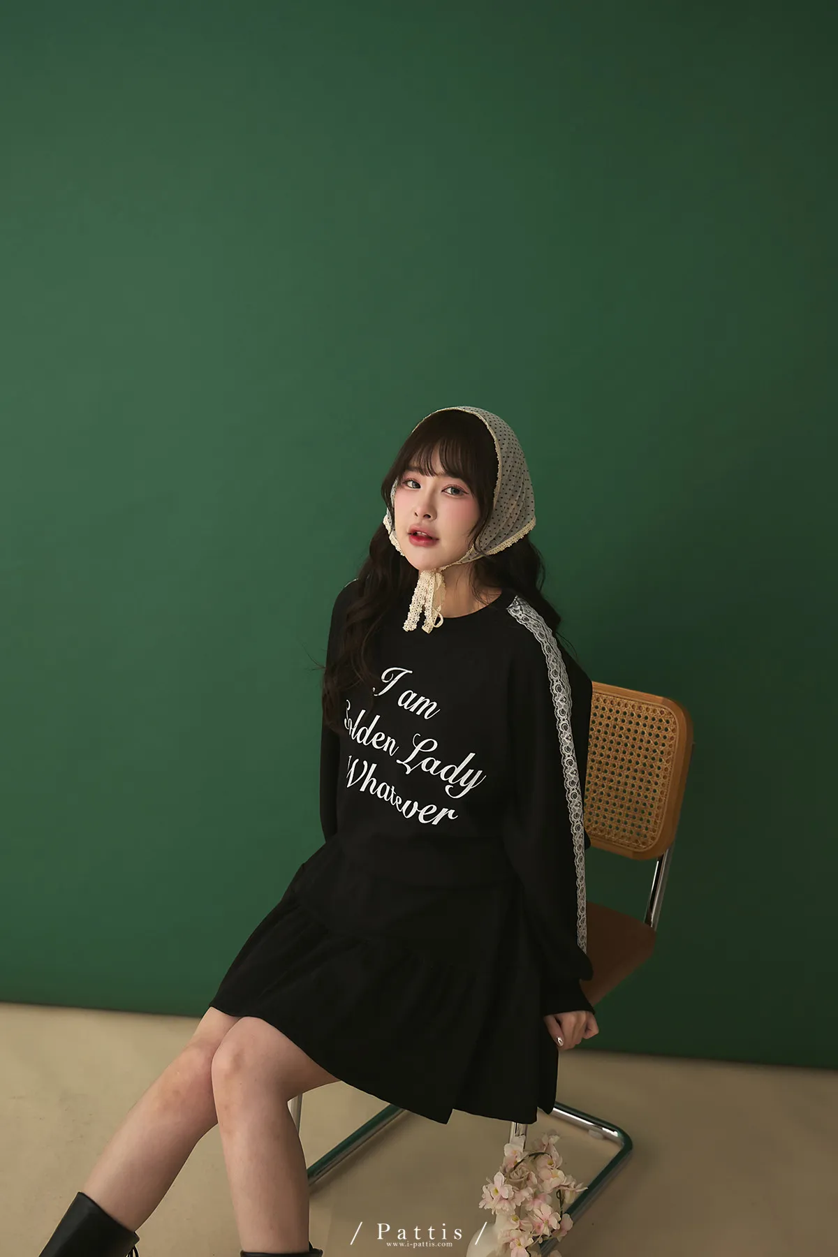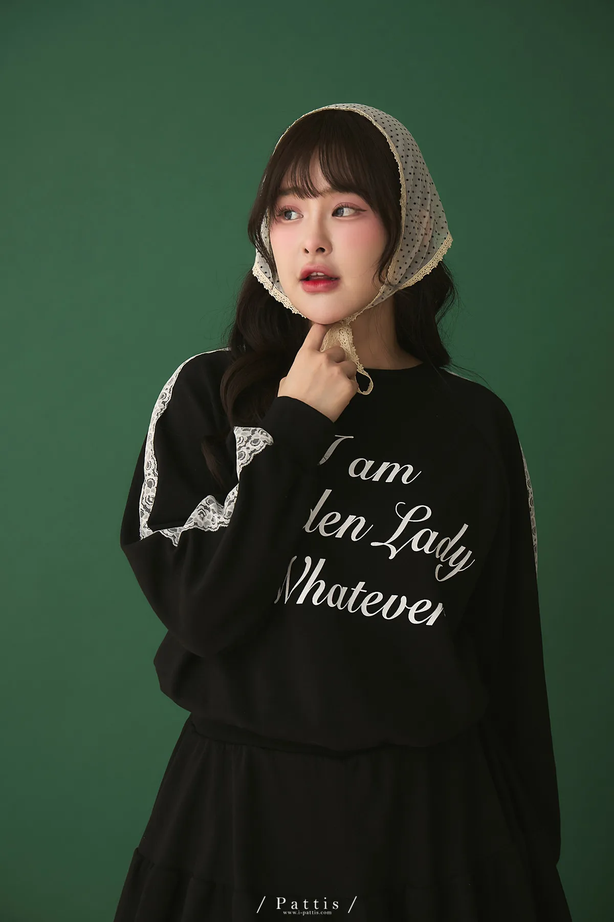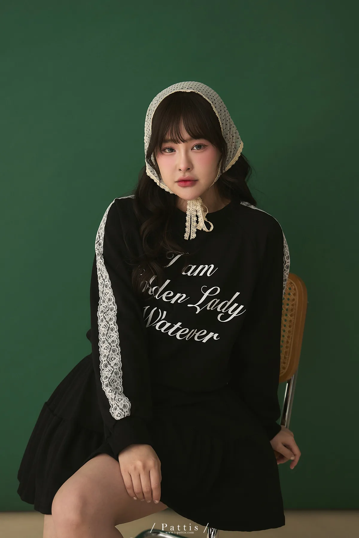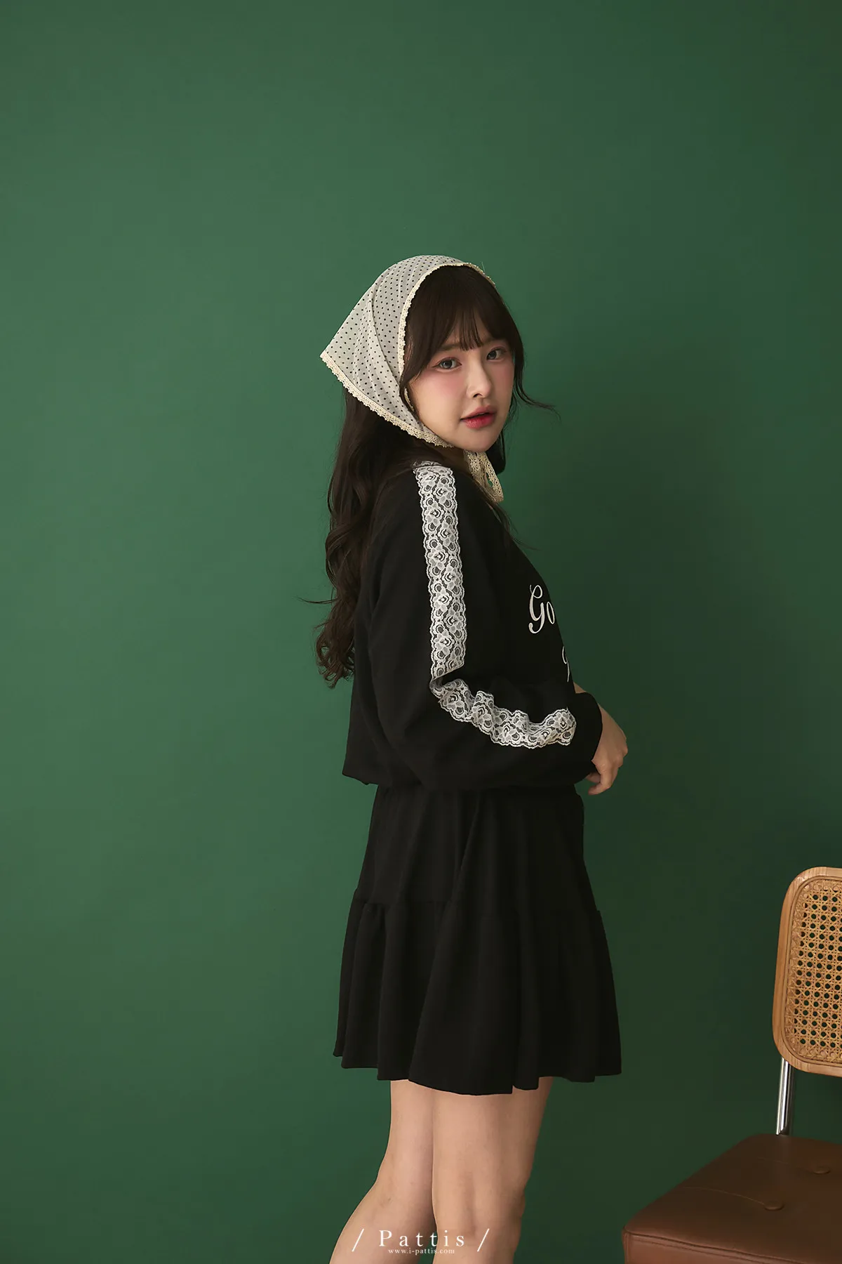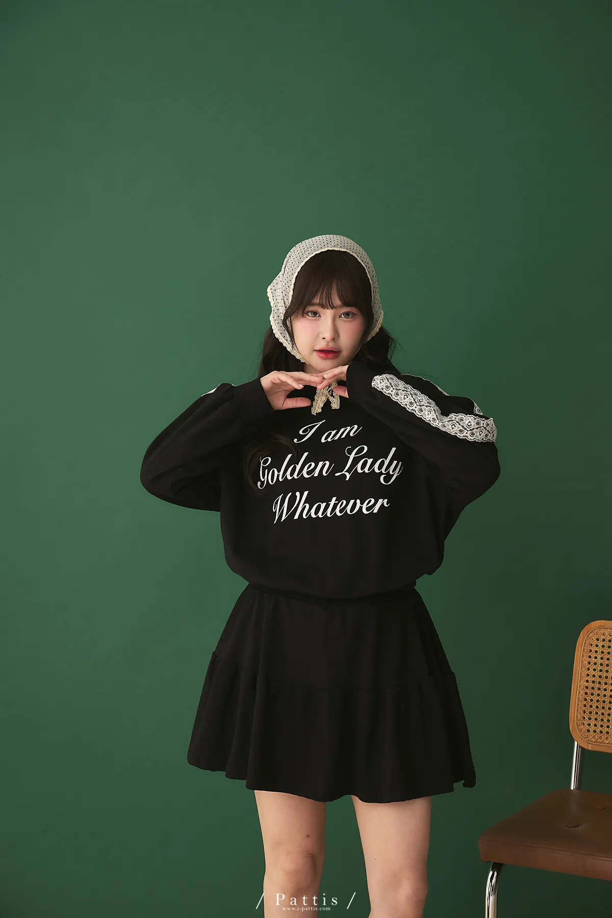 鄰居的熱戀自語 | 法式字母拼接蕾絲上衣+短褲裙set組(黑)