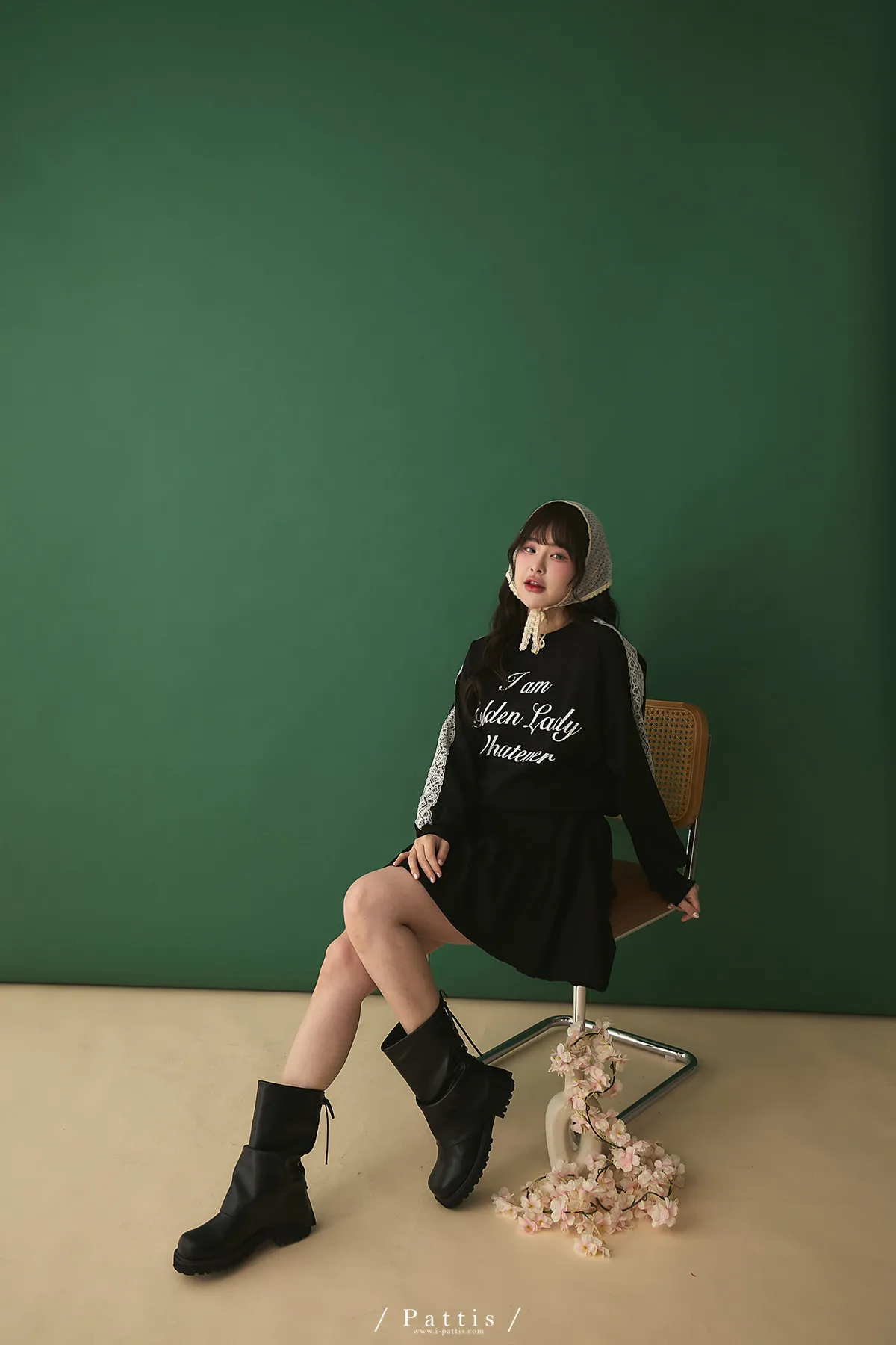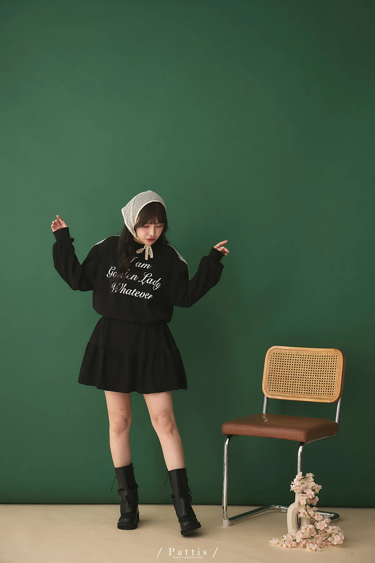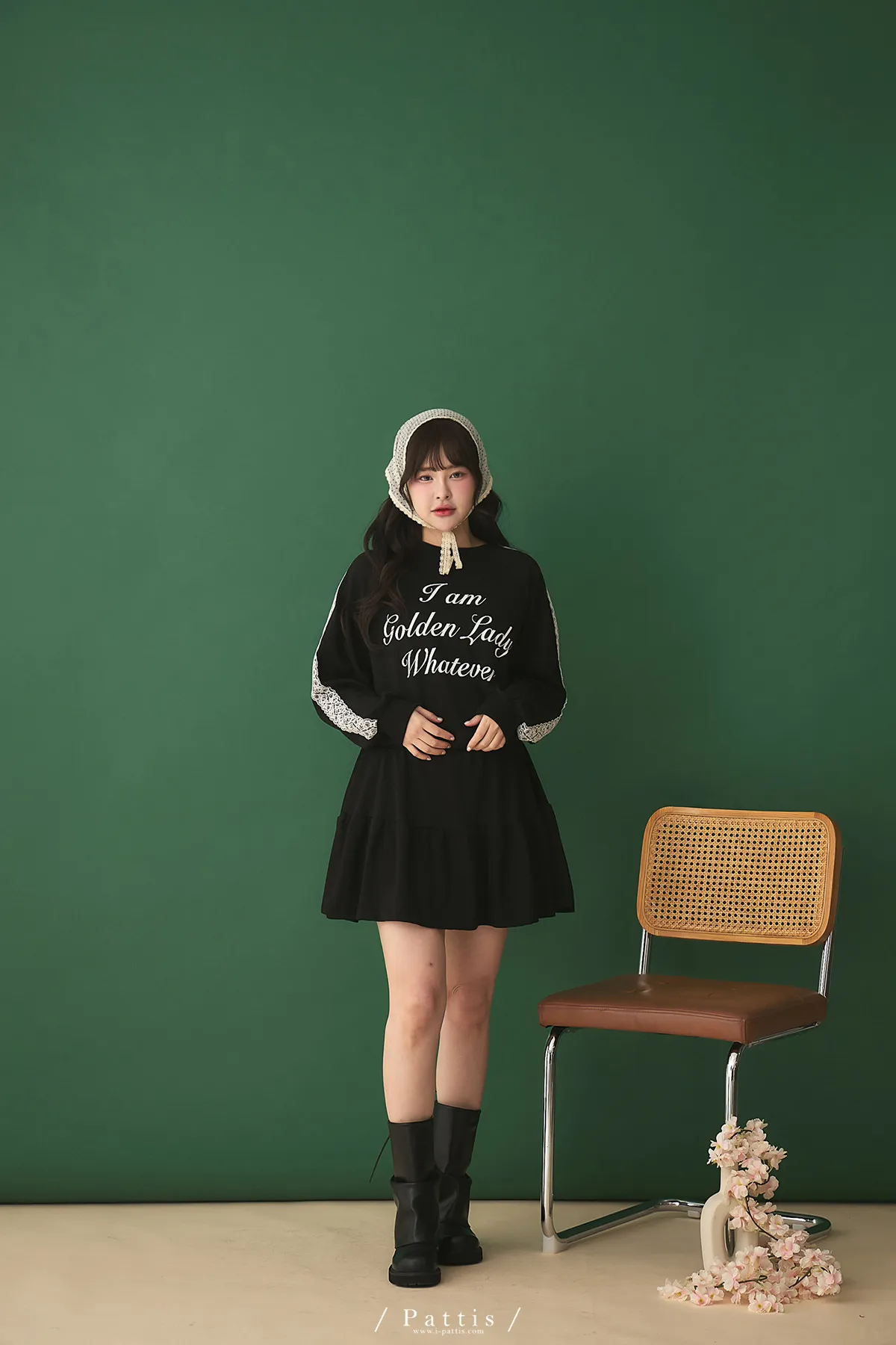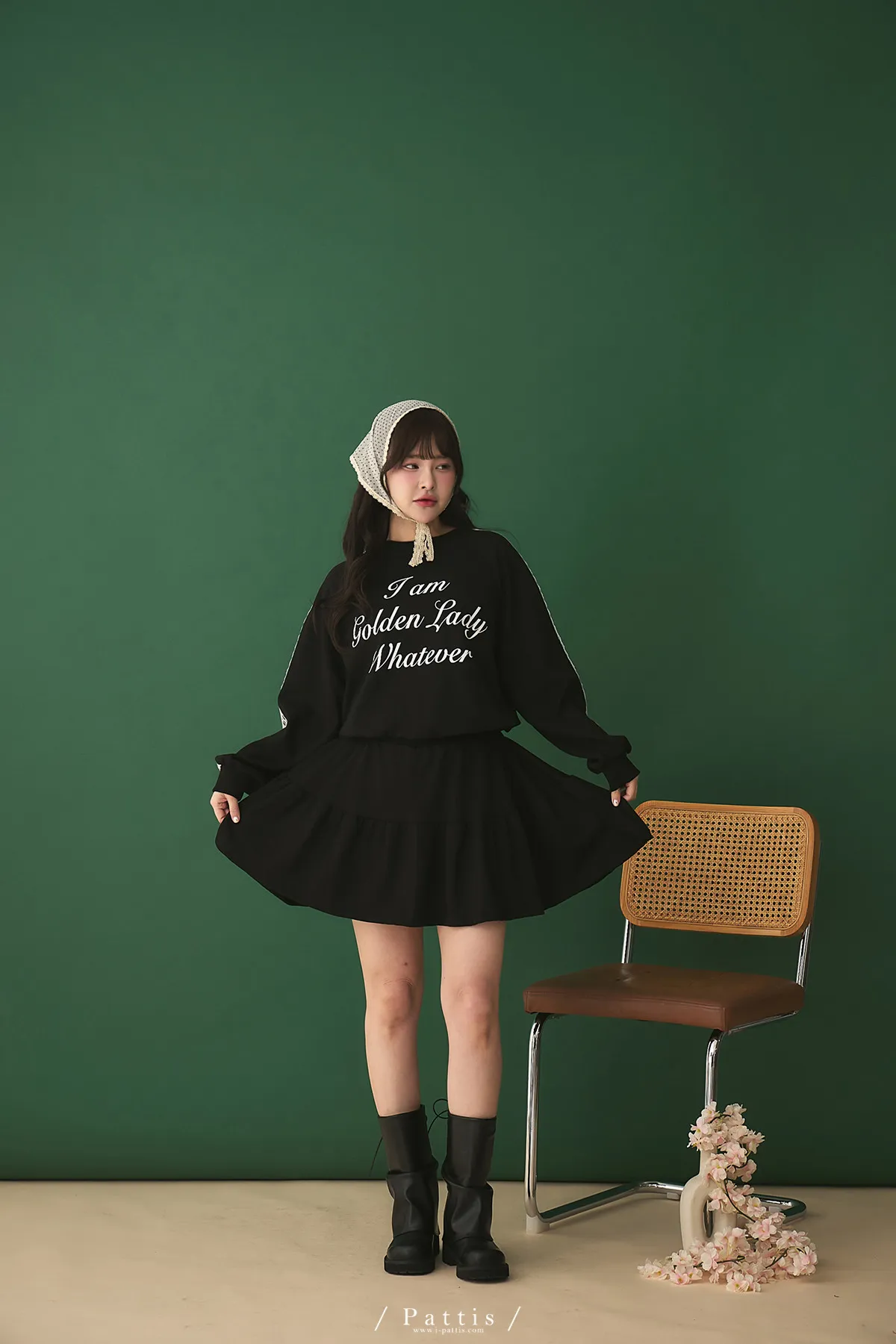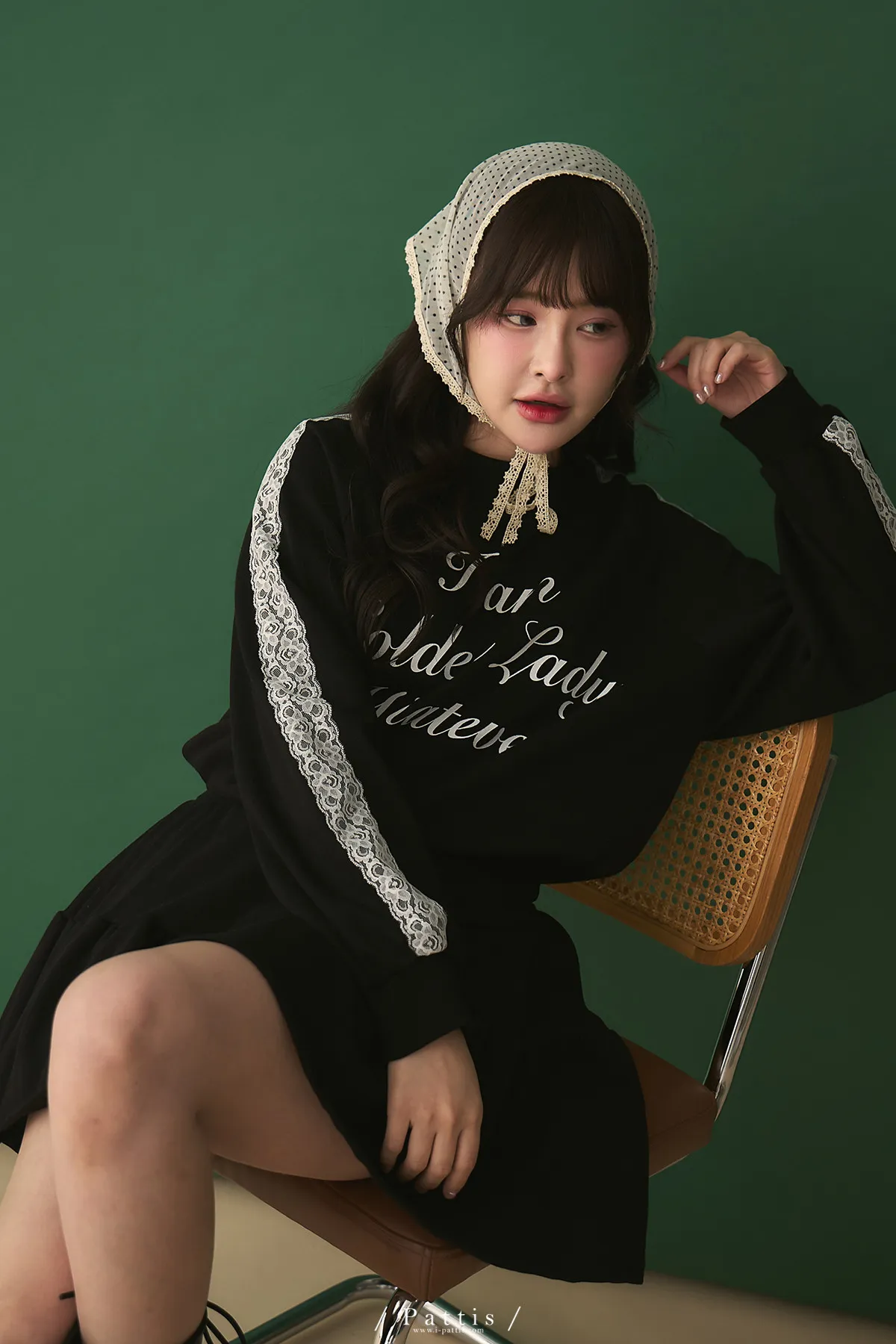 鄰居的熱戀自語 | 法式字母拼接蕾絲上衣+短褲裙set組(黑)