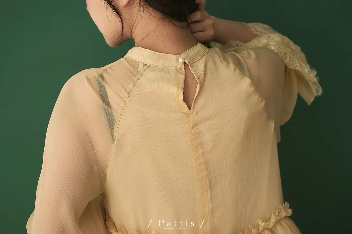 | F | 88 | X | 50 | 52 | 60 | X | 80(至領口) | 34 | 24 | 34(至領口) | 雪紡+蕾絲 | O(全身) | 後鈕釦穿套 |