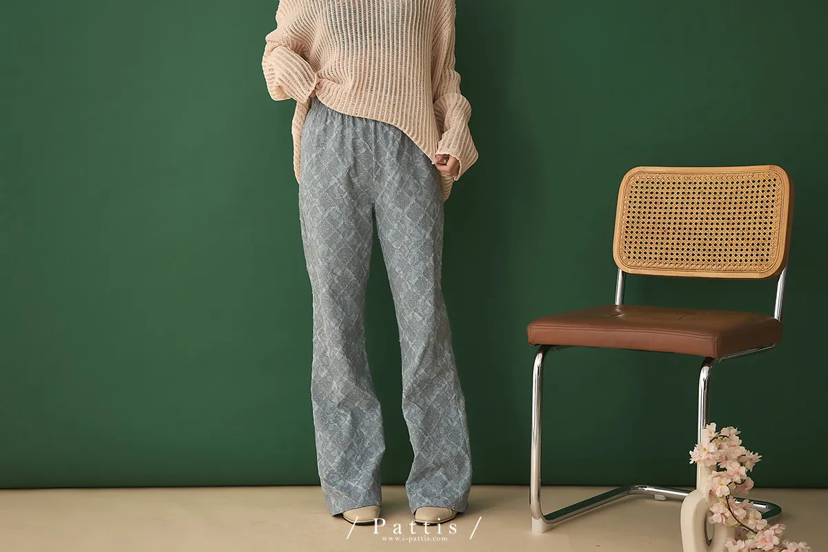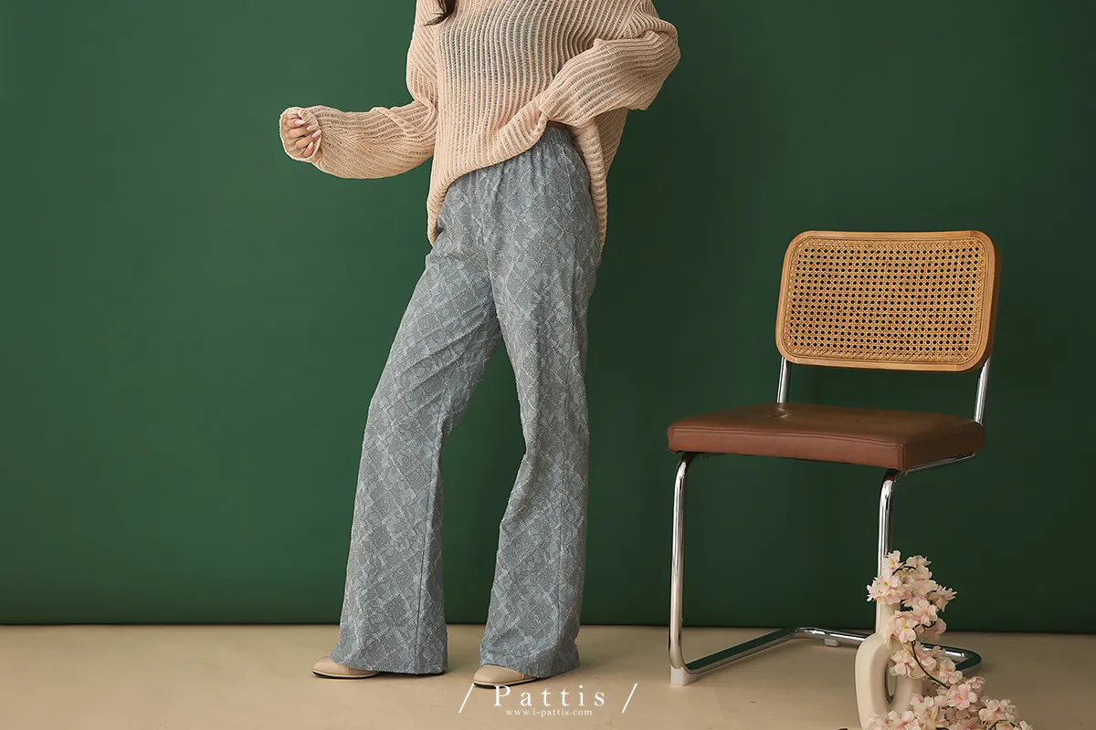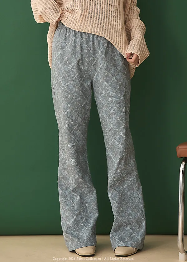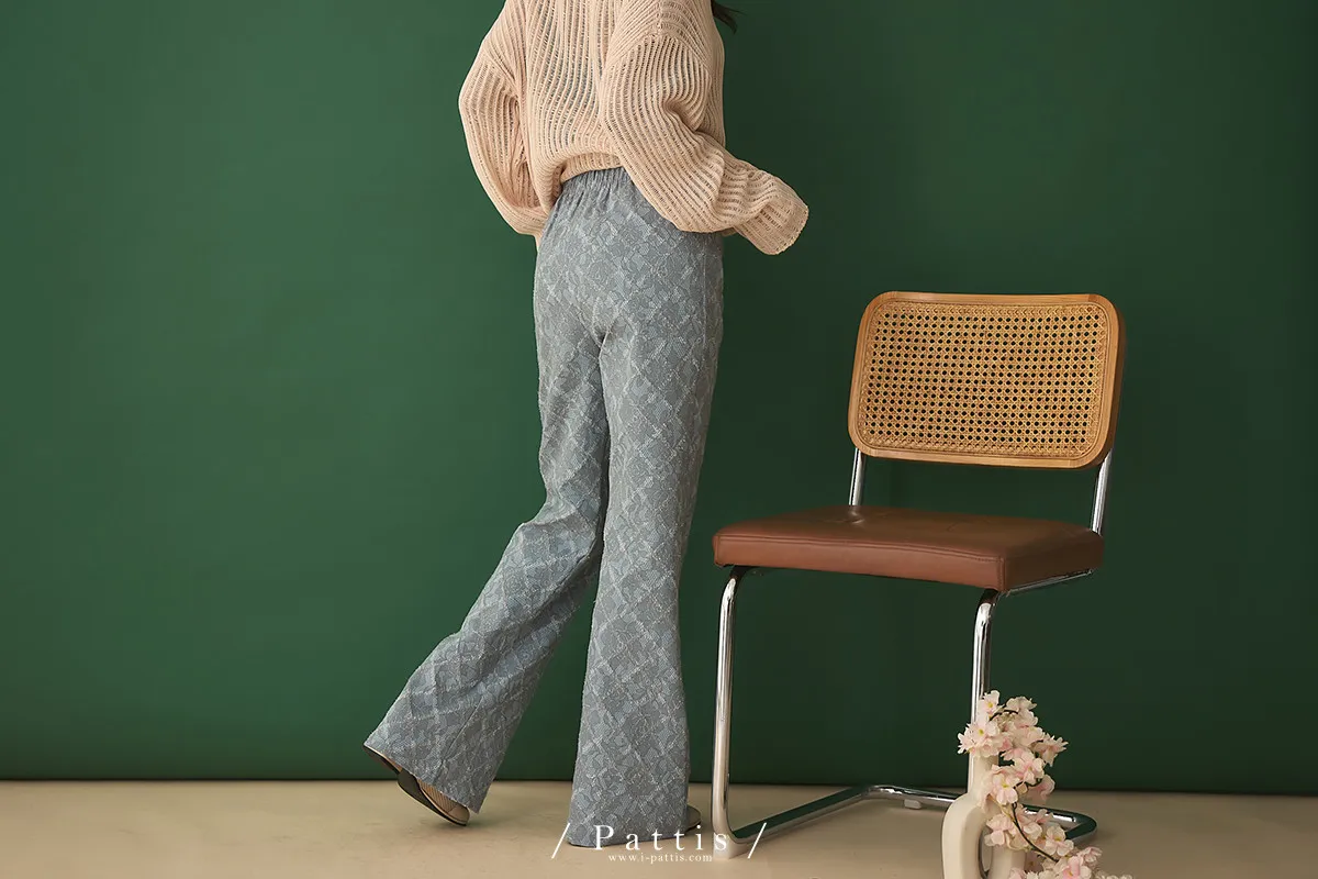 (現貨)十八世紀末信簽 | 浮雕玫瑰蕾絲小喇叭鬆緊腰長褲(單一色)