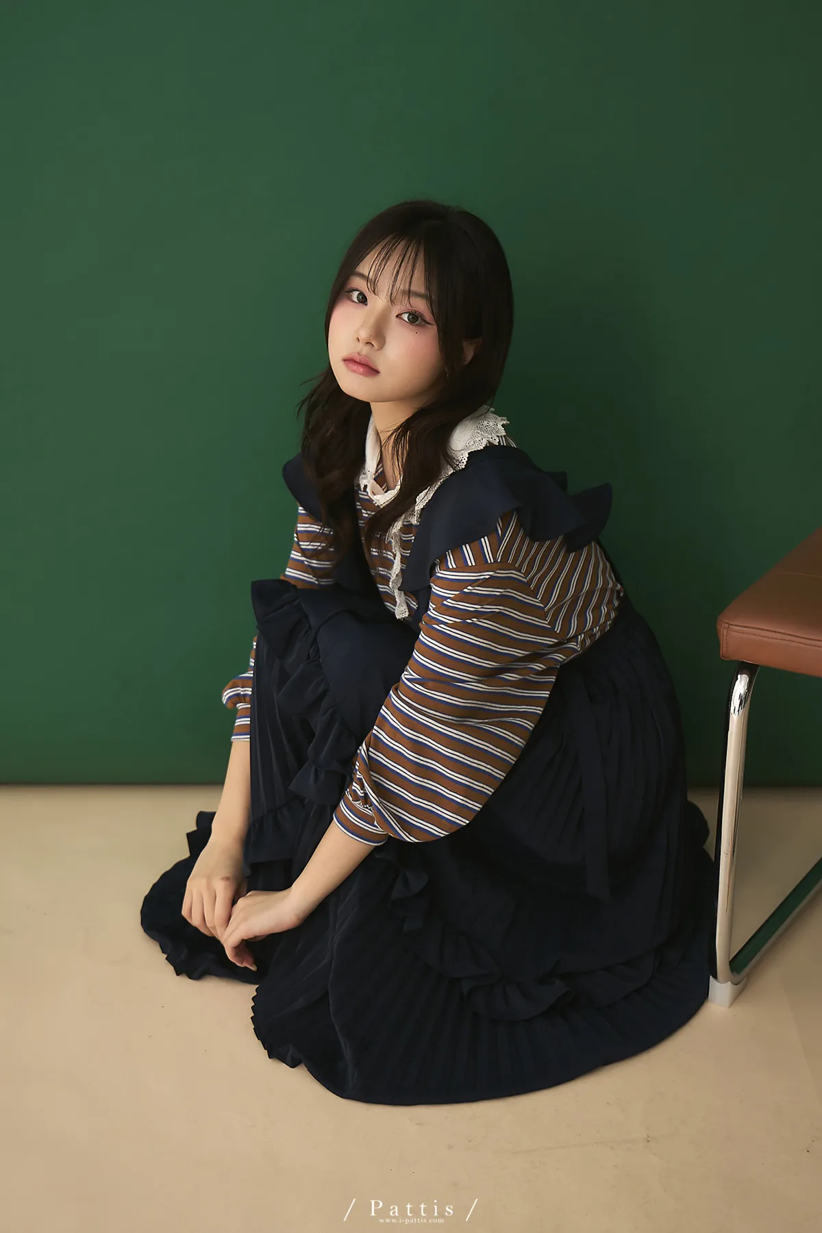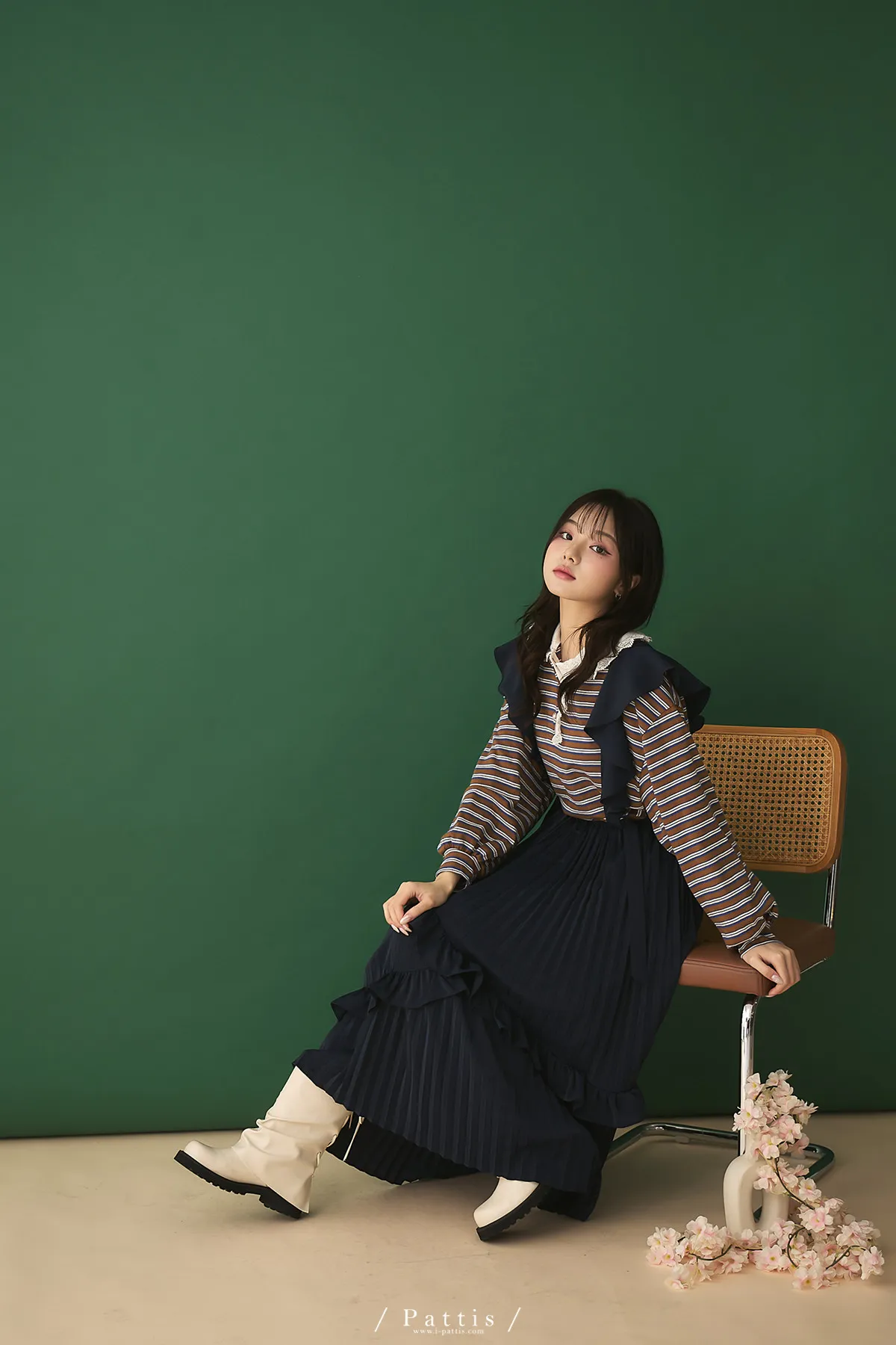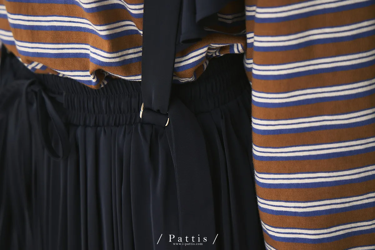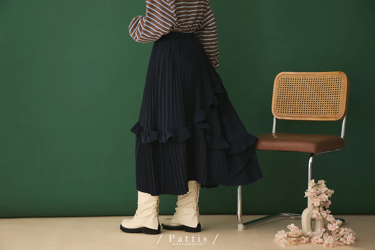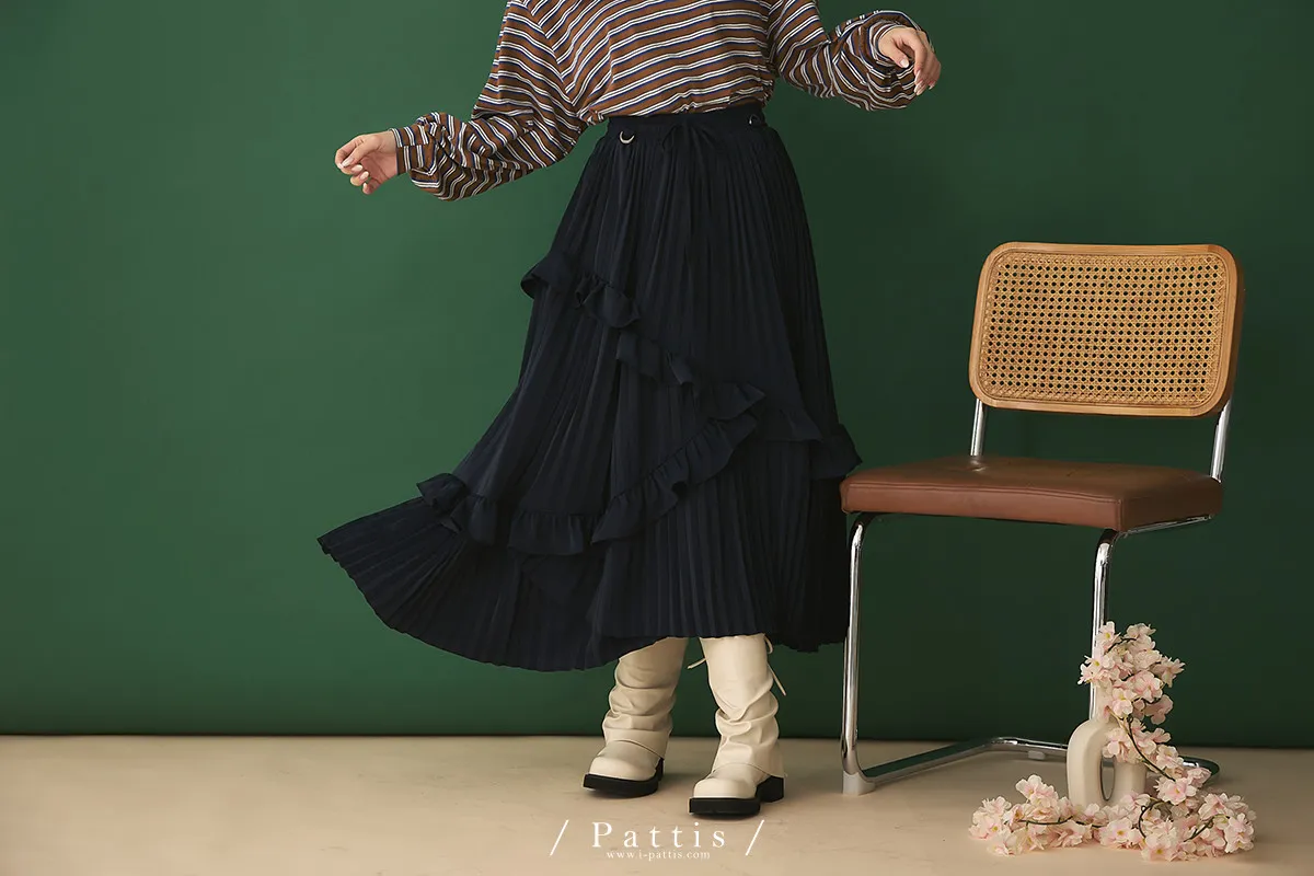 若花般盛開時 | 2way可拆肩帶不規則抓皺多層壓摺吊帶裙(深藍)