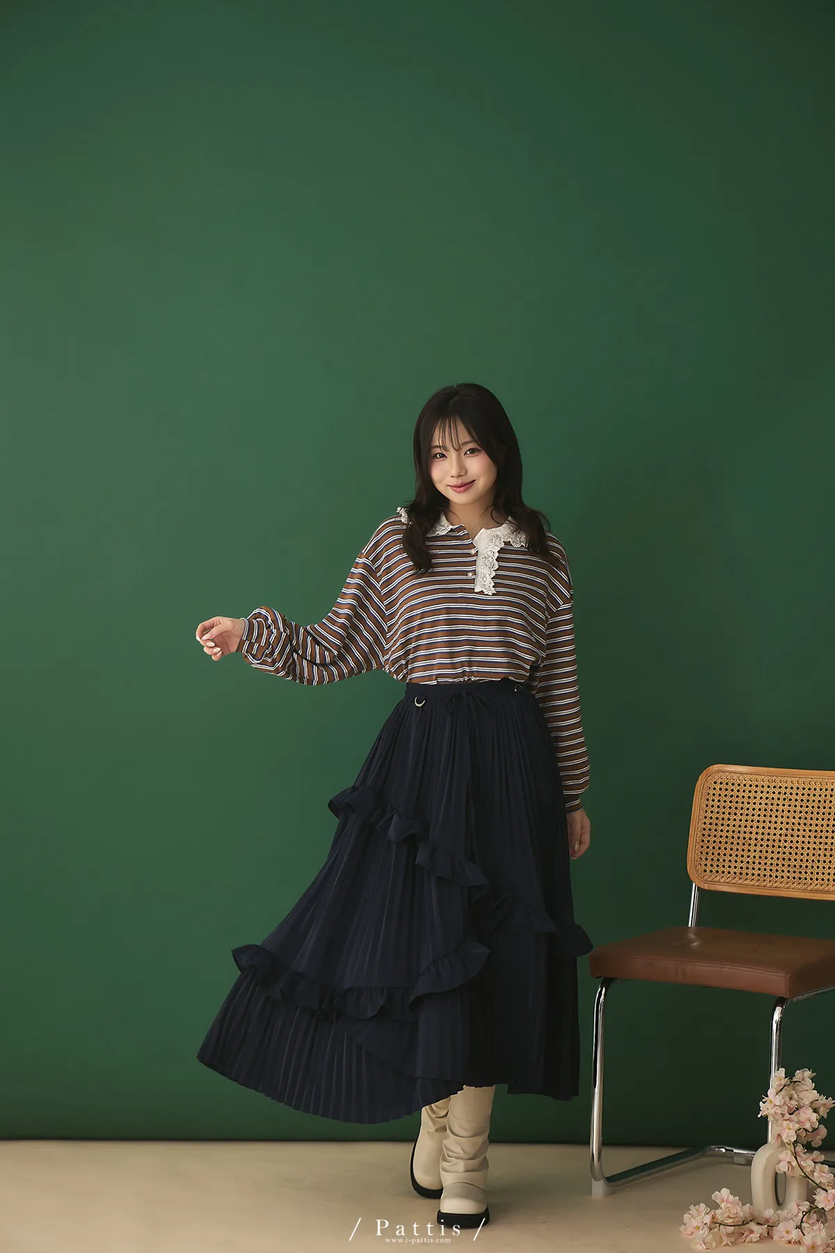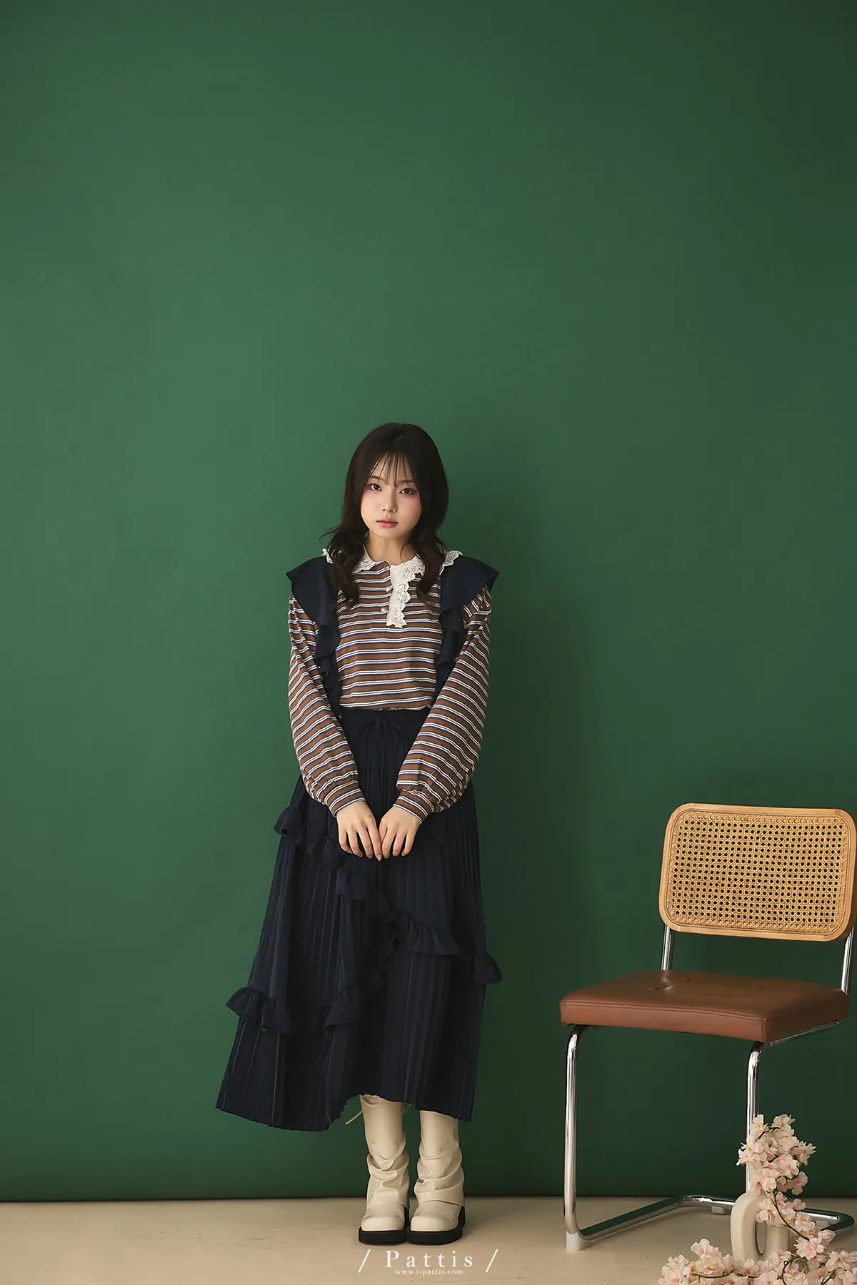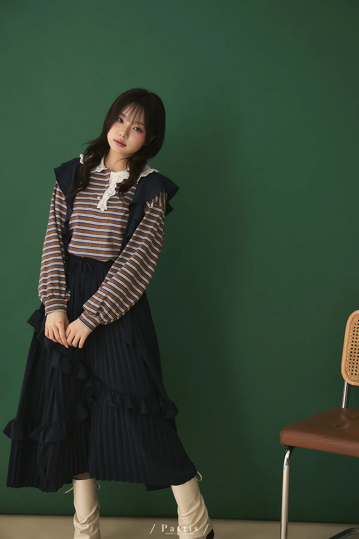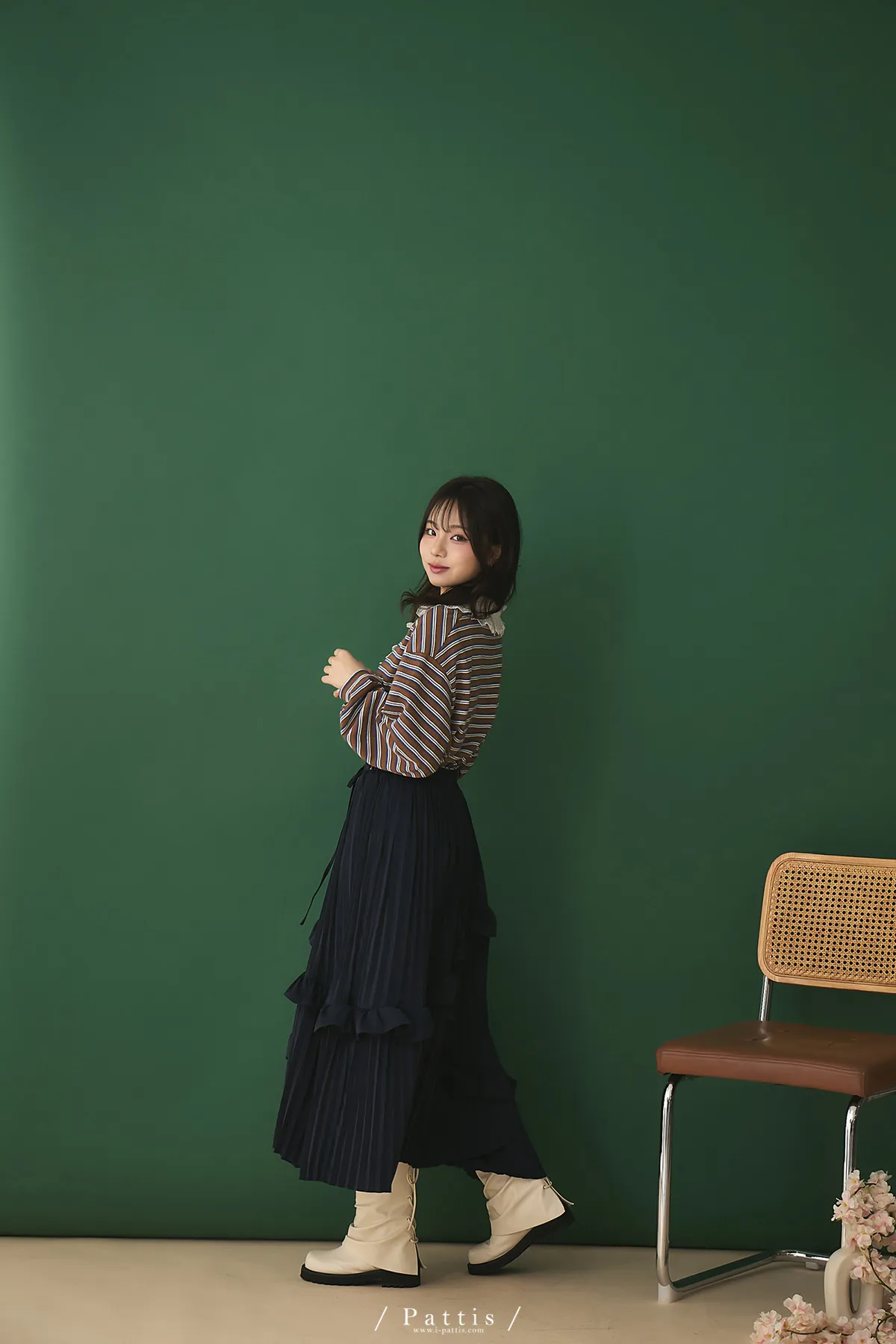 若花般盛開時 | 2way可拆肩帶不規則抓皺多層壓摺吊帶裙(深藍)