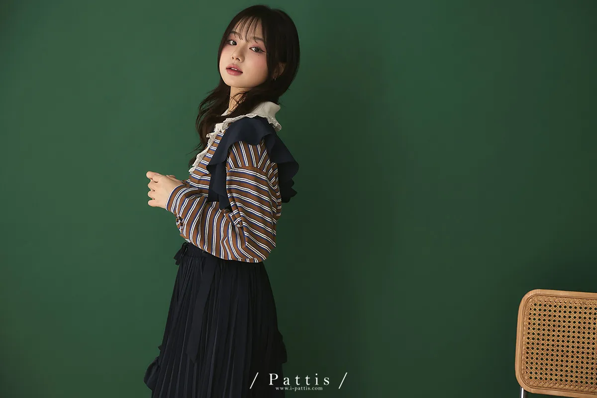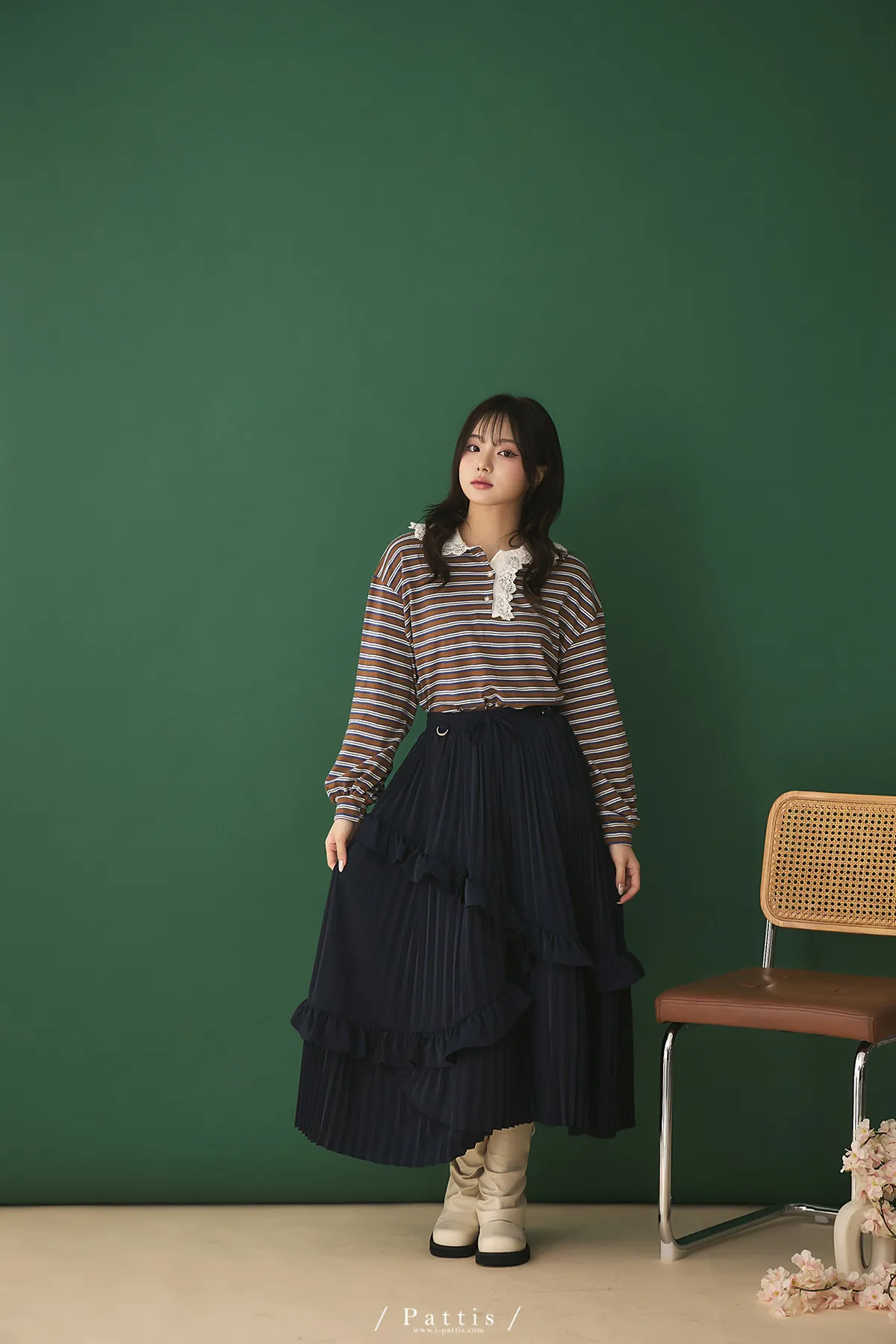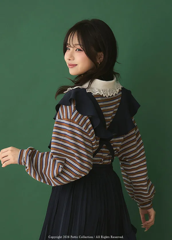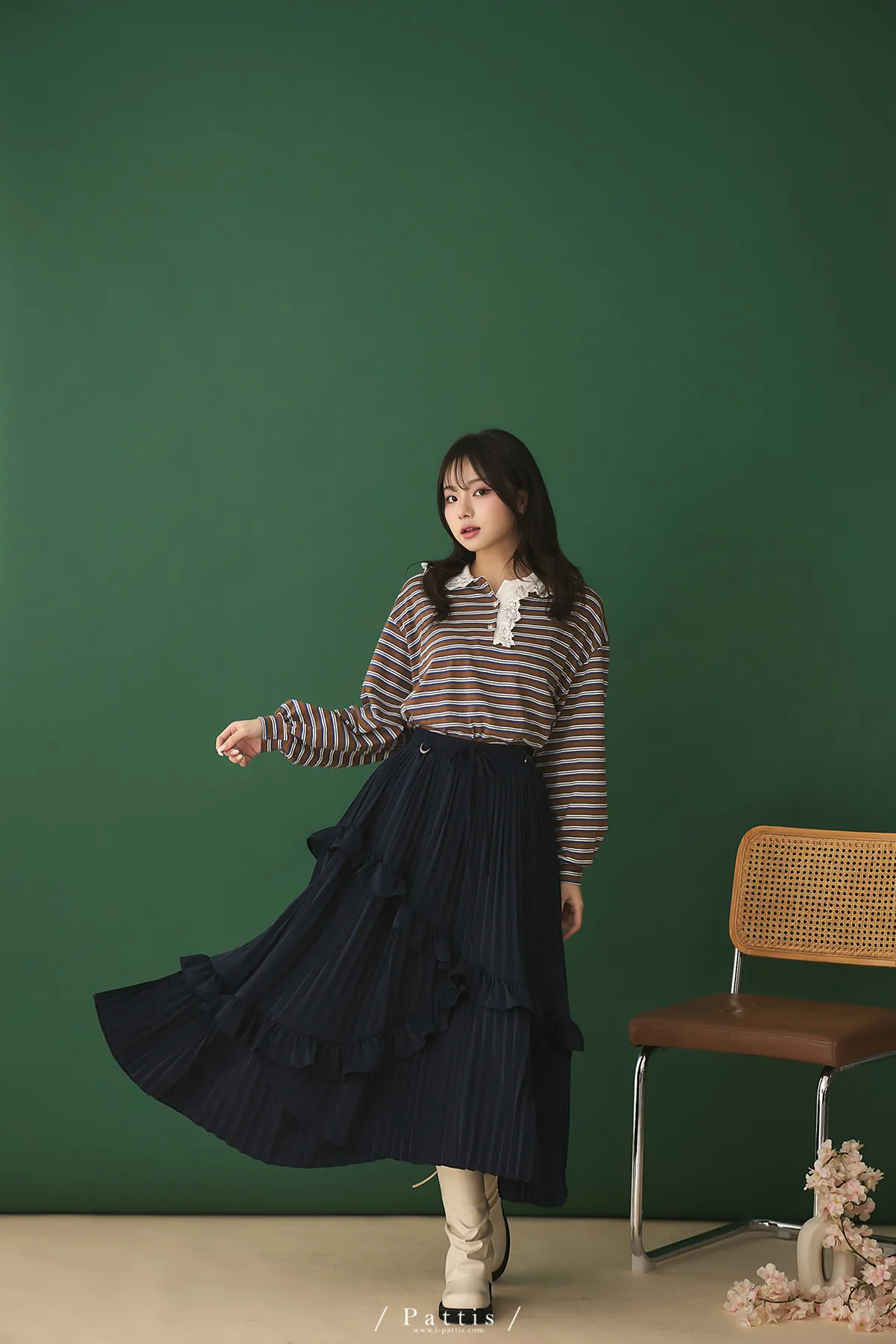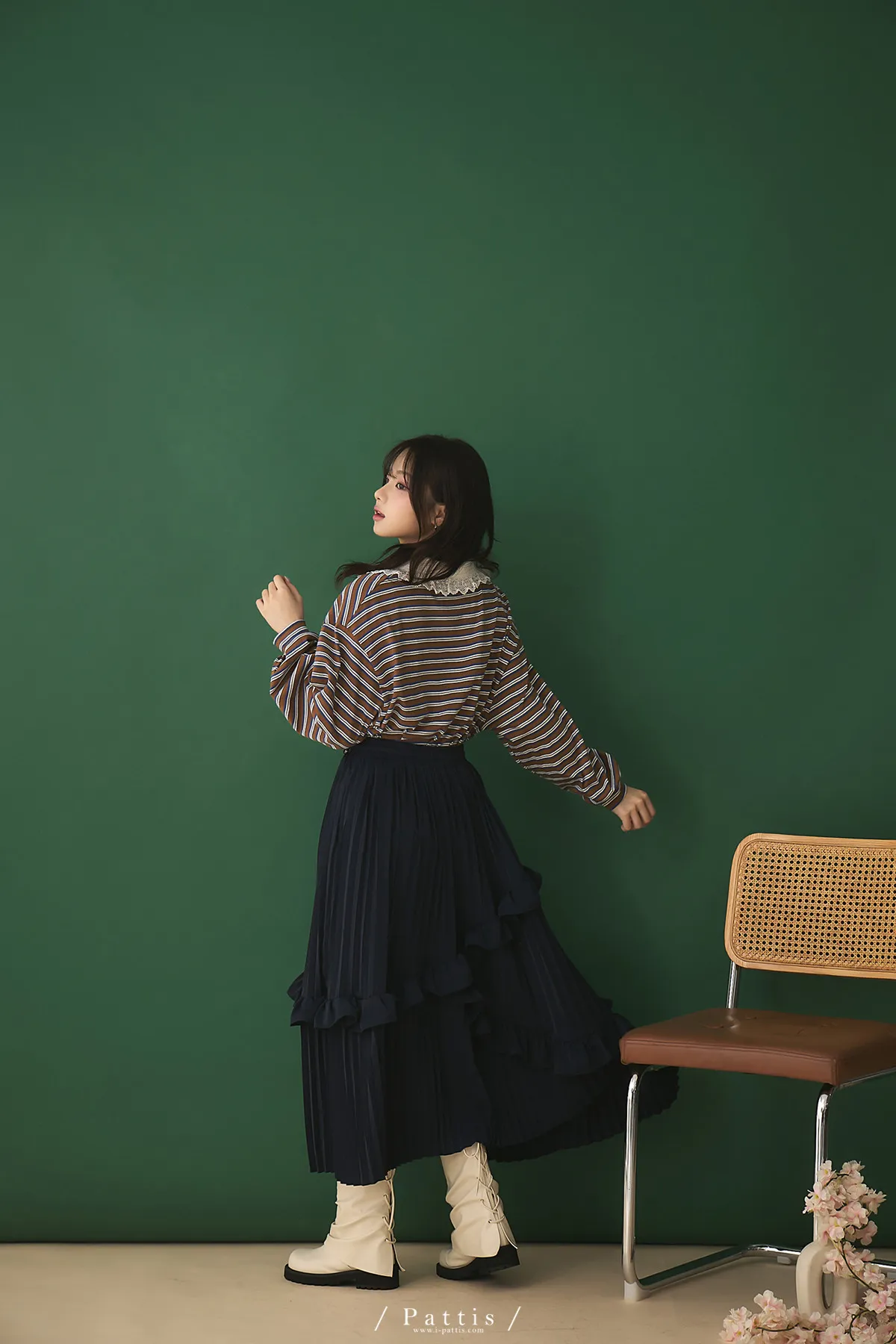 若花般盛開時 | 2way可拆肩帶不規則抓皺多層壓摺吊帶裙(深藍)