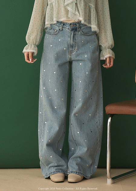 與日俱增的戀愛 | 亮銀愛心刷色丹寧直筒褲(單一色)