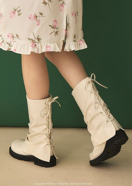 信尾的XXX署名 | 後交叉繫帶翻摺造型中筒靴(米白/黑)