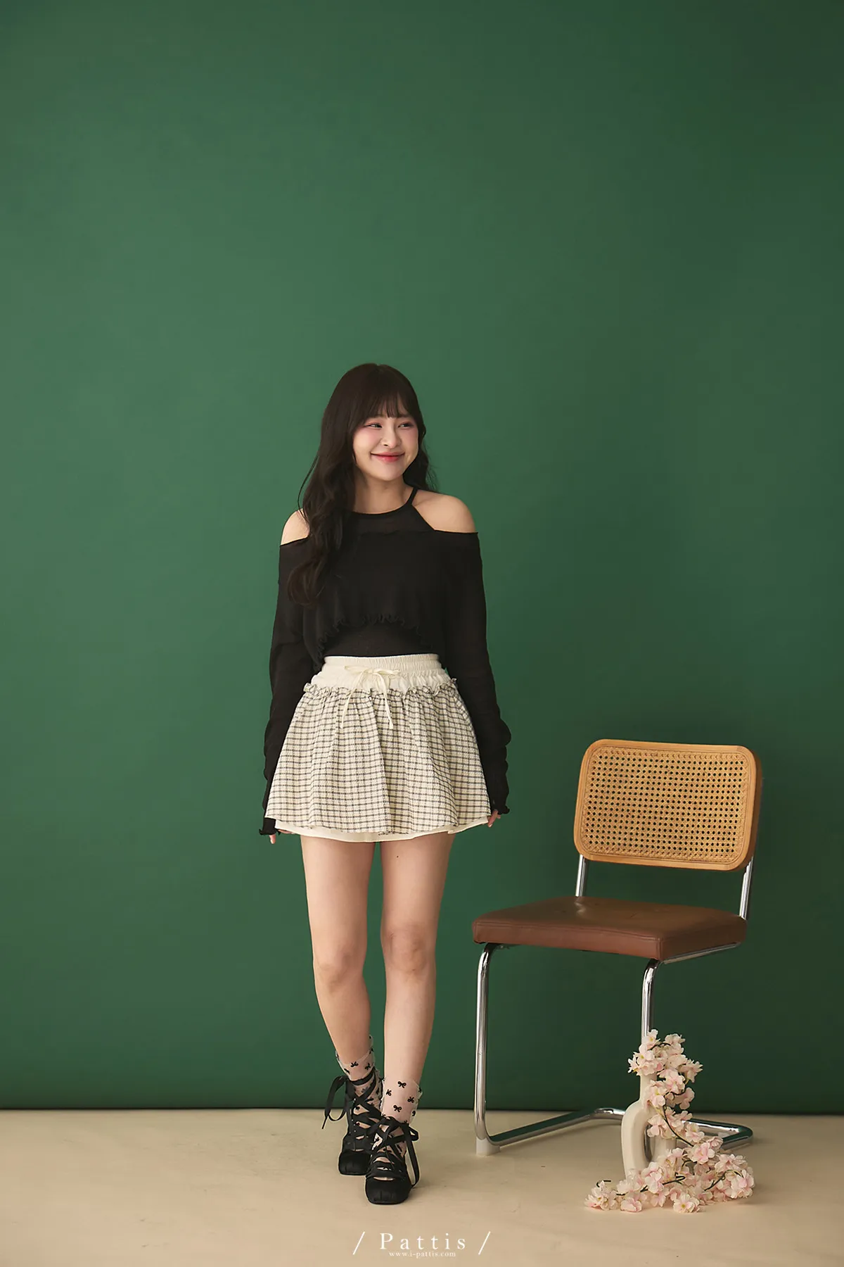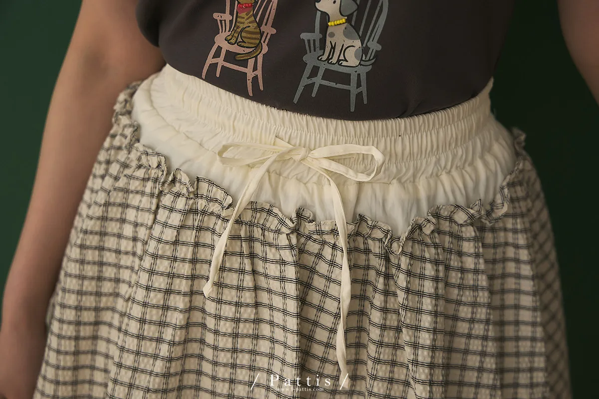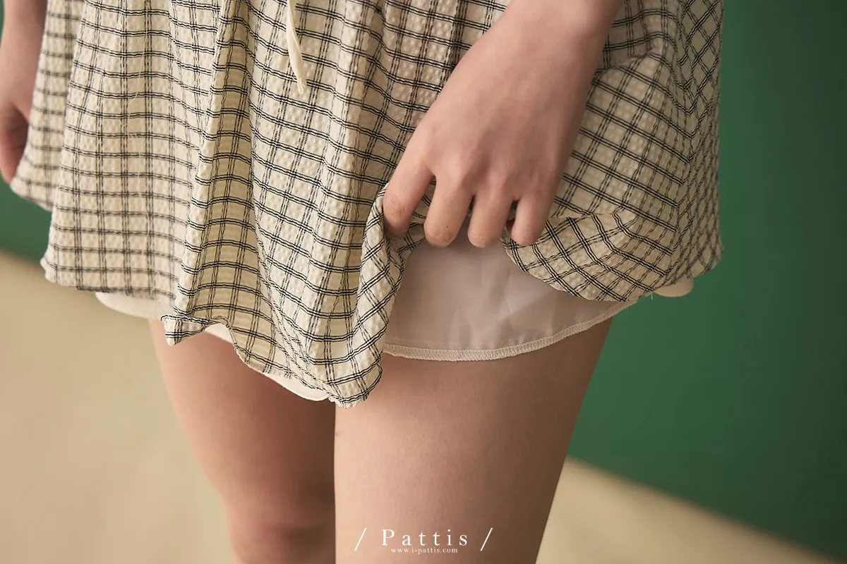 失去詞彙的草稿 | 雙層格紋抽繩鬆緊腰短褲裙(米白)