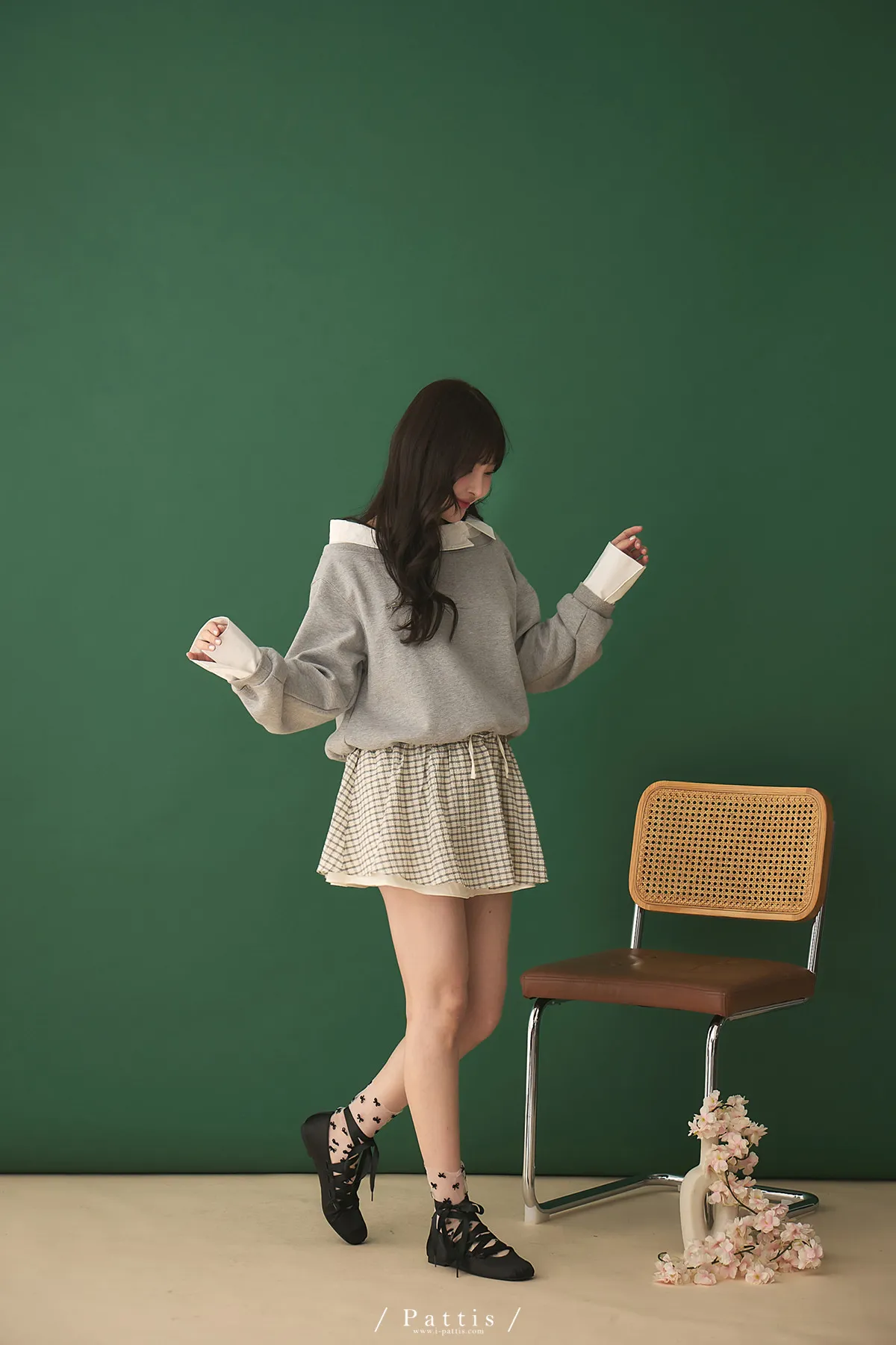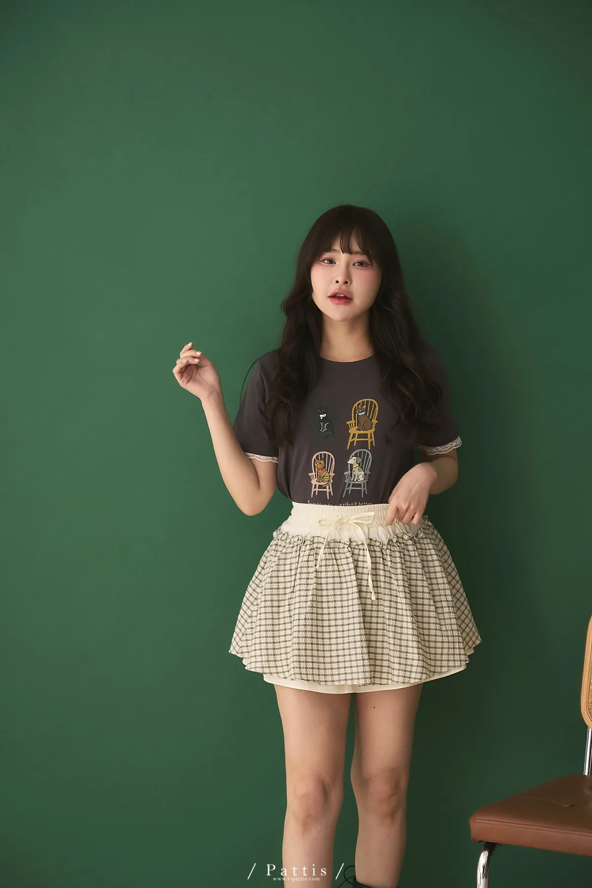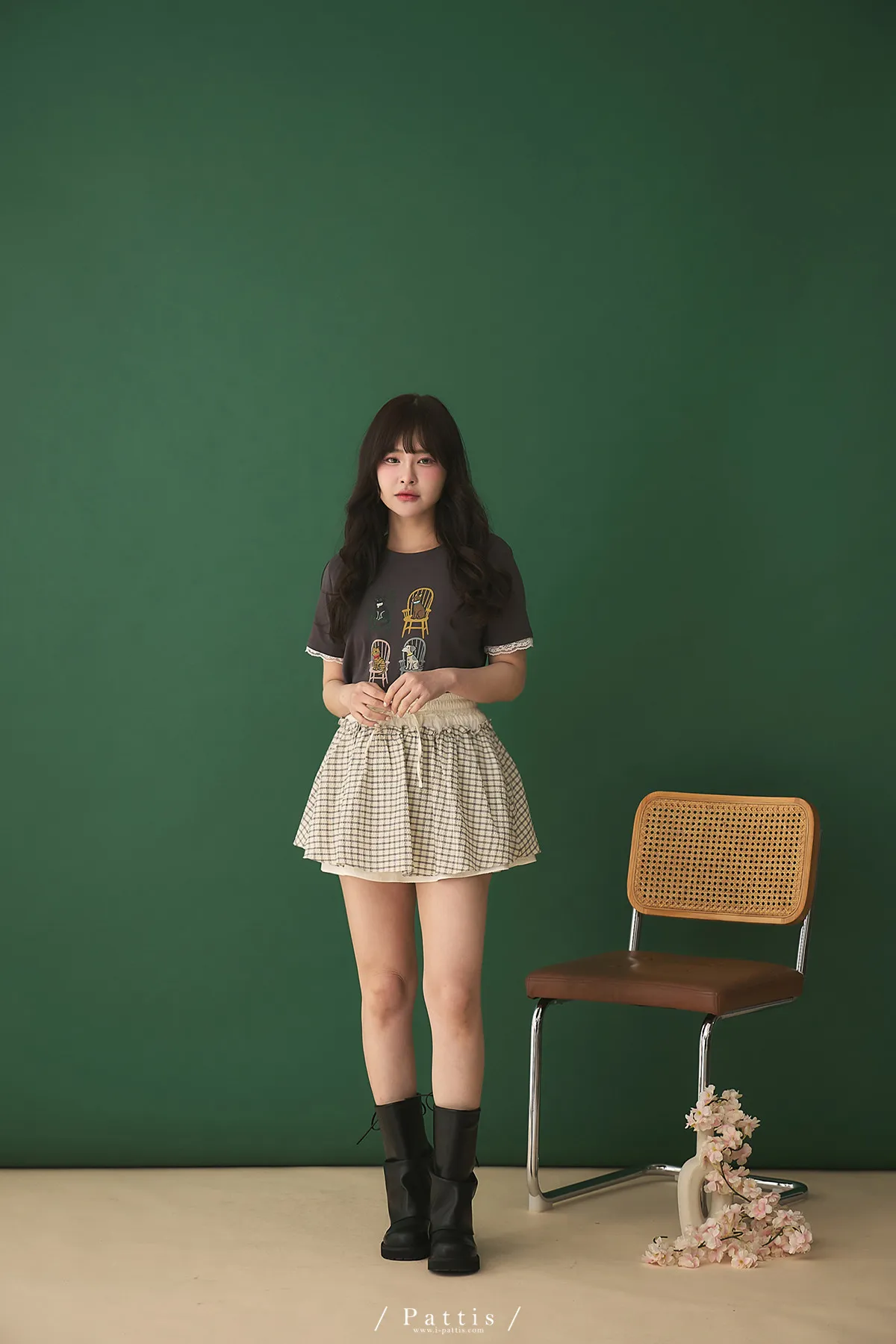 失去詞彙的草稿 | 雙層格紋抽繩鬆緊腰短褲裙(米白)