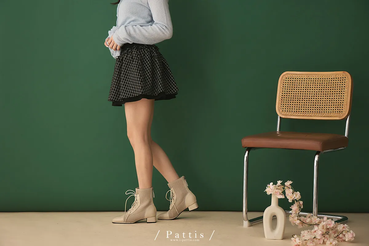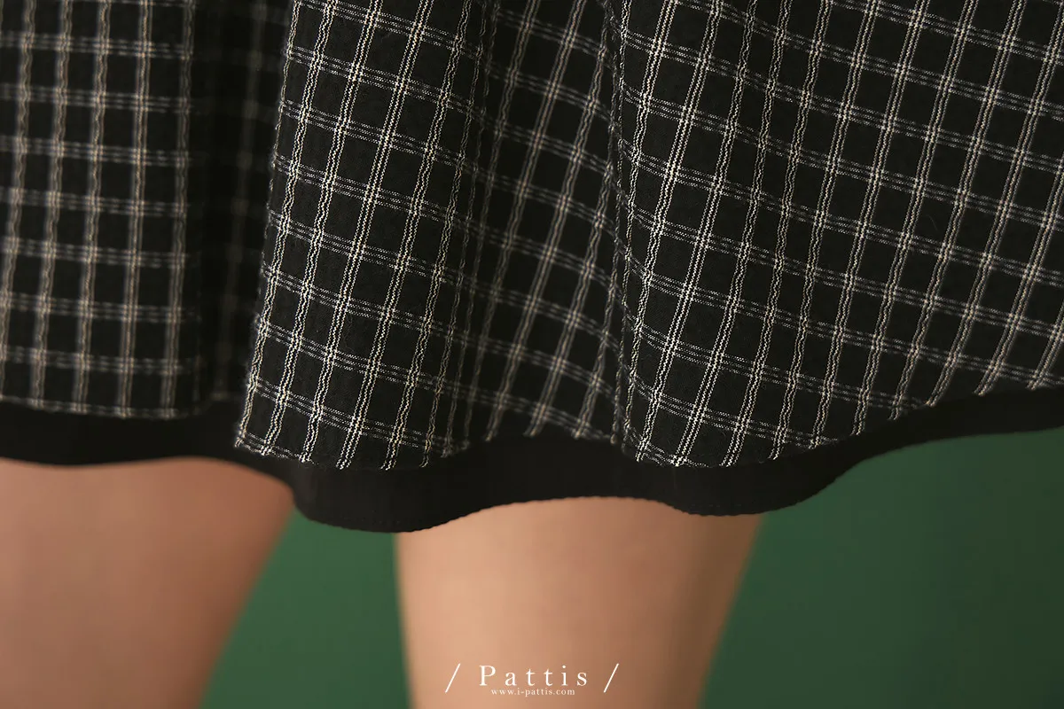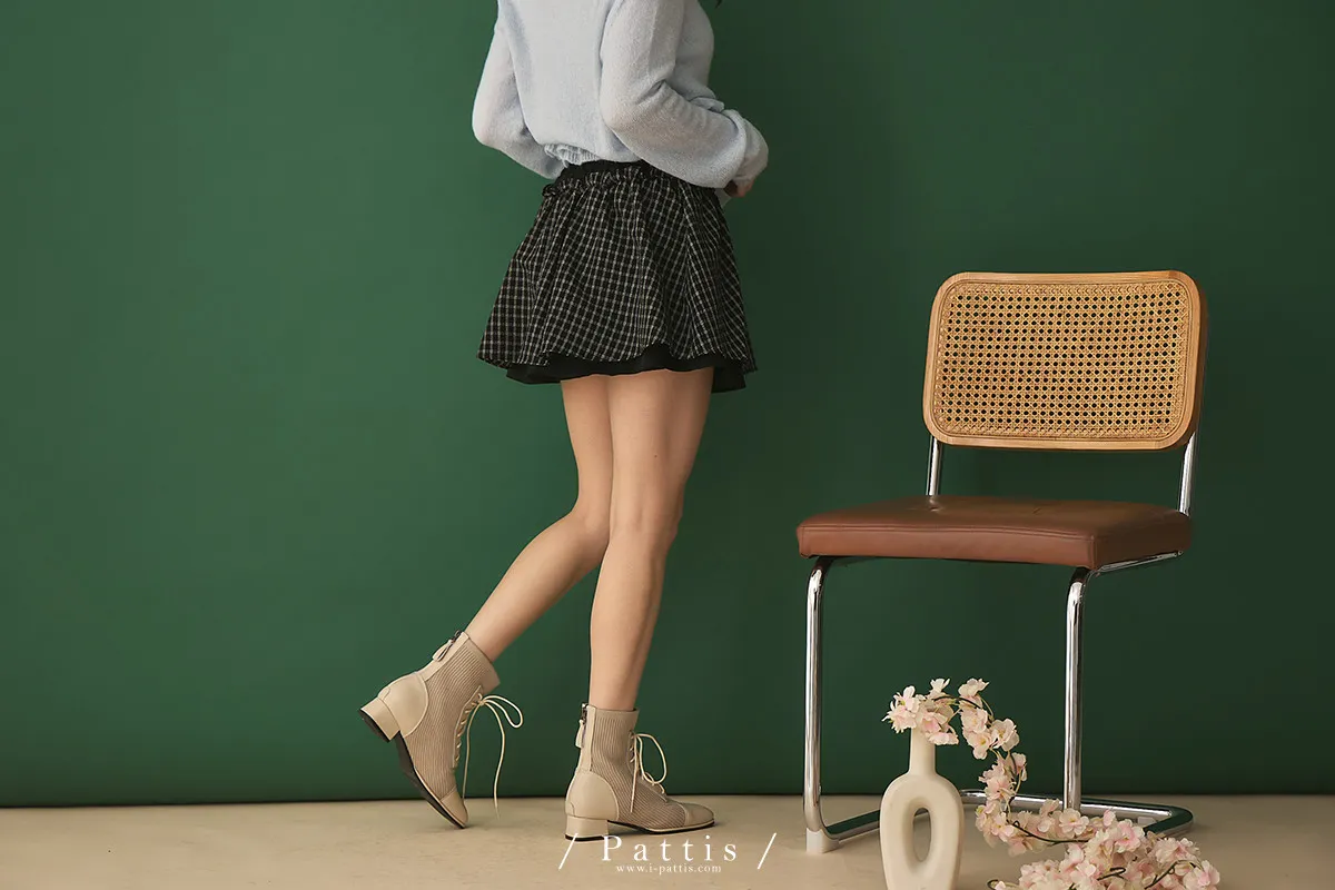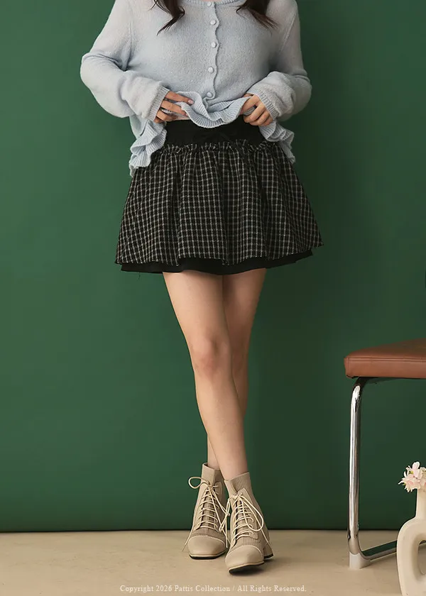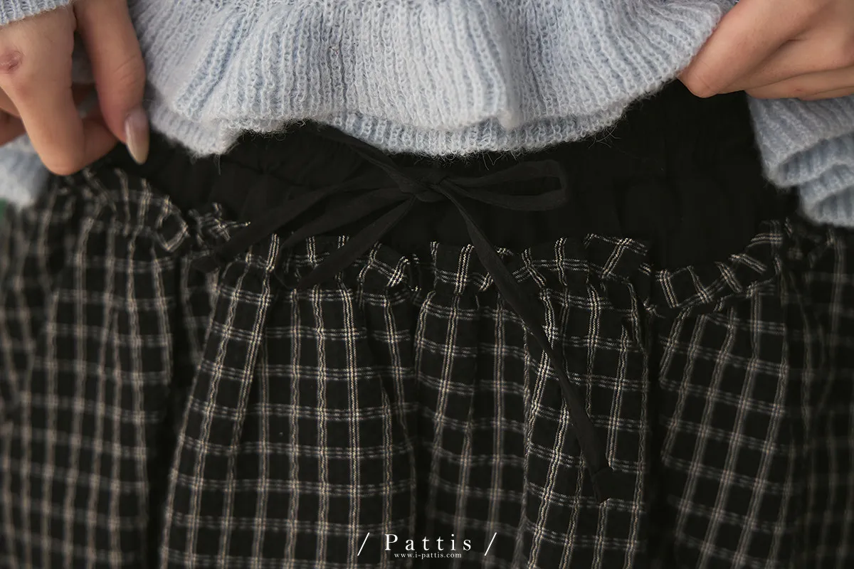 失去詞彙的草稿 | 雙層格紋抽繩鬆緊腰短褲裙(黑)
