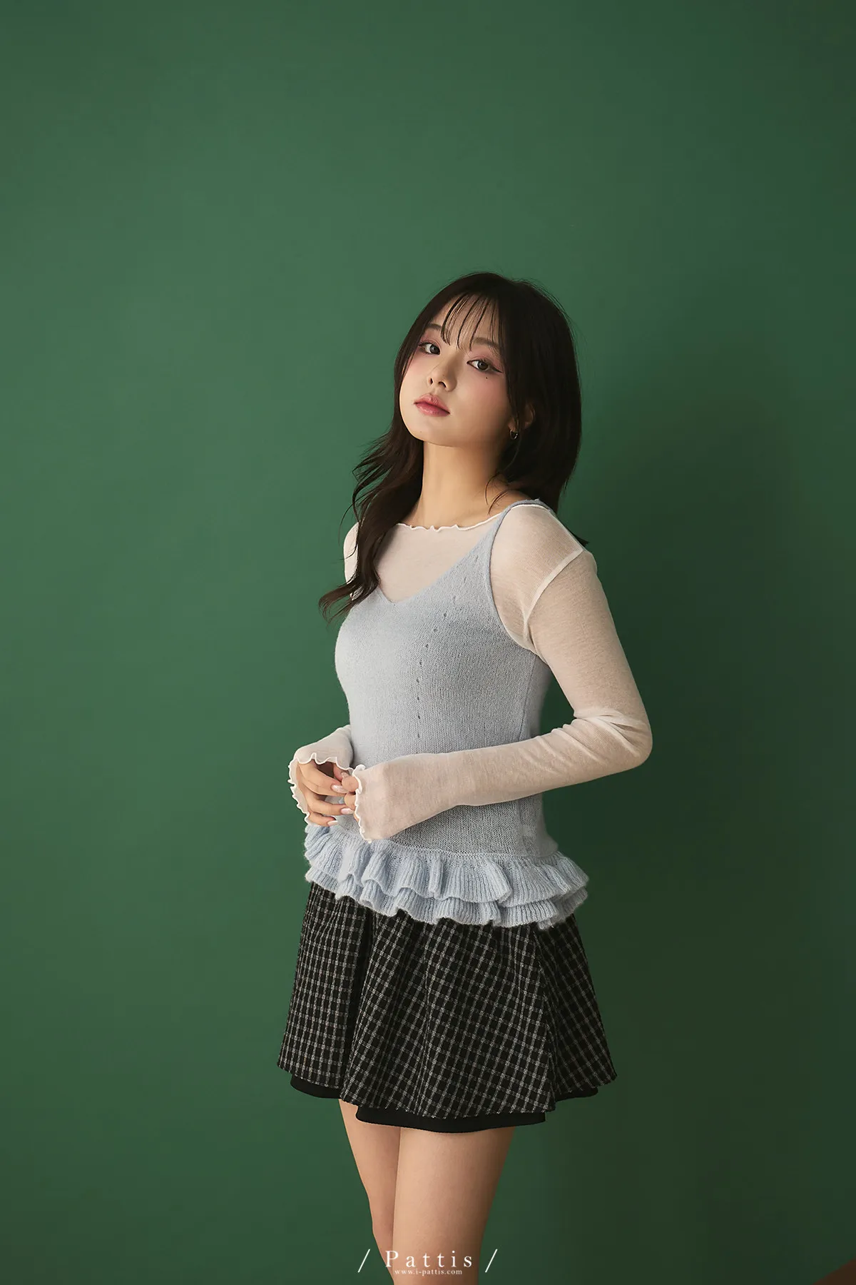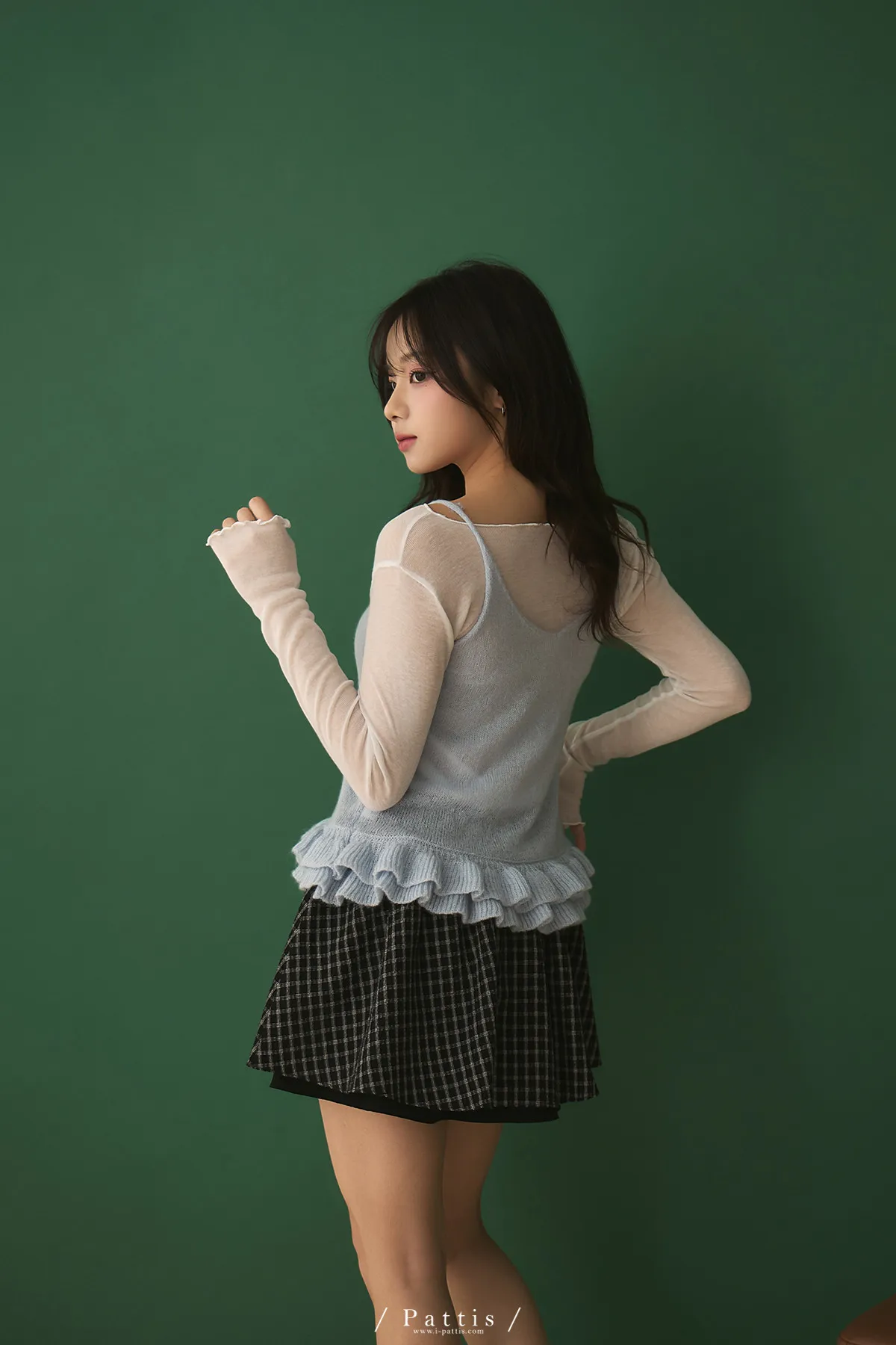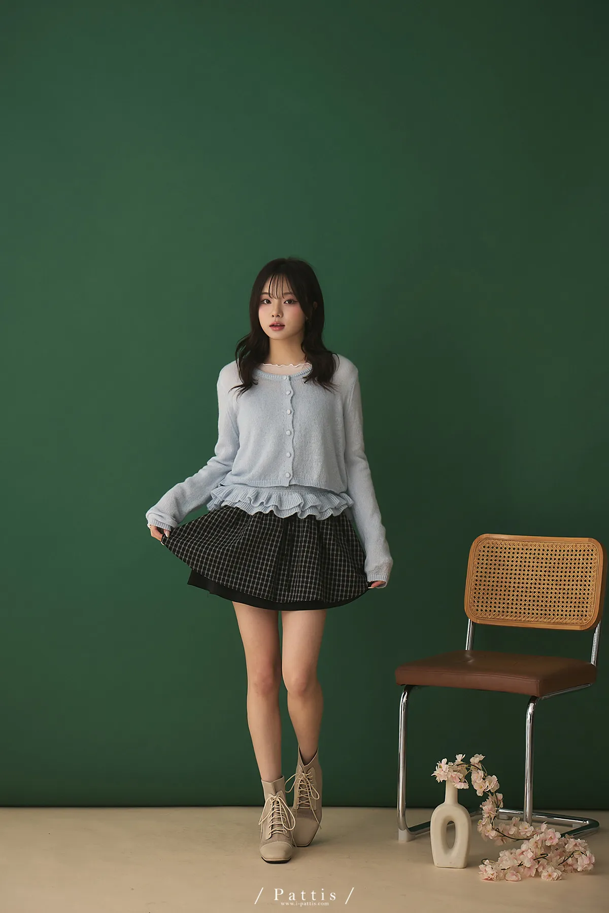 失去詞彙的草稿 | 雙層格紋抽繩鬆緊腰短褲裙(黑)
