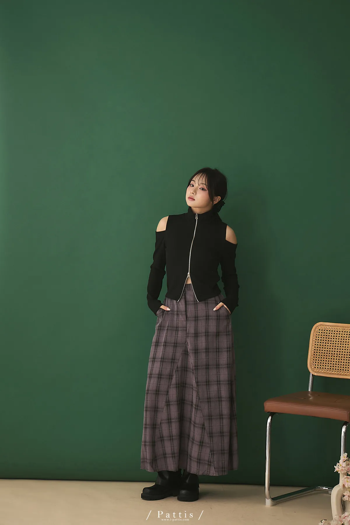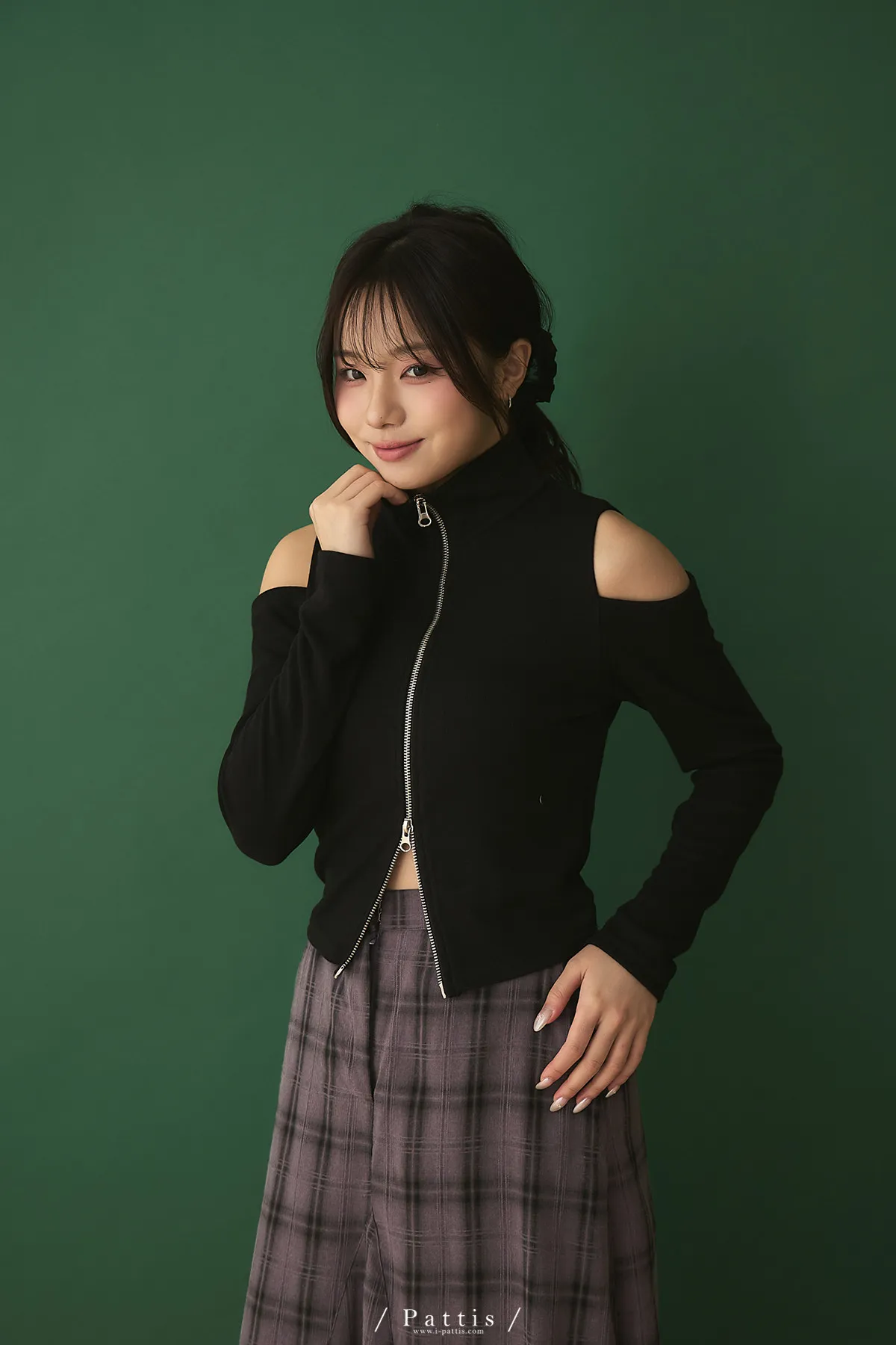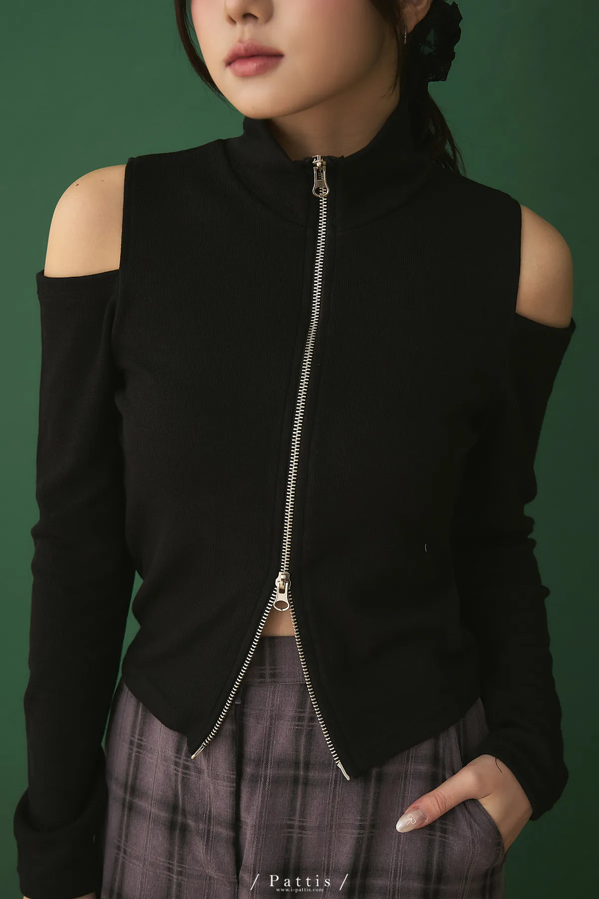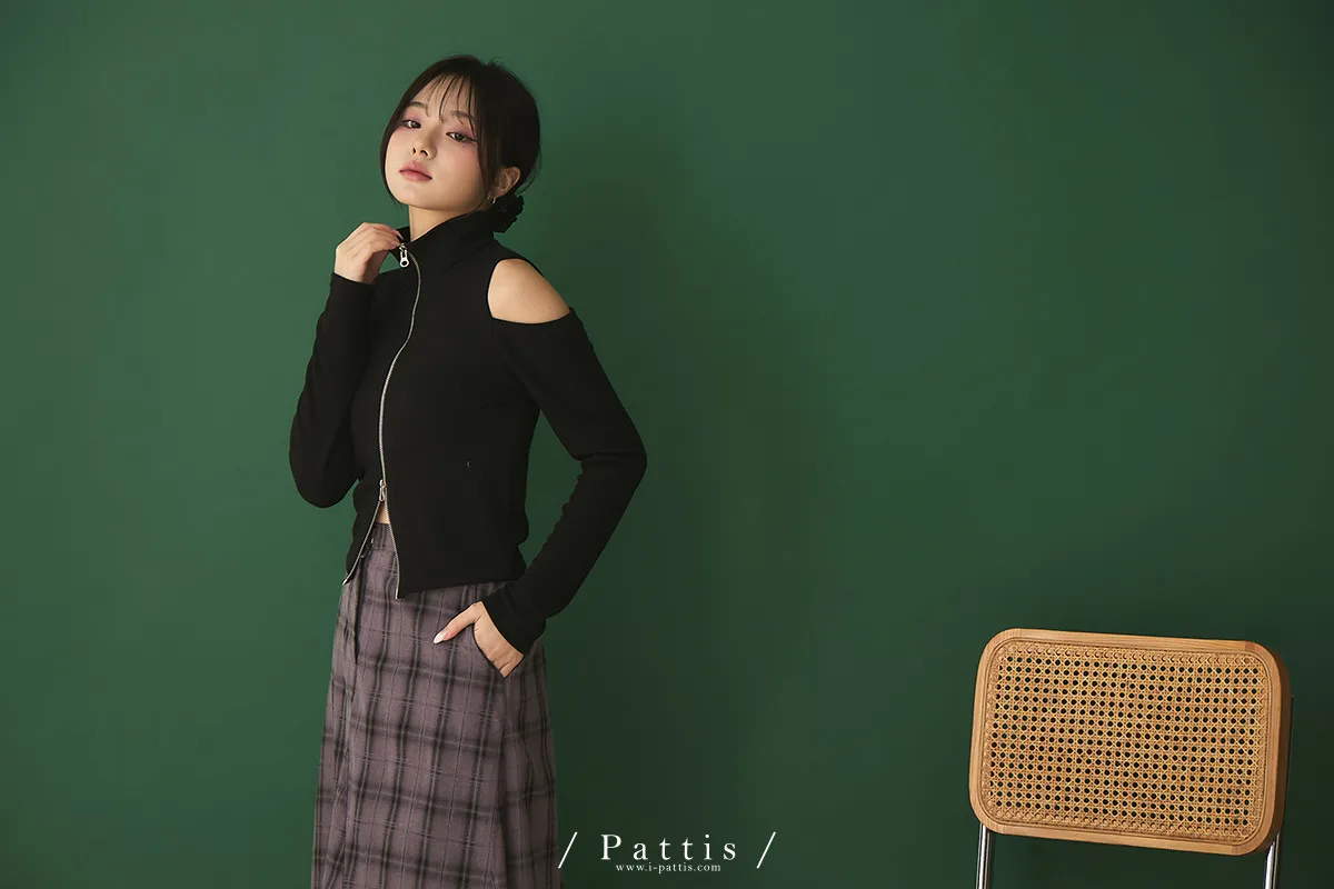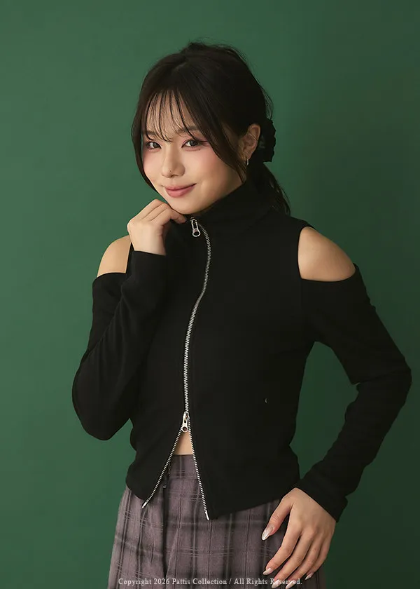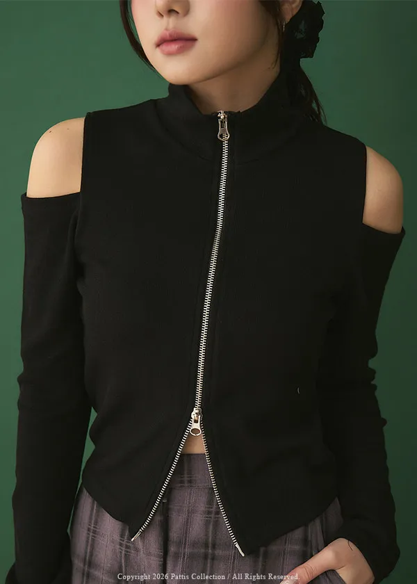 從不同換日線起飛 | 雙頭拉鍊小立領彈性挖肩上衣(黑)